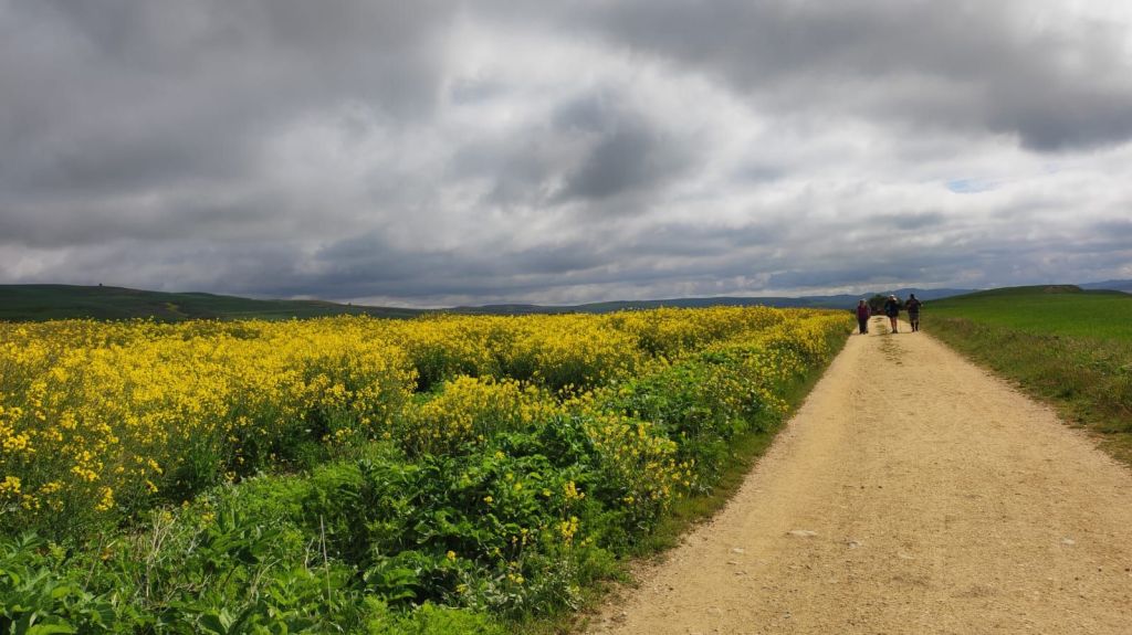 El recorrido “natural” de la decimoprimera etapa del Camino de Santiago francés es Belorado-San Juan de Ortega, pero la dificultad de encontrar alojamiento en el destino nos ha obligado a alargar esta etapa hasta la localidad de Atapuerca. Al final nos han salido 31,82 km por lo que es la etapa más larga de este tramo de camino que mañana termina en Burgos. Esta etapa tiene dos partes bien diferenciadas: en la primera, hasta Villafranca Montes de Oca seguimos el mismo patrón de la etapa de ayer, en suave subida, por pistas agrícolas y entre sembrados de cereal y colza; en la segunda afrontamos la larga travesía por los Montes de Oca, con un fuerte desnivel de subida y transitando por zonas boscosas.