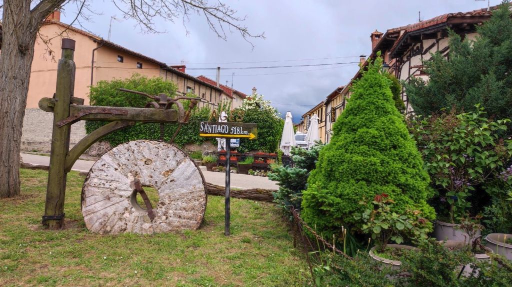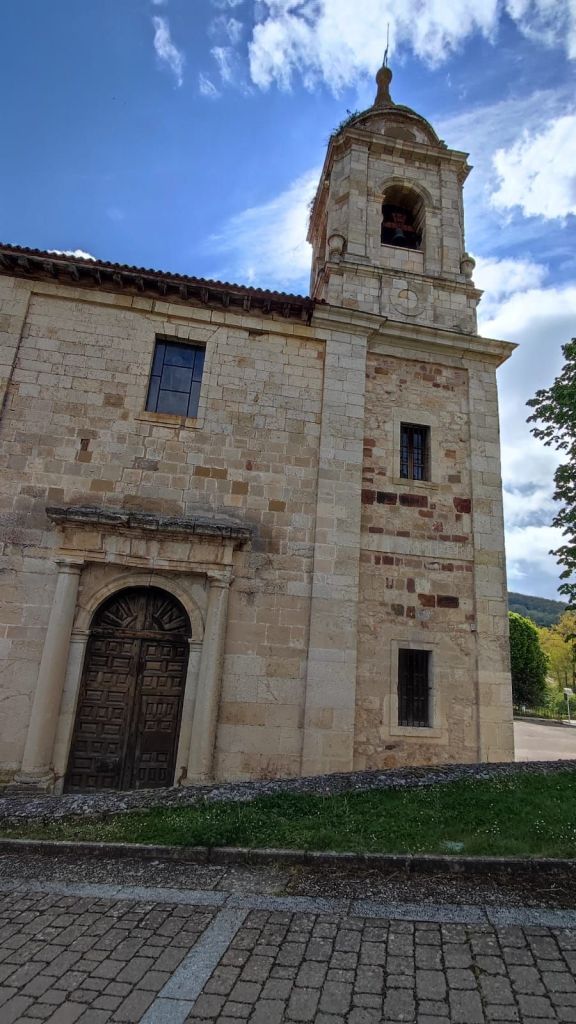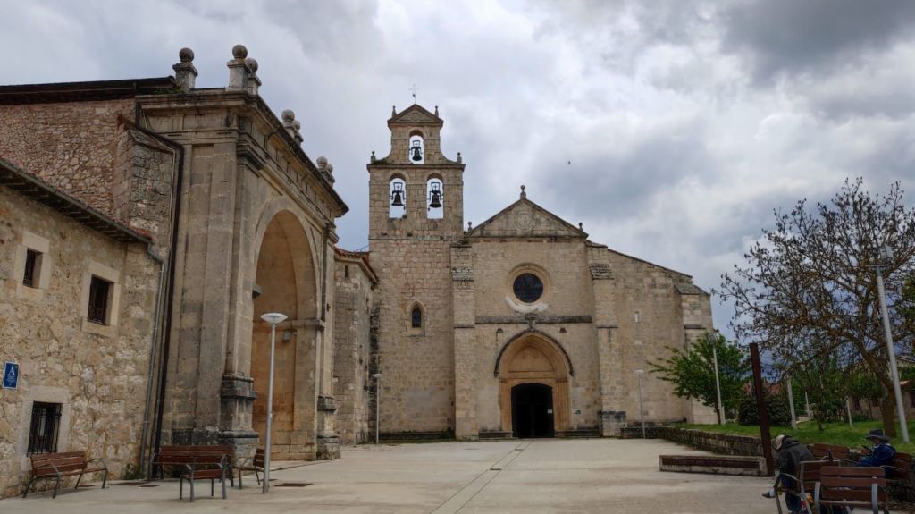 Comenzamos la etapa de hoy dirigiéndonos a la Plaza Mayor con sus soportales y cruzándola para llegar a la calle Raimundo de Miguel, el lugar en el que detuvimos la ruta ayer. En esta calle hay una serie de placas de bronce que forman parte del proyecto “Las huellas del Camino” en el que un grupo de personajes conocidos y vecinos del pueblo han dejado las huellas de sus manos y pies impresas en planchas de bronce que se han colocado a lo largo de esta calle. Continuamos por la Avenida de Santiago o Camino del Matadero para llegar a la carretera A-120 y cruzar el Río Tirón por un puente de madera paralelo al Puente del Canto asentado sobre unas pilastras medievales y que se cree pudo ser reconstruido por Santo Domingo ayudado por San Juan de Ortega. Continuamos nuestro periplo por una pista agrícola entre grandes sembrados de cereal, legumbres y colza. Enseguida llegamos a la localidad de Tosantos, en la que destaca la fachada renacentistas de la Ermita de la Virgen de la Peña, una ermita rupestre al otro lado del valle. Destaca un armónico arco de medio punto y su espadaña con hueco para dos campanas.