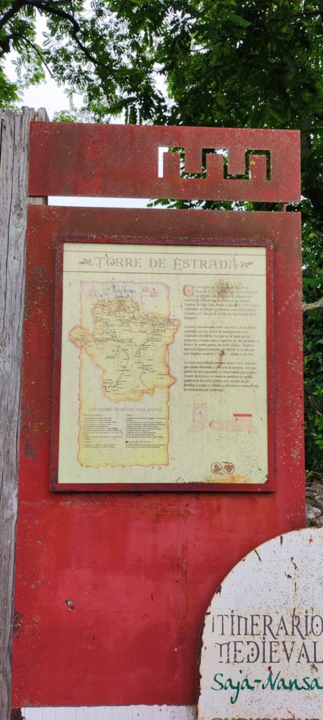 Salimos de San Vicente por el Camino de las Calzadas, una pista asfaltada que nos lleva en dirección a La Acebosa. Cruzamos la autovía A-8 por un puente elevado y al pasar junto al cementerio de la Acebosa echamos la mirada atrás para tener una bonita panorámica sobre el Cantábrico y la Ensenada de San Vicente. Seguidamente pasamos por las localidades de Hortigal y Estrada antes de llegar a Serdio. En Estrada podemos admirar la imponente torre medieval. Salimos de Serdio y a un kilómetro después de las ultimas casas los caminos del Norte y Lebaniego se separan. El Lebaniego a la izquierda va por una pista en fuerte bajada para llegar a Muñorrodero, con sus casas montañesas repletas de flores. Salimos a la carretera y junto a la Iglesia tomamos una pista que nos lleva a la Senda Fluvial del Río Nansa que, en nuestro caso, vamos a seguir hasta llegar a las inmediaciones de Cades.