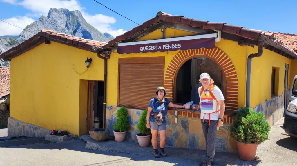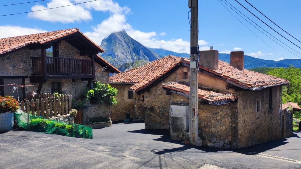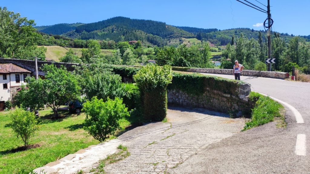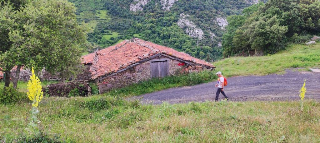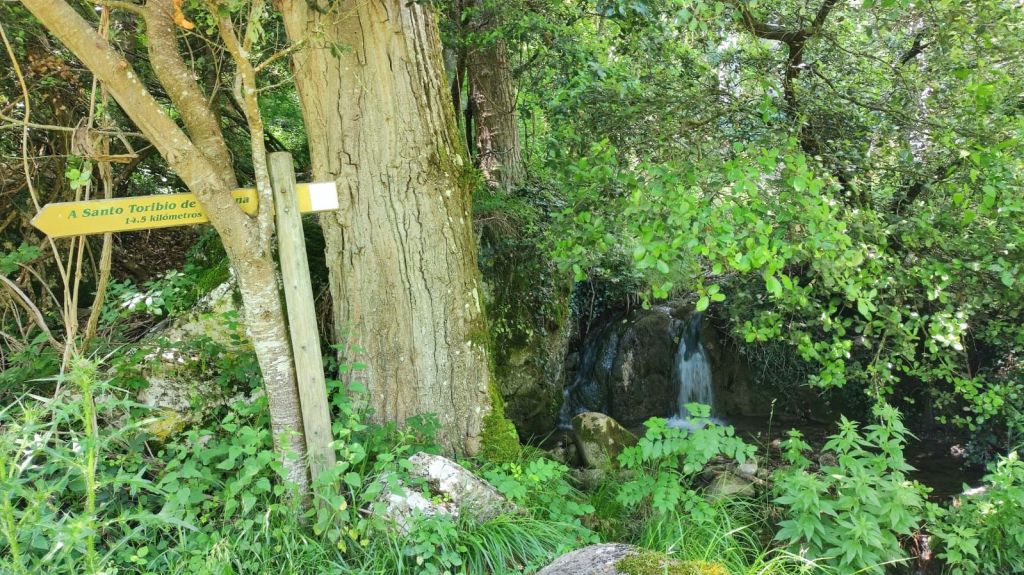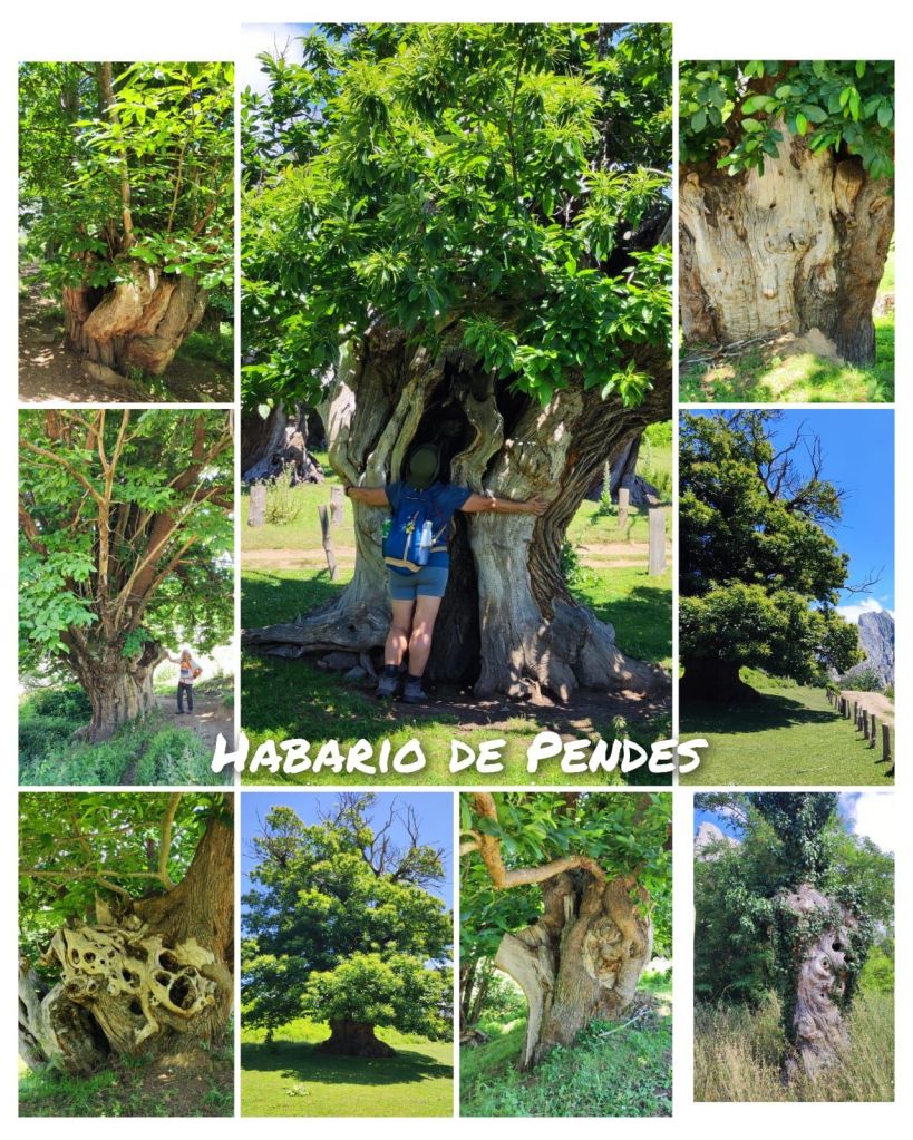 Continuamos nuestro camino siguiendo la señalización oficial, salimos a la carretera N-621 con mucha precaución ya que tiene mucho tráfico y tras unos metros giramos por la carretera que sube al barrio de Allende. Junto a la carretera sale una pista hormigonada con fuertes repechos por la que alcanzamos la aldea. Hasta Cabañes quedan otros 3 km de fuertes repechos por un camino forestal entre encinas y pinos. Finalmente, tras el collado de 590 m de altitud enlazamos con otra pista hormigonada que nos deja junto al albergue privado de Cabañes y en las calles de este pueblo sin servicios. Iniciamos el descenso por la carretera y antes de entrar en la siguiente aldea (Pendes) pasamos por el castañar milenario de el Habario de Pendes con una bonita área recreativa. A estas alturas del día ya hace mucho calor y no nos detenemos mucho. Unos 500 metros más adelante entramos en Pendes junto a su famosa quesería. Hacemos una pequeña compra, sellamos la credencial y continuamos el descenso, ya sin contemplaciones hacia el río Deva. El descenso termina junto a la pequeña ermita de San Francisco y continua por un camino asfaltado hasta llegar a la altura de un Puente sobre el Deva que nos lleva a la población de Tama. Como es un poco tarde y la recepción de nuestro alojamiento no abre hasta las cinco de la tarde paramos a comer y nos encontramos con un exquisito cocido lebaniego en Casa Fofy.
