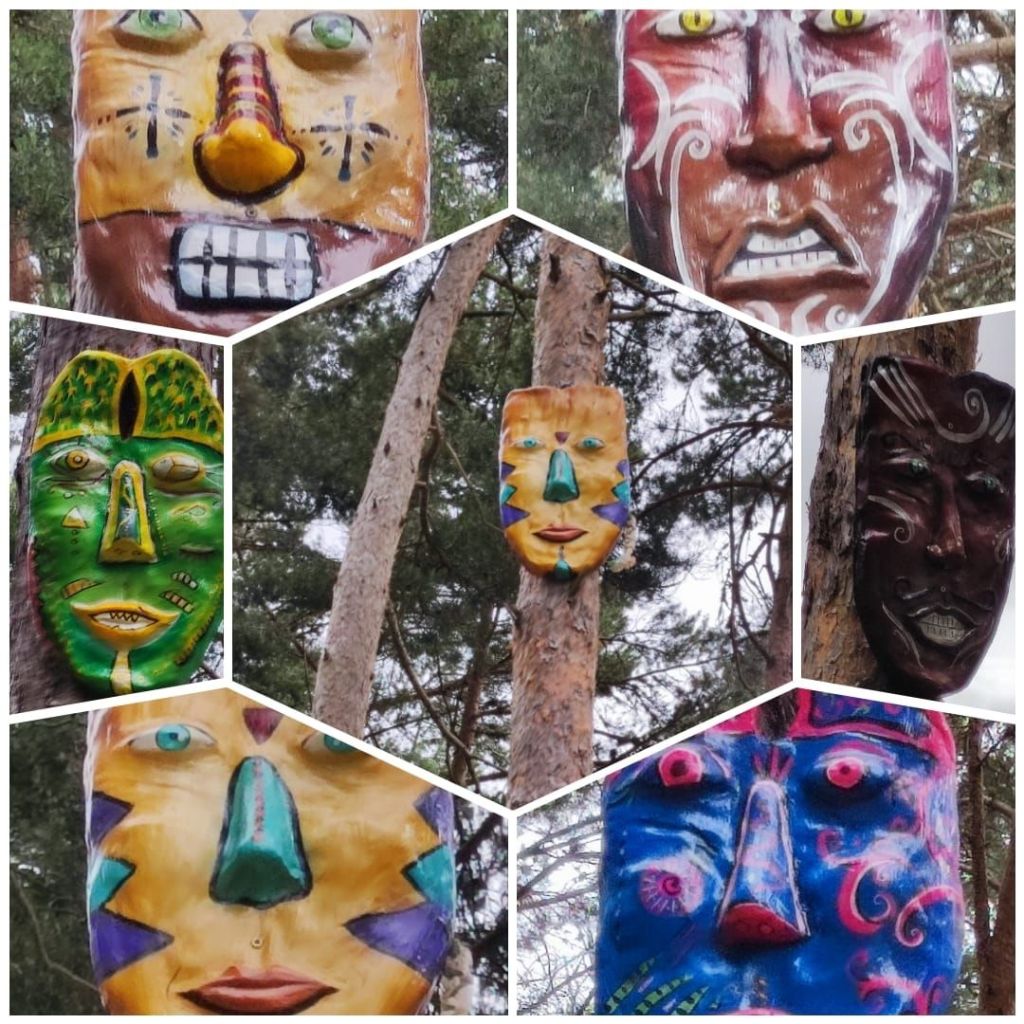 Iniciamos el recorrido desde la plaza de Cimadevilla en el centro del nuevo Riaño, junto a la Iglesia parroquial, el museo Etnográfico y el Ayuntamiento. Descendemos las escaleras y nos acercamos hasta la Iglesia de Nuestra Señora del Rosario (salvada de las aguas del pantano y reconstruida en su ubicación actual) y desde ese punto nos dirigimos hacia el largo puente sobre el embalse. En este punto la señalización es algo confusa pero como nuestro objetivo es llegar al puente la intuición nos sirve de guía. Como vamos a tomar la variante del monte, es conveniente ir por la acera de la derecha (el puente tiene dos aceras segregadas para los peatones) Nada más terminar el puente encontramos la señalización de la variante por el monte. Pasamos un paso canadiense y caminamos por un carril de tierra con denso arbolado junto al pantano en el que se han colocado unas máscaras muy curiosas. En este punto encontramos un par de montañeros palentinos que se disponen a subir al imponente Monte Giblo pero dudan de la vía porque la mañana amenaza lluvia. Los acompañamos hasta nuestro desvío a izquierda para subir al Collado del Baile bajo un denso robledal surcado por relatos con poca agua que hay que ir sorteando. Alcanzado el Collado (1.324 m) iniciamos un descenso sin contemplaciones hasta la localidad de Horcadas. Entramos a la localidad por un camino junto a la Iglesia y el cementerio. Cruzamos el pueblo en dirección a la salida a la carretera N-621.