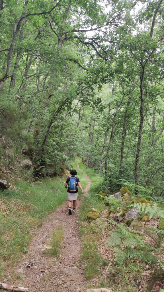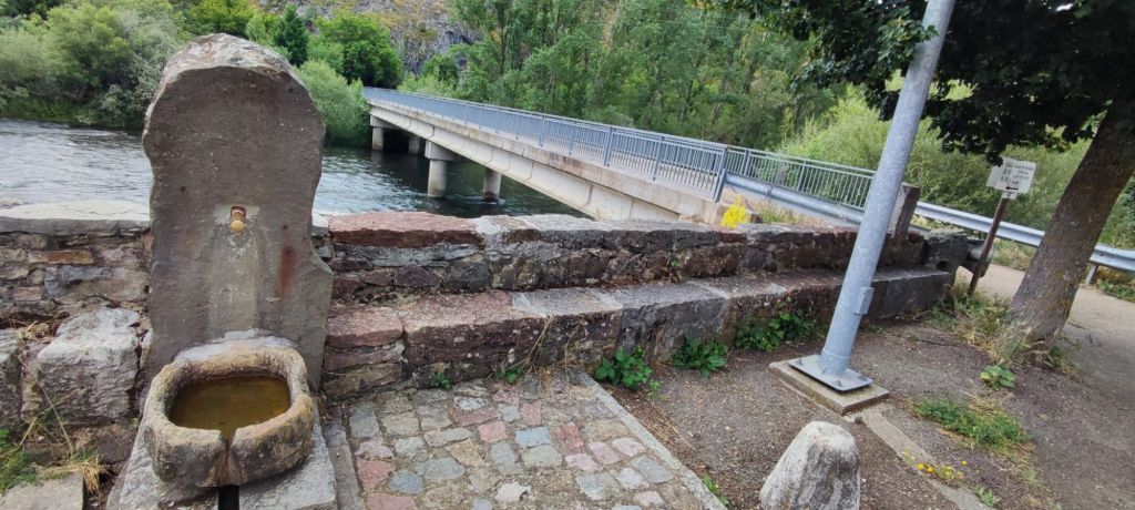 En Crémenes volvemos a cruzar el puente sobre el Esla para continuar por la Calzada Romana del Esla que en los primero dos kilómetros transita junto al río bajo un frondoso bosque galería hasta llega a la carretera de acceso a Villayandre. Cruzamos el pueblo y unos 300 metros más adelante tomamos de nuevo un camino que nos conduce a otro tramo de la calzada en ascenso por una zona que llaman el Pajar del Diablo, hasta llegar al punto más alto de esta etapa en un corte sobre la roca La Entrecisa que permite el paso de la calzada. En este punto se encuentra el tramo de calzada mejor conservados con su empedrado original y una disposición de los grandes bloques de piedra que podría ser original. Llaneamos unos cientos de metros mientras tenemos unas excelentes vistas sobre el valle del Esla que perdemos de vista al cruzar un bucólico robledal ya en franco descenso. Desembocamos en la N-621 delante de un bar restaurante. Entre el bar y el río están dando la salida a una prueba de descenso en piraguas. Los observamos mientras tomamos un café y continuamos nuestra marcha por el arcén de la carretera nacional. Al cabo de un kilómetro tomamos una senda a la izquierda que, pronto, se convierte en una pista de tierra por un amplio valle. Hacia el kilómetro 7,5 de nuestro recorrido llegamos a pequeña localidad de Verdiago. Junto a la Iglesia y una fuente cruzamos un puente sobre el Esla y tomamos una senda bastante quebrada junto al río, entre helechos y robles. Pasamos junto a la boca de la mina de hierro abandonada La Imponderable junto a la que mana una fuente de aguas ferruginosas. Aquí encontramos a un vecino de Verdiago que nos habla de una ruta de las minas y nos cuenta algunos pormenores de la zona mientras nos vamos deteniendo de vez en cuando para ver pasar a los piragüistas. Poco antes de llegar a Alejico hay un puente colgante desde el que se puede ver a los piragüistas maniobrar en una zona de rápidos. Llegamos a una zona en la que hay un canal de aguas bravas y que hoy es la meta del descenso.