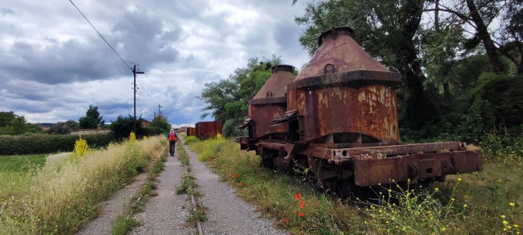 A la salida de Alejico continuamos por una carretera local paralela al río. Hay un área recreativa en un enorme prado y algunas de las mesas preparadas para hacer un picnic cuando termine la competición. Continuamos hasta pasar bajo el Viaducto de la carretera de acceso a Sabero, donde podemos ver una locomotora de vapor del antiguo ferrocarril La Robla – Bilbao también conocido como El Hullero. Poco después nos encontramos cruzando por los restos del antiguo Complejo Minero de Vegamediana de industrias vinculadas al carbón, hoy abandonado mientras caminamos entre los vestigios de una civilización hoy desaparecida. Cruzamos el Río Esla por el puente de hierro, antiguo puente ferroviario y caminamos por una vía verde sobre el trazado del antiguo tren minero. Por esta vía verde llegamos a la actual estación de tren de Cistierna y desde ahí hasta la Avenida de la Constitución ya en el centro de Cistierna. En este punto detenemos la etapa de hoy ya que nuestro alojamiento se encuentra en esta misma calle.