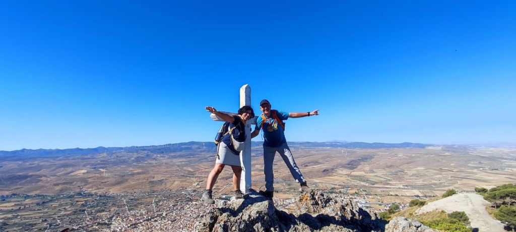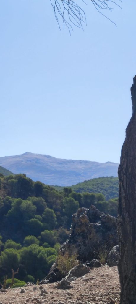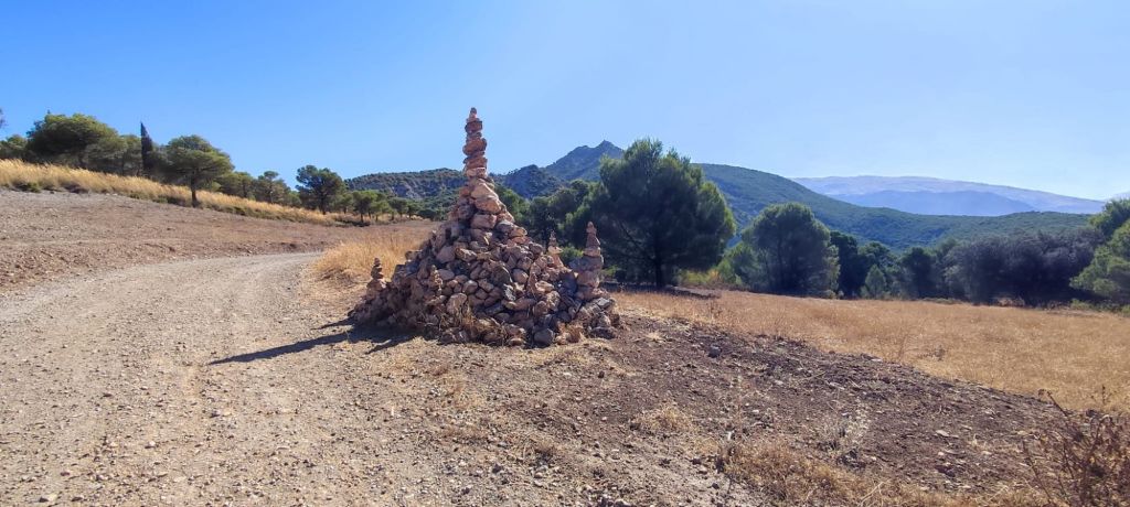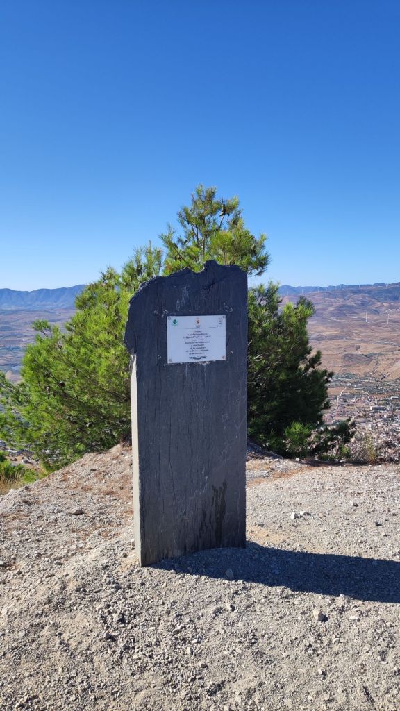 Dejamos la pista forestal por una vereda que pasa junto a la parte trasera del cortijo y en constante subida nos acerca a un desvío que señala a la Silleta del Padul el punto más elevado de la zona a 1.519 m. La vereda tiene una fuerte subida y nos deja en un collado desde el que tenemos la opción de llegar al Cerro de la Silleta trepando por unas rocas. También se puede bordear siguiendo a la derecha para llegar al cerro. Desde arriba hay unas vistas de 360º que te permiten observar las sierras cercanas y las depresiones de Granada y del Padul. Tras las fotos de rigor y un breve refrigerio emprendemos el regreso siguiendo por el Sendero de los Gudaris monte abajo.