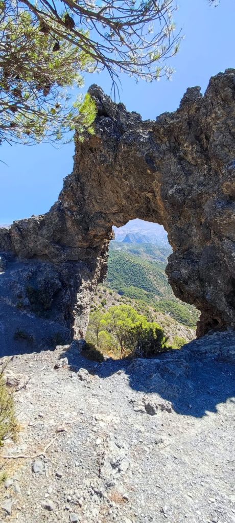 El sendero atraviesa una zona boscosa con bastante sombra. El camino está bien cuidado aunque con bastante piedra suelta. Enseguida encontraremos un desvio a la derecha que lleva hacia la Piedra Ventana donde hay que hacer una parada obligada para hacer algunas fotos y disfrutar de las vistas del Valle del Padul, su Laguna y las cumbres de Sierra Nevada. El descenso continua monte abajo hasta llegar al Barranco del Volaero. Seguimos en todo momento las balizas del Sendero PR-A 400 hasta llegar al mirador en el que tomamos la bifurcación hacia el sendero del Padre Ferrer. Desde este punto nos queda 1,5 km hasta el aparcamiento y se hace por la misma senda que unifica ambos senderos.