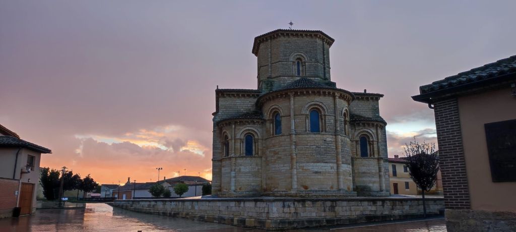 Accedemos a Frómista por una carretera con aceras que pasa bajo las vías del ferrocarril. A la entrada de esta villa, visitamos la joya cultural de la jornada, la Iglesia de San Martín de Tours del siglo XII y una de las mejores muestras de la arquitectura románica en España. La iglesia de San Martín eclipsa completamente a la de San Pedro y la de Santa María del Castillo, muy cercanas. En este punto se encuentra nuestro alojamiento, por lo que aquí mismo cerramos la décimo quinta etapa.
