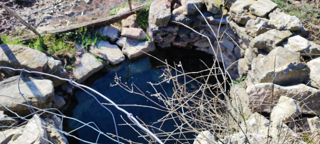 Enfrente podemos observar el lecho, seco, del Embalse de Montejaqu, un embalse que tal como se llena se vacía por el terreno kárstico y la innumerables cuevas que crea este tipo de roca. El río Campobuche forma parte del sistema hidráulico Hundidero – Cueva del Gato y a la salida de esta cueva se une al Guadiaro. Continuamos nuestro caminar hacia la izquierda para pasar primero junto a una fuente nacimiento hasta llegar al Cortijo de Los Calabazares donde veremos abundantes cabras Payoyas.
