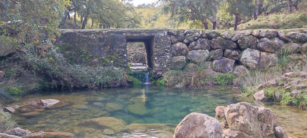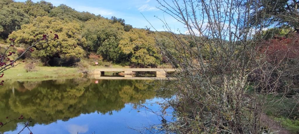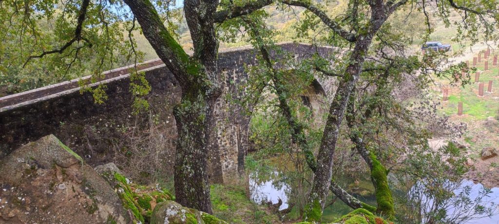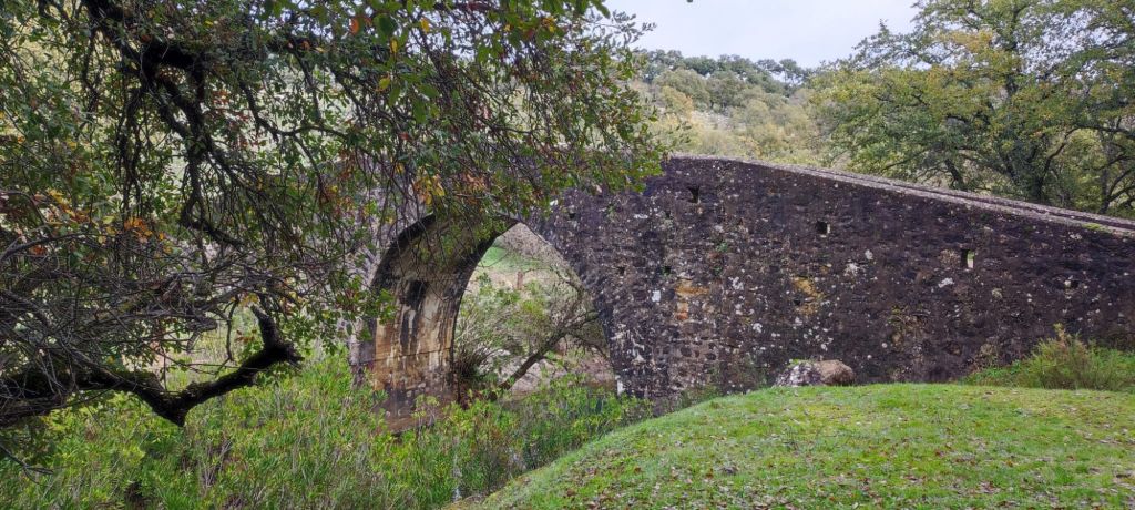 A partir de este punto el camino va paralelo al Rio Campobuche o Guadares. pasamos junto a un gran puente de un solo arco y con fuertes refuerzos de piedra a ambos lados del cauce lo que nos hace pensar en otro fallido intento de represar este rio.
