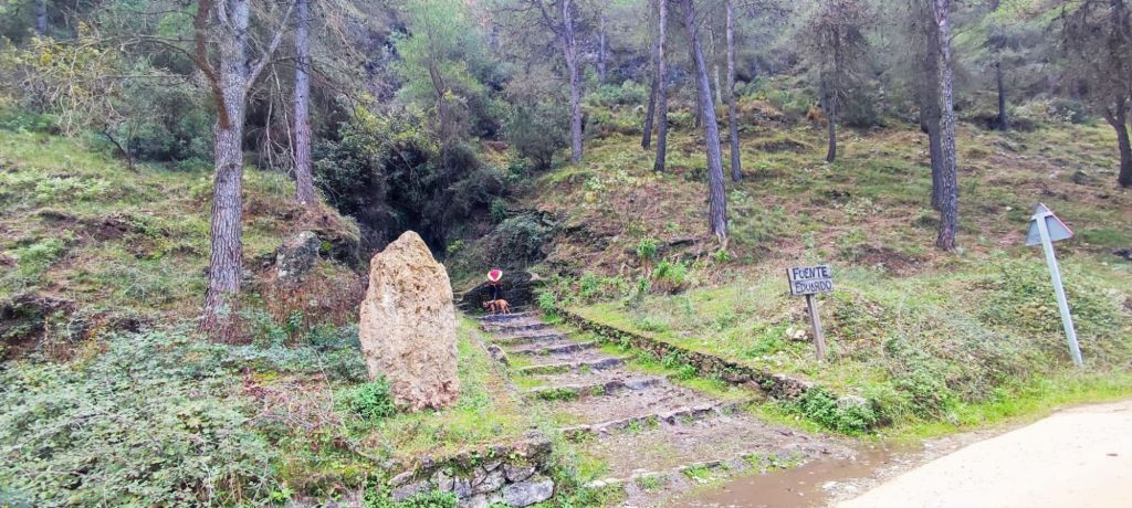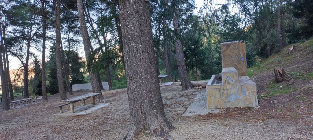 Dejamos el coche junto al Colegio Público de Alcaucín al inicio de la pista que lleva hasta el Área Recreativa del Cortijo del Alcázar. En los primeros metros el sendero cuenta con una balaustrada de madera en un tramo de fuerte pendiente. Bajo un denso bosque de coníferas nos dirigimos hacia Carrión Alto, un grupo de cinco apartamentos por cuyo camino de entrada accedemos a la pista forestal que lleva al Área Recreativa. A lo largo del camino iremos encontrando diversos paneles con descripciones relativas al recorrido y a la riqueza botánica del Parque Natural de las Sierras de Tejeda, Almijara y Alhama. Un poco más adelante pasaremos por el Mirador Miguel Álvarez con una representación escultórica de una cabra montés representativa de la fauna del parque. En este punto tendremos ya una bonita panorámica del Boquete de Zafarraya con la Sierra de Alhama al fondo y, a nuestra derecha tenemos una vista del valle y el pantano de la Viñuela. Continuamos por el carril hasta el Área Recreativa del Río, donde hay espacio habilitado para acampar y mesas y barbacoas. Junto al carril pasamos junto a la Fuente de Eduardo y un poco más allá un panel con información botánica. Seguimos subiendo por un sendero junto a la pista hasta llegar a la segunda Área Recreativa, la del Cortijo del Alcázar.