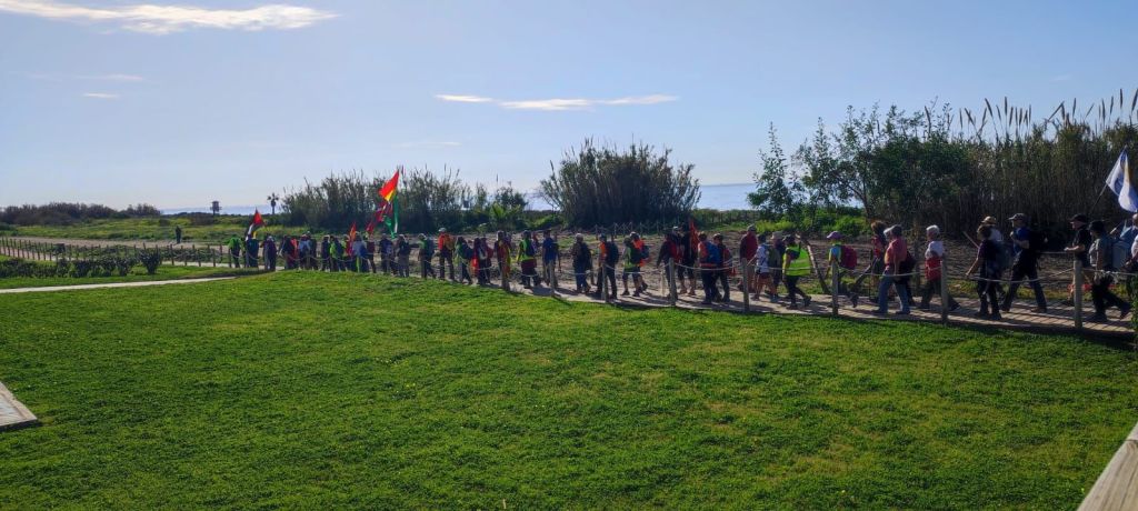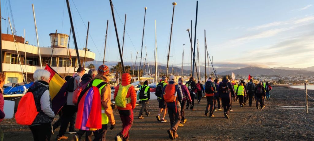 En esta segunda etapa de la novena marcha senderista de La Desbandá 2025 hemos cubierto los 24,50 km que separan Torre del Mar de Nerja. Ha sido una etapa predominantemente llana con un único repecho al final de la misma para subir desde el centro de Nerja hasta el polideportivo en el que hemos comido. Como viene siendo habitual nos hemos detenido en varios puntos con un especial significado en relación con la memoria histórica o en los que tuvieron lugar hechos destacados en relación con aquella tragedia. Ha salido un día despejado y fresco en el que se ha podido caminar muy bien durante casi toda la mañana. Hacia el mediodía el calor y el cansancio se han hecho notar.