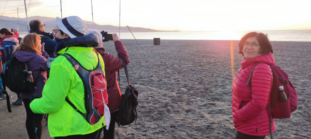Comenzamos la caminata en Torre del Mar hacia las 8:15 de la mañana en dirección al Paseo Marítimo y la Senda Litoral que en este punto coincide con la Gran Senda de Málaga (GR-292) En un primer momento la senda discurre directamente sobre la arena de la playa. Recorremos así la playa de Torre del Mar, remontamos unos metros junto al cauce del Río Seco de Vélez para ver el memorial dedicado a Norman Bethune y sus compañeros canadienses, pasamos junto al puerto de la Caleta de Vélez, Algarrobo Costa, Mezquitilla y llegamos a la Punta de las Ballenas para hacer un reagrupamiento y parada técnica.
