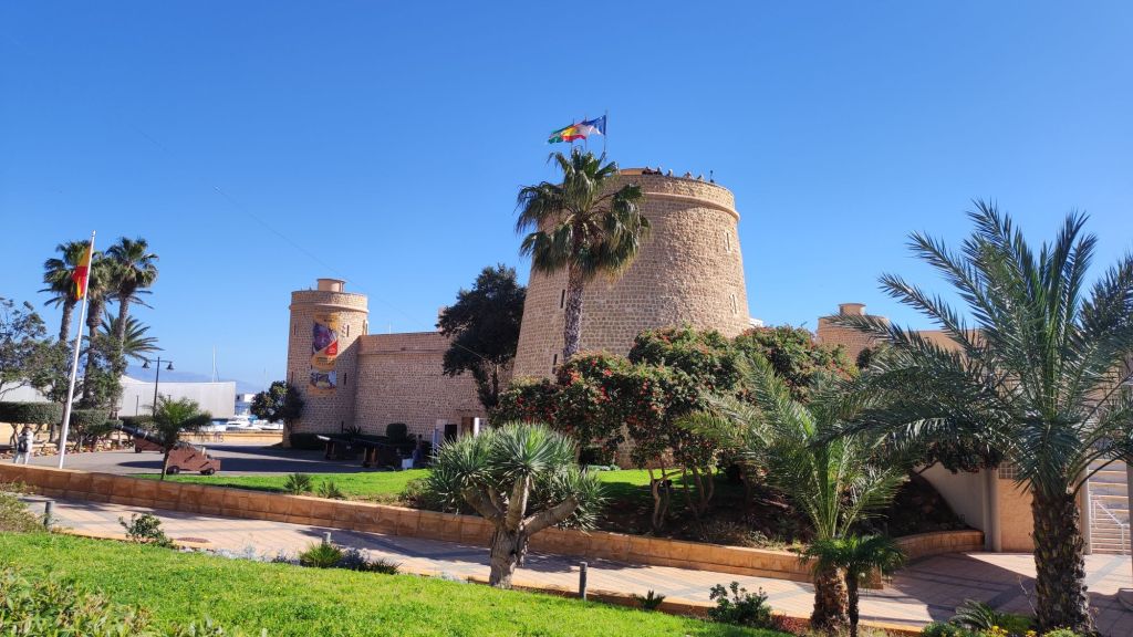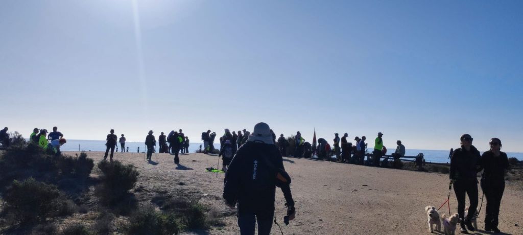 Hemos comenzado la caminata en el Paraje y Reserva Natural Punta Entinas-Sabinar en un entorno que podría calificarse de idílico si no fuera por la cantidad de basura y restos de plásticos procedentes de los cercanos invernaderos junto a los que pasamos a la entrada del paraje. A medida que avanzamos por el Sendero de las Salinas del Cerrillo la situación mejora bastante y ya podemos disfrutar del sistema dunas, de las lagunas en las que podemos observar gaviotas, flamencos, garzas reales o patos cuchara. Caminamos hasta La Marina donde podemos observar los restos del Torreón de Cerrillos y continuamos por una playa de finísima arena hasta entrar en el Paseo Marítimo de Roquetas del Mar. Caminamos por este paseo hasta llegar al Faro de Roquetas y al Castillo de Santa Ana donde tiene lugar el avituallamiento. El castillo de Santa Ana es una fortificación de finales del XVI y principios del XVII magnifícamente conservado en que se realizan diversas actividades culturales y museísticas.