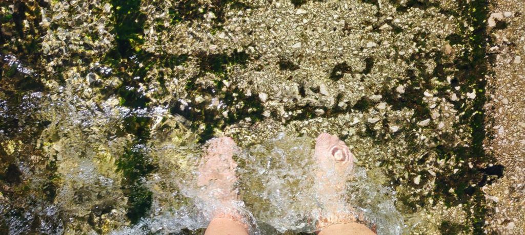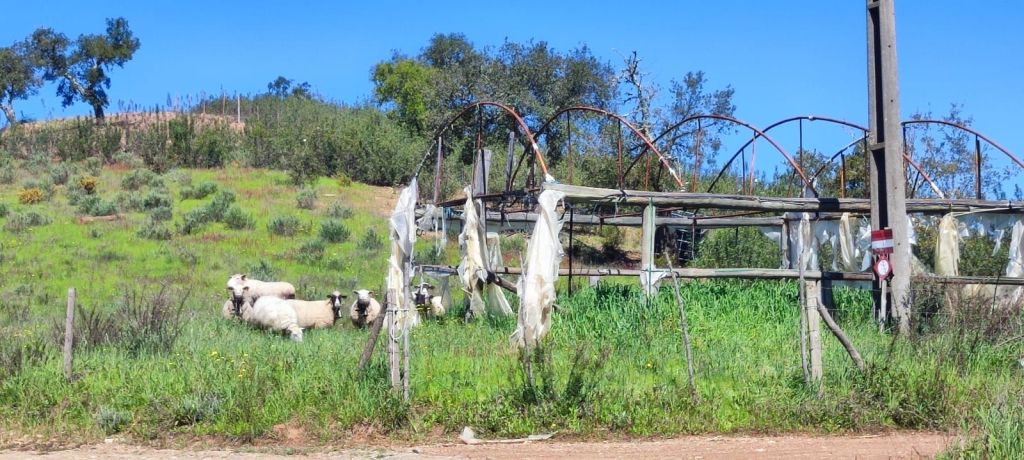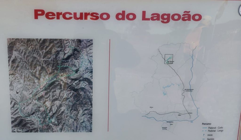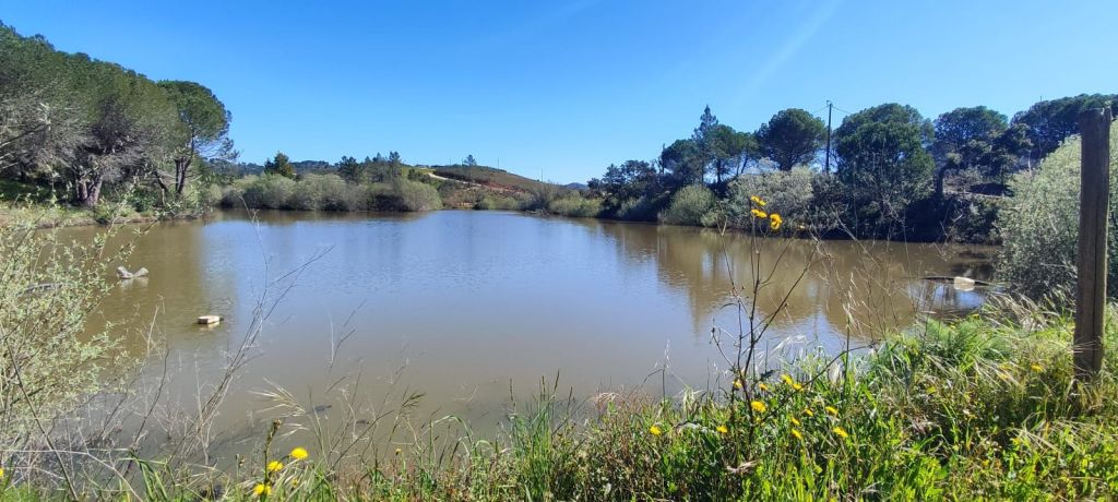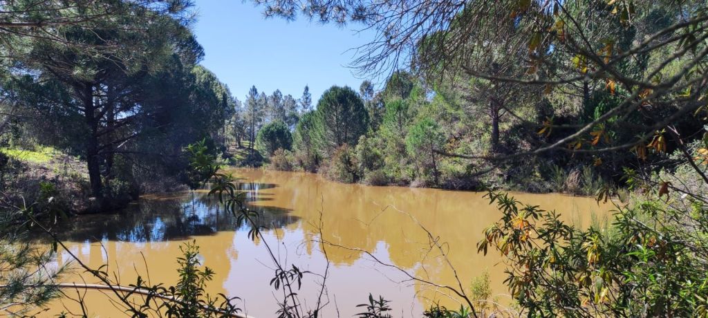 Comenzamos a caminar desde la inmediaciones del campo de fútbol municipal y el edificio de los bomberos donde hay bastante sitio de aparcamiento y fácil acceso a la carretera IC1. Caminamos por una calle asfaltada hasta llegar a la altura de una casa en obras para entrar en un camino de tierra muy cerca de la Ribera del Odelouca. En este camino encontramos un par de fuentes y gente llenando agua de ellas. Hacia el km 3 de nuestra caminata encontramos el vado del río que viene con un nivel considerable de agua. Vemos pasar un coche desde la otra ribera y parece factible pasar el vado. Nos quitamos las botas y cruzamos sin problemas. Una vez que hemos pasado a la otra orilla nos calzamos y continuamos el camino. Comenzamos una suave subida hasta llegar a una primera presa flanqueada por pinares y olivos. Algunas aves acuáticas y tortugas que toman el sol plácidamente huyen al escucharnos. Un poco más adelante encontramos otra pequeña represa de las mismas características. Seguidamente entramos en una zona de pequeñas explotaciones ganaderas de caprino y ovino.