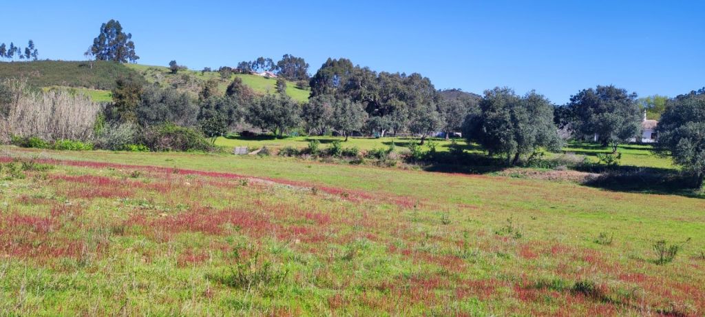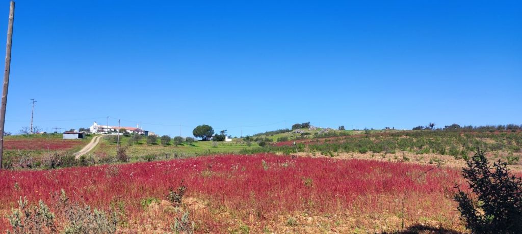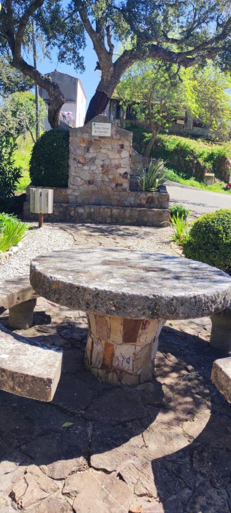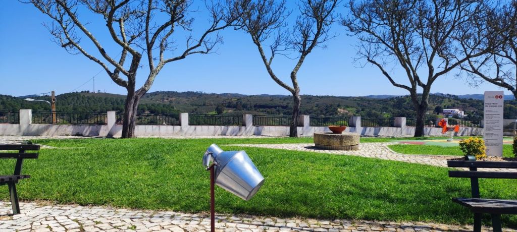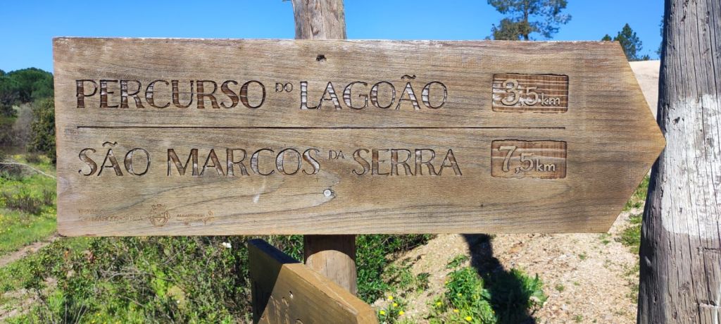 El valle se va ensanchando y aparecen parcelas agrícolas salpicadas de casitas de aperos. Hacia el km 7 de nuestro recorrido llegamos a una intersección con la carretera CM 1190 y la línea férrea. Caminamos por el arcén de la carretera con muy poco tráfico. Finalmente, llegamos al área recreativa de Fonte Nova do Serrado, casi a la entrada de Sao Marcos da Serra. Casi enseguida entramos en la Rua do Comercio y llegamos a la Rua do Castelo con la iglesia parroquial, el ayuntamiento y un parque infantil. Continuamos por la Travesa da Rua das Hortas hasta enlazar con una carretera local que cruza el Río Odelouca por un puente. Ya en la otra orilla encontramos un punto de información con otras rutas que pasan o comienzan en la zona. Seguimos por la carretera local hasta llegar a las inmediaciones del Campo de Fútbol municipal y el edificio de los bomberos.