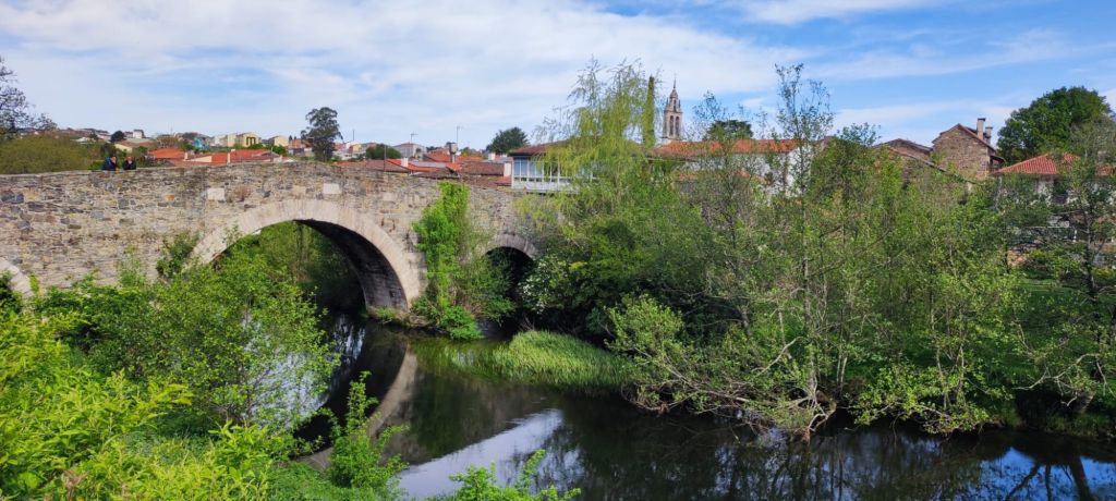 Salimos de Ribadiso en fuerte subida, salvamos la carretera nacional por un túnel y por el arcén de la carretera entramos en Arzúa. En pleno centro urbano detenemos la marcha para dirigirnos a nuestro alojamiento. En Arzúa confluyen el Camino del Norte, procedente de Irún con el Camino Francés. En la plaza central está la Iglesia De Santiago y, muy cerca, se encuentran las ruinas del Convento de la Magdalena por donde pasaremos en la siguiente etapa.