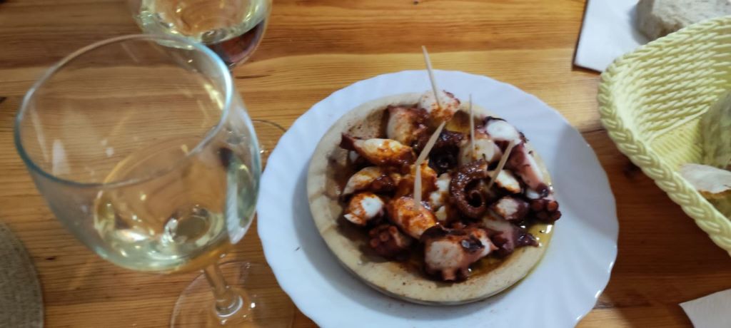 En nuestra trigésimo primera etapa de este Camino de Santiago Francés hemos cubierto la distancia que separa Palas de Rey de Arzúa (la capital del queso) en la que va a ser la etapa más larga de este Camino con una distancia de 30,52 km. con desniveles moderados, pero lo más significativo es que se trata de un continuo tobogán, en el que hemos contado más de nueve subidas y bajadas que acaban siendo un poco desmoralizantes. Por lo demás, la etapa ha estado marcada por las consecuencias de la avería eléctrica de ayer. A la salida aún no se había repuesto el suministro de energía eléctrica en Palas de Rey pero, afortunadamente, estábamos en un apartamento y con la precaria compra de ayer hemos podido desayunar “en casa” y salir con cierta normalidad. En lo paisajístico la etapa ha sido parecida a la de ayer, mucha carretera con intervalos de sendas entre robles. A la llegada a Melide nos hemos enterado de que en esa población ya había electricidad, por lo que hemos podido sacar dinero del banco y tomar un “ligero” tentempié de media mañana a base de pulpo.