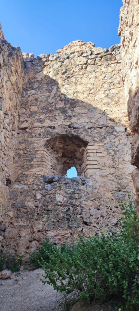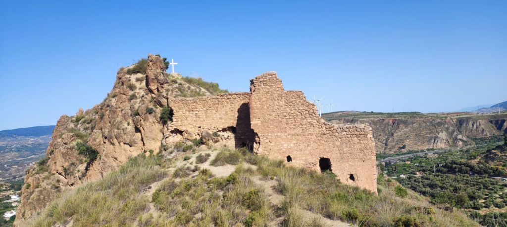 Comenzamos a caminar a la entrada de Talará y nos dirigimos hacia la cercana pedanía de Mondujar, lugar en el que se detuvo el rey Boadil tas la entrega de las llaves del reino de Granada a los Reyes Católicos. Pasamos junto a la iglesia Parroquial, de estilo renacentista y dedicada a San Juan Bautista. Cruzamos bajo la autovía por túnel y comenzamos la subida hasta restos del Castillo de Zoraya entre parcelas de olivos y siguiendo el curso de una acequia. El castillo fue propiedad de Muley Hacén, padre de Boabdil y lo había mandado construir como regalo de bodas a la esclava cristiana que llegó a ser reina de Granada con el nombre de Zoraida o Soraya (‘Lucero del alba’), que después de la reconquista tomó el nombre de (Isabel de Solís). Cerca de él, en el antiguo cementerio de Mondújar, se cree que está el cementerio real nazarí. De la fortaleza se conservan un aljibe con salida a una acequia que aseguraba el suministro de agua, una entrada en recodo y parte de las murallas. También se pueden ver restos de muros con espectaculares vistas al valle.