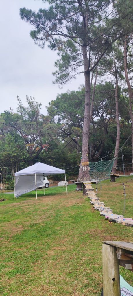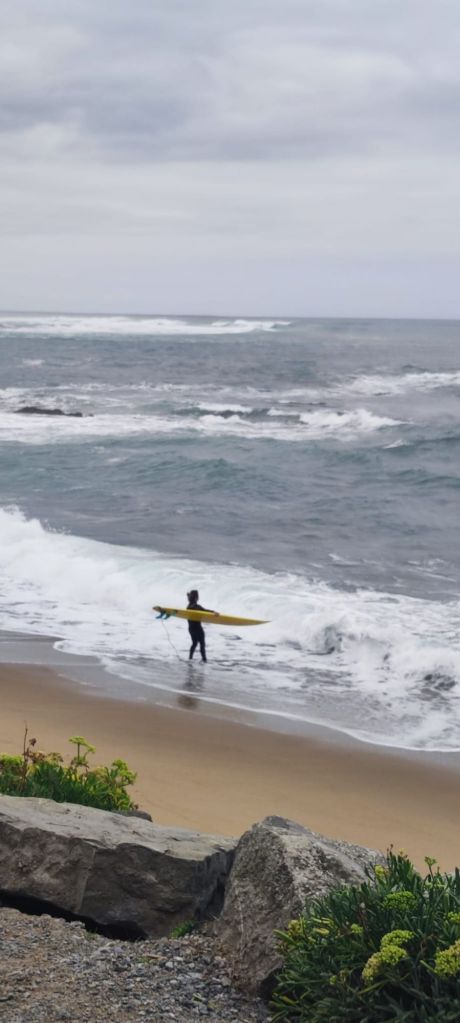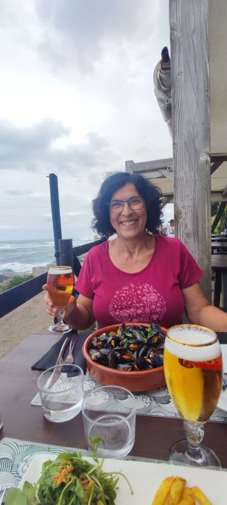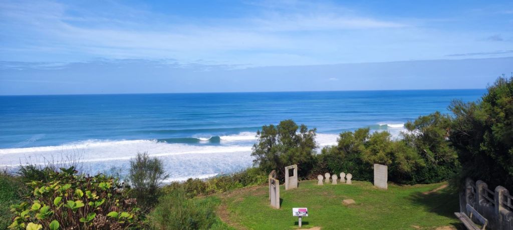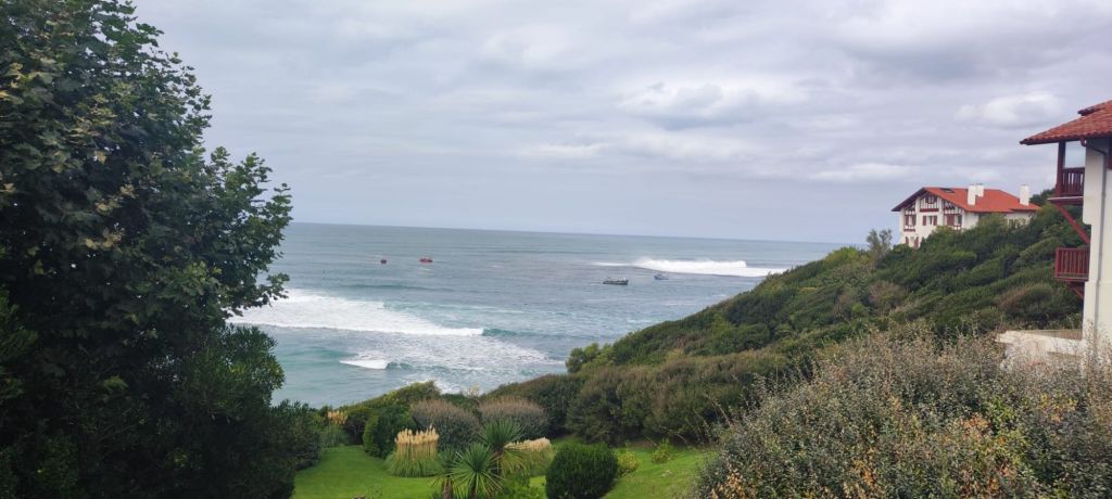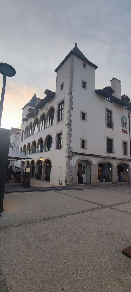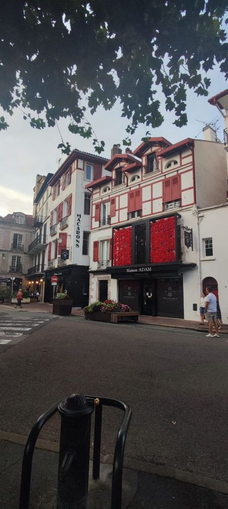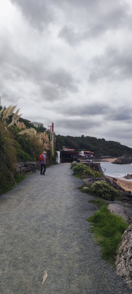 En este punto decidimos continuar por el camino oficial que transita por el interior, un poco más largo que el alternativo por la costa pero mejor señalizado. Descendemos hasta el centro urbano de Bidart, pasamos junto a la plaza del Ayuntamiento, bajamos hacia una escuela de primaria con unos curiosos y bonitos edificios de madera y caminamos bajo un bonito bosque hasta la entrada de Ahetze. Ya cerca del mediodía, nos encontramos con una bifurcación que viene del camino litoral. Ante la posibilidad de no encontrar algún lugar en el que comer por este camino tomamos la bifurcación hacia el camino litoral y entrar en el municipio de Gethary- Guetaria que puede estar más animado por ser un enclave vacacional. Este tramo nos alarga el camino en unos dos km y nos deja junto a la playa de Parlementia, donde encontramos un chiringuito en el que nos detenemos para comer algo.