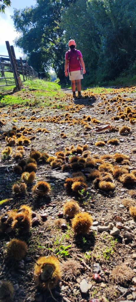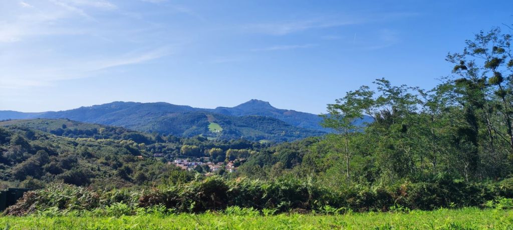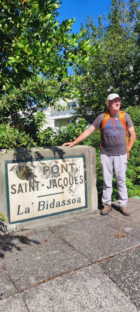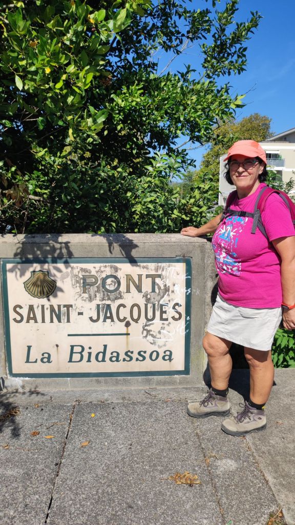 Salimos de Urrugne y tomamos un camino de tierra que, enseguida nos conduce a la Vieille Route D’Espagne, una pista de asfalto que seguiremos durante un par de km. En ella encontramos una placa que recuerda a un antiguo hospital de peregrinos. Tras un trecho en suave subida bajo un bosque de pinos y robles alcanzamos la máxima elevación de la jornada antes de volver a cruzar la carretera D 810 e internarnos por una estrecha vereda en un tramo muy bonito y coincidente con el GR 10 (sendero transpirenaico francés) hasta llegar a una bifurcación en la que este sendero se aleja hasta la playa de Hendaye. Nosotros seguimos adelante por un camino de tierra en el que encontramos a unos cazadores y a Valentín (el peregrino que nos adelantó en Urrugne) y caminamos con él unos kilómetros hasta la entrada de Hendaye. Atravesamos esta localidad por la Rue de Santiago que desemboca en el Pont de Saint Jacques sobre el río Bidasoa. Lo cruzamos por una de sus aceras laterales y entramos en España. Nada más cruzar el puente ya estamos en Irún. Caminamos por un carril bici junto al rio Bidasoa hasta que san google nos dice que estamos a la altura de nuestro alojamiento. En ese punto detenemos la marcha y la reemprenderemos mañana para ir a San Sebastián- Donostia.