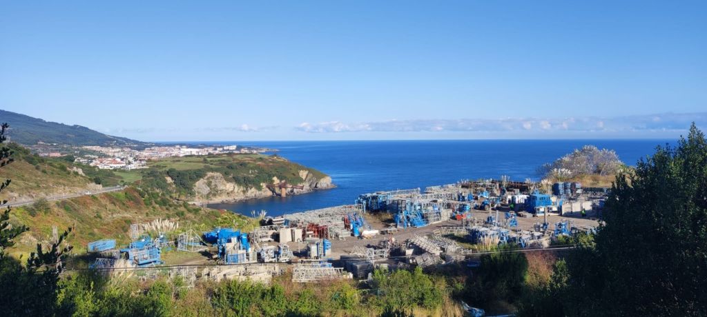Continuamos por la ruta más directa hacia Mioño que va por el arcén de la N-634. No tiene demasiado trafico pero hay un par de curvas algo peligrosas. La carretera es en constante subida hasta llegar al lugar de Saltacaballo. Continuamos, en bajada, hacia Mioño. En la bajada vemos, junto al acantilado el ultimo cargadero de mineral que queda en esta zona, vestigio de un pasado minero. Continuamos en bajada abandonando la N-634 por una calle frente a la iglesia de Mioño. Pasamos junto a un centro de jardinería y el restaurante El Túnel para seguir de frente por un camino muy sombreado. Entramos en Castro por la Playa Brazodemar y continuamos por el paseo hasta el Ayuntamiento, la Iglesia de la Anunciación y el faro fortaleza. En este punto, detenemos la marcha para continuarla mañana hasta Laredo.