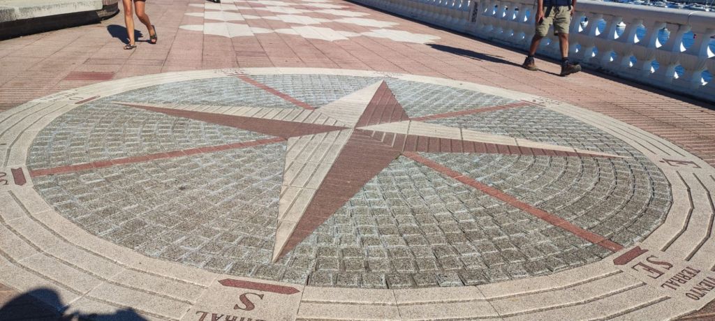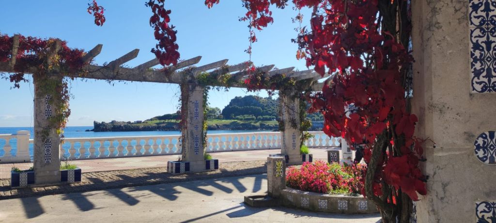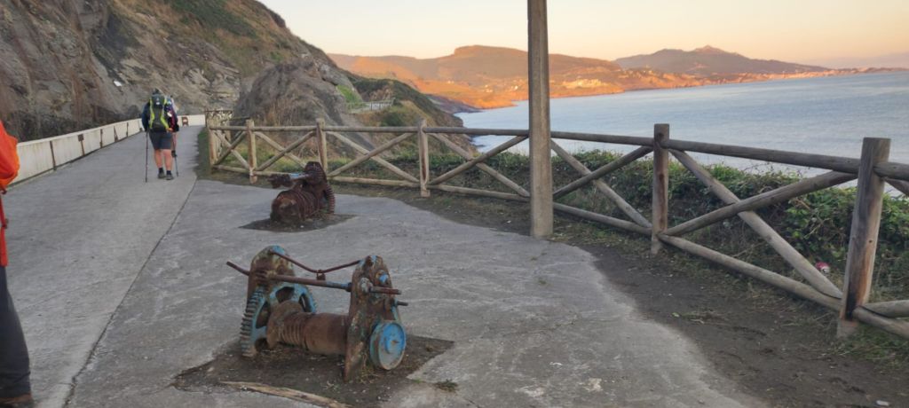 Salimos de Pobeña hacia las ocho de la mañana retrocediendo hasta el camino que hicimos ayer cuando vinimos desde la Playa de la Arena. Al final del puente de hierro sobre el río Barbadun giramos a la izquierda y afrontamos un largo tramo de escaleras que nos llevan al inicio de la Vía Verde Itsaslur (o Vía verde del Piquillo) que recupera el trazado de un antiguo tren minero. Es un tramo precioso que va sobre el mar y los acantilados con vistas panorámicas y pasamos por el túnel de la Galerna, lugar también muy interesante. A unos tres km de la salida pasamos por un paraje denominado El Hoyo y abandonamos el País Vasco y entramos en Cantabria. Seguimos algo más de un km y entramos en Ontón. A la entrada del pueblo encontramos la plaza del ayuntamiento una panadería y un bar en el que paramos para tomar un café.