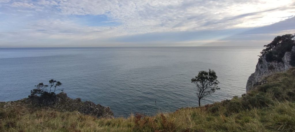 Comenzamos a caminar a las afueras del barrio marinero de Castro Urdiales, concretamente por la calle Silvestre Ochoa y pasamos junto a la playa de Ostende cuando está amaneciendo. Continuamos hasta la plaza de toros/ estación de autobuses, pasamos junto al albergue municipal y pasamos bajo la autovía por un túnel que desemboca en un camino asfaltado en dirección a Allendelagua, barrio de Castro. Cruzamos todo el barrio y tomamos una pista en suave ascenso paralela a la autovía A-8 hasta llegar a un paso inferior que nos introduce en la localidad de Cerdigo. Continuamos por la calle principal y llegamos al inicio del sendero del Encinal de Cerdigo, un precioso sendero boscoso que nos acerca a los acantilados de la costa y, tras cruzar varias portillas para ganado llegamos a Islares. Seguimos por las calles de esta localidad y, a la altura de la Playa de Arenillas nos incorporamos a la N-634 por la que caminamos hasta llegar a El Pontarrón de Guriezo donde hay un bar restaurante en el que paramos para descansar unos minutos y tomar un refresco.