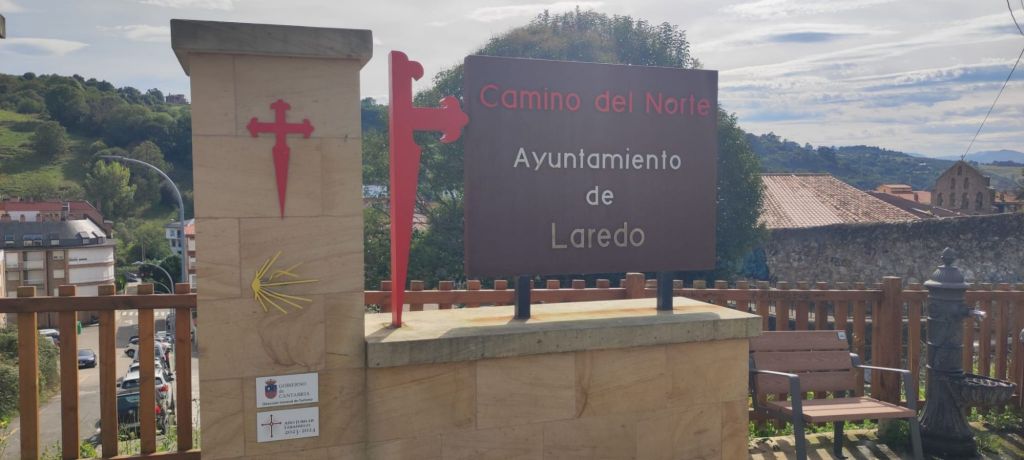 Tras la parada retomamos el arcén de la carretera, cruzamos un puente que salva el río Agüero (que desemboca muy cerca, en la Ría de Oriñón) y seguimos una ruta alternativa por un paseo fluvial que a la par de confusa, nos hace recorrer casi un km para volver a la N-634 muy cerca de donde la abandonamos. La carretera va subiendo a un alto, el camino en ocasiones va por un “senderín” tras los quitamiedos, en otras directamente por el arcén y tras unos 3 km llegamos al mirador Antonio Ruiz en el que hay un par de mesas y un monumento al motero ausente. Nos detenemos para tomar una fruta y continuar camino por el arcén de la carretera. Un km más adelante llegamos junto a la Ermita de San Roque (hoy local del centro de interpretación del arboreto de Liendo) y a la derecha tomamos un camino de tierra que nos lleva al barrio de Isequilla (de Liendo) por el que llegamos a la ermita de San Julián, después a la playa de San Julián, ascendemos a un collado con un bonito mirador (Mirador Ensenada Erillo) y comenzar un descenso vertiginoso a Laredo por el Camino del Regatillo. Entramos a Laredo por la Puerta de la Blanca o Puerta de San Martín e iniciando un paseo por la Puebla Vieja de Laredo. A la altura del Ayutamiento detenemos la ruta para dirigirnos a nuestro alojamiento.