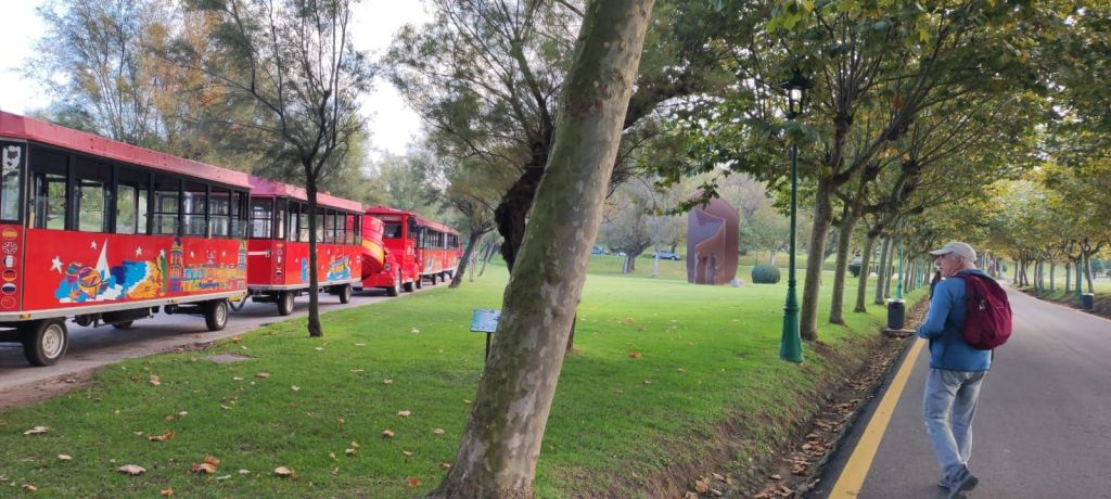 Comenzamos el recorrido junto a la Catedral de Santander para acercarnos a la plaza del Ayuntamiento, al mercado y, por calle Juan de Herrera caminamos para pasar por la Plaza de Velarde, continuamos de frente hasta la Calle Hernán Cortés, pasamos por la porticada plaza de Pombo y, al final de esta calle pasamos por la Panadería Panistas (inconformistas del pan, casi hermanos) y por la calle Castelar llegamos hasta la Escuela de Peritos náuticos de la Universidad de Cantabria y bajamos hasta el puerto Chico. Por este paseo vemos el CEAR de Vela, las naves de Gamazo (espacio expositivo) el Palacio de festivales de Cantabria, y bajamos a la Avda Severiano Ballesteros para pasar delante del Museo marino del Cantábrico y llegamos a la Playa de Los Peligros. Nuestra idea era llegar a la Playa de la Magdalena pero con la mare alta era un poco difícil, así que subimos a la Avda de la Reina Victoria y por ella llegamos a la entrada de la Península de la Magdalena.