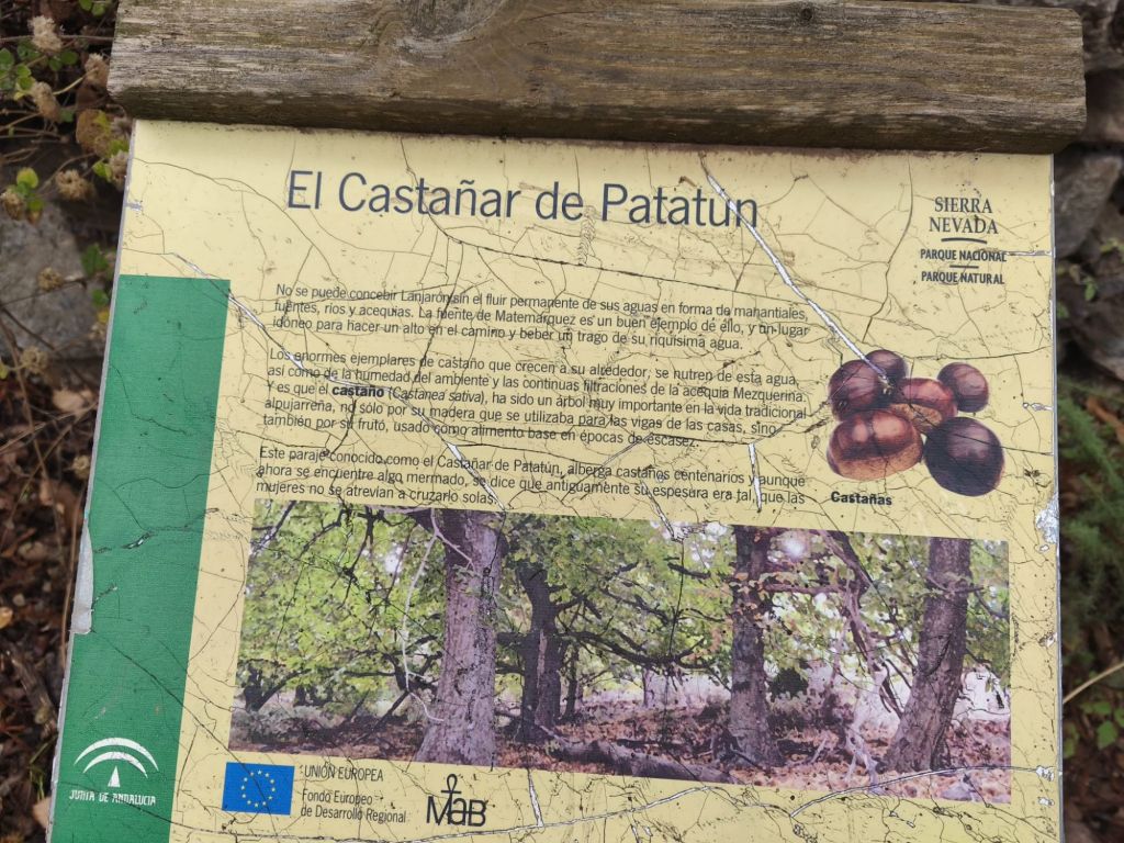 Nuevamente nos dirigimos a la localidad de Lanjarón para hacer esta ruta por el Castañar de Lanjarón que es una de las más espectaculares y accesibles que se pueden disfrutar en la Alpujarra granadina en estos primeros días de otoño. El recorrido asciende paralelo al barranco del río Lanjarón, siguiendo el antiguo camino empedrado que conduce hasta la casa forestal de Tello y que se encuentra señalizado como PR A 34 Ventura-Tello-Cima del Caballo. En el trayecto cruzamos por el Castañar de Patatún con majestuosos castaños centenarios. Tras descender hasta el río Lanjarón por un paraje frondoso y escondido, el regreso a Lanjarón se realiza junto a la acequia Montalbán, caminando por su borde y pasando por una preciosa cascada.