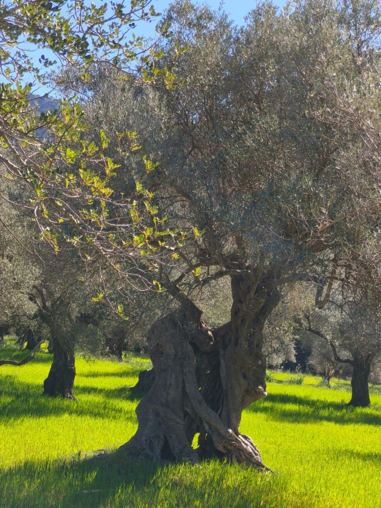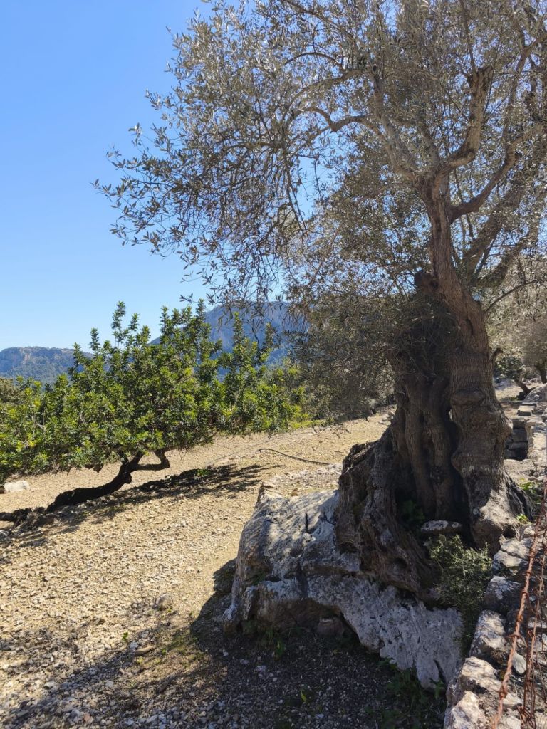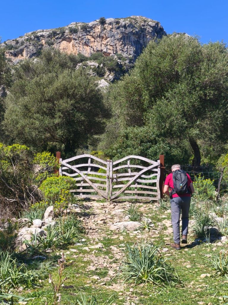 Iniciamos la caminata en Pollença en el Carrer del Roser Vell en la que se puede estacionar con facilidad. Desde este punto caminamos hasta llegar a la altura de la iglesia del Roser Vell, cruzamos su patio exterior y giramos a la izquierda por el Camí de Can Bosc. Este sendero avanza inicialmente paralelo a la carretera para luego desviarse a la derecha. Durante el trayecto, ignoramos los desvíos a la izquierda (Camí de Can Colonya y Camí del Rafalet) y continúa hasta pasar frente a Can Fanals. Giramos a la derecha y continuamos por el Camí de Can Bosc y seguimos frente para enlazar con el Camí de l’Assarell. A medida que avanzamos vamos dejando a la izquierda un hermoso campo de olivos y el camino comienza a ganar altura, primero suavemente y luego con mayor rigor al entrar en una zona boscosa. El sendero serpentea en varias lazadas que ofrecen vistas espectaculares del valle de Pollença, el Puig de María y la bahía al fondo.