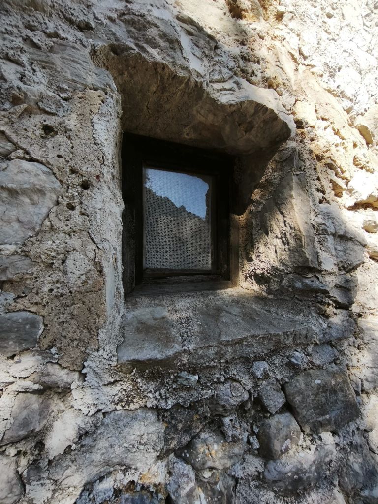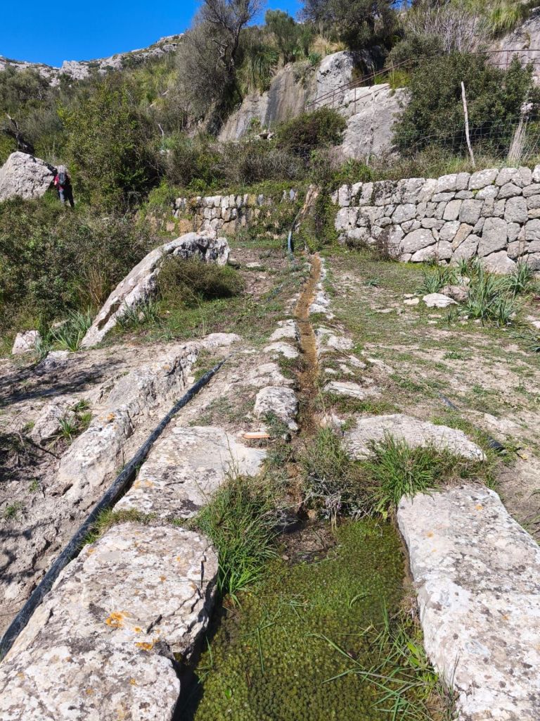 Más arriba, tras pasar las casas de Tosses de Baix y obviar el desvío a la derecha hacia Els Rafals, el camino continúa por la izquierda. Tras una última subida fuerte que luego se suaviza, alcanzamos una cancela que marca el comienzo de la finca las Casas de l’Assarell. Antes de llegar encontramos un bonito abrevadero y un riachuelo que se despeña alegre por su cauce.