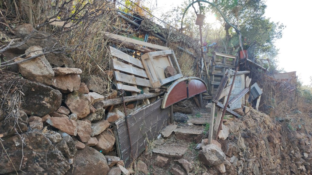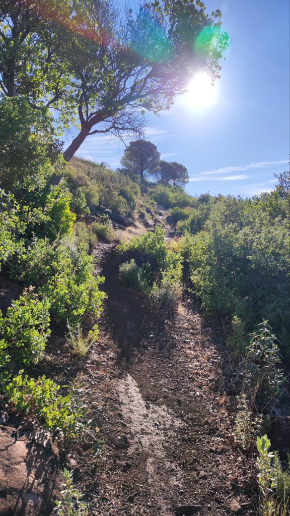 Tras la fruta retomamos el camino de vuelta, ahora ya en abierta subida y nos desviamos hacia la izquierda por un camino de servicio tras el que pasamos un tramo de cortafuegos algo más complicado junto a la valla de un coto de caza y volvemos al camino de ida. Cruzamos la cancela primera y llegamos a la Aldea, llena de familias haciendo picnic y disfrutando de una tarde de domingo.