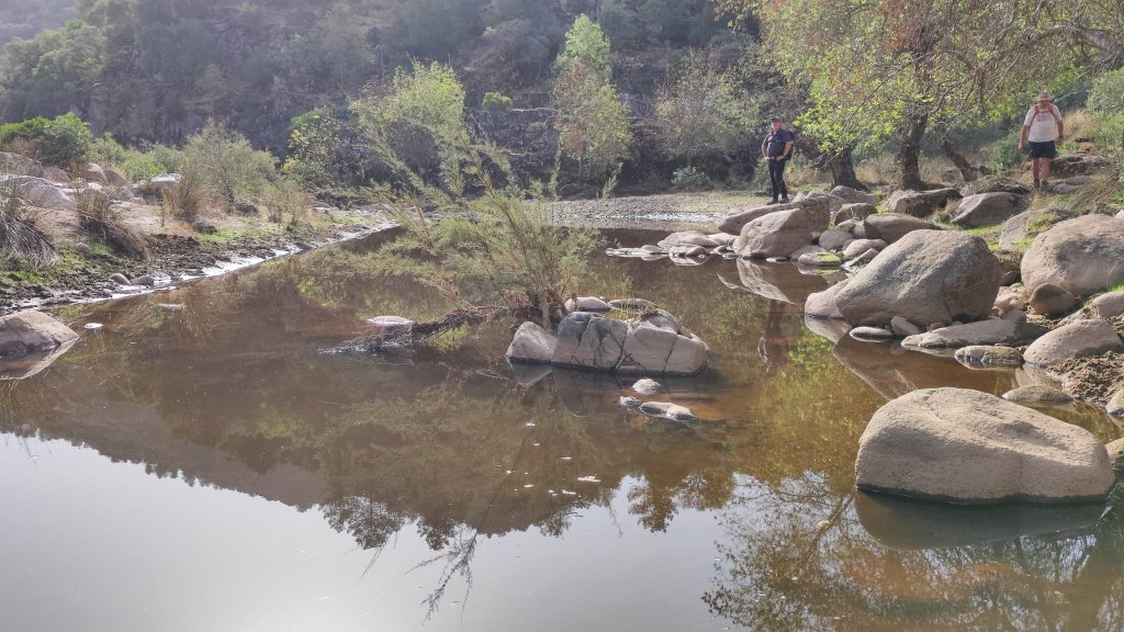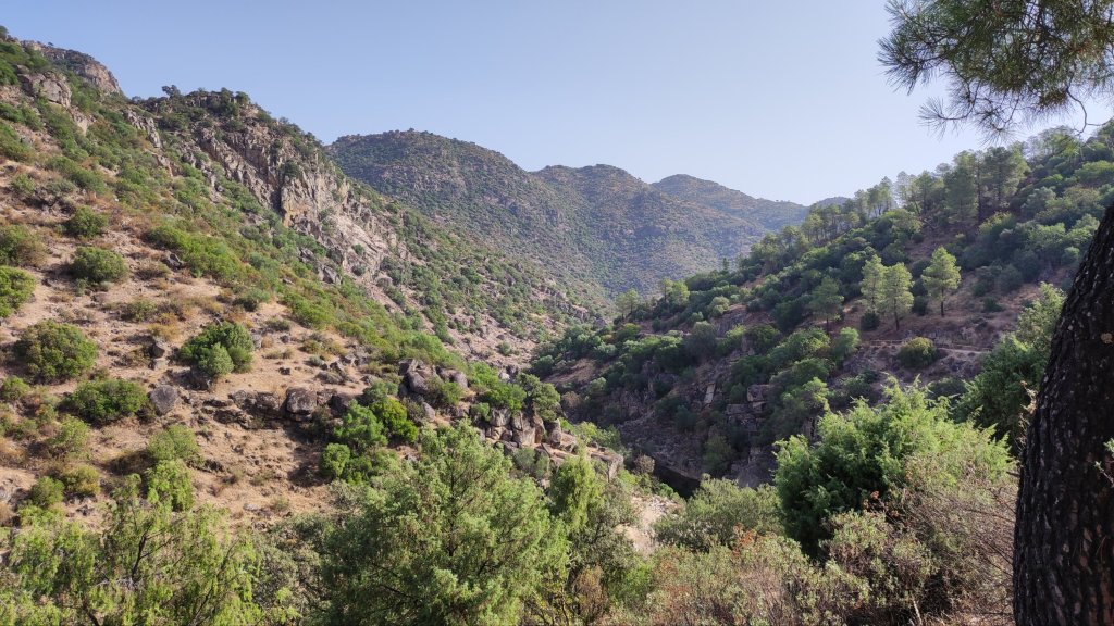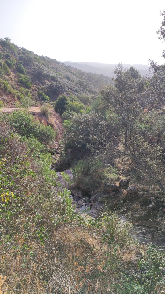 Continuamos por la carretera algo menos de un km, en una curva atrochamos bajo un bosquecillo de pinsapos y al llegar al arroyo de la Higueroba pasamos sobre un murete de contención y comenzamos una fuerte subida hasta los abrevaderos que hay junto al aparcamiento, lugar en el que dejamos el coche por la mañana. Completamos la jornada cruzando la carretera y tomando nuestros bocadillos en el mirador.