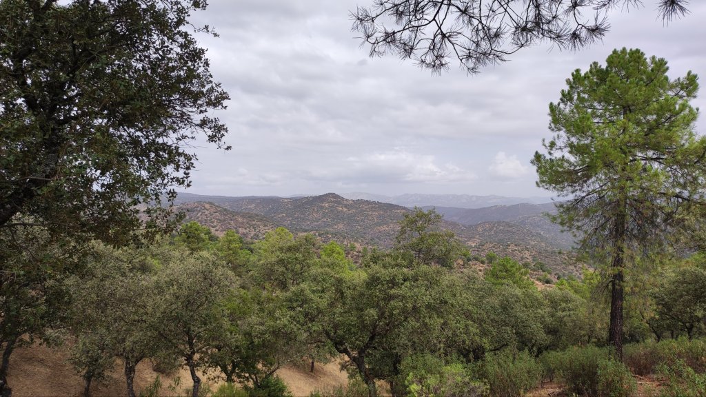 Comenzamos este mes de octubre con una sencilla ruta por el PN Sierra de Aracena y Picos de Aroche. En esta ocasión nos dirigimos a la aldea de La Umbría perteneciente al término municipal de Aracena para descubrir su entorno natural plagado de dehesas de encinas y alcornoques con algunas manchas de castaños. Vamos a hacer un recorrido circular partiendo de un mirador junto a la parada del autobús a la entrada de la aldea, para ir subiendo progresivamente al punto más alto de la Sierra de Santa Bárbara donde se ubica una misteriosa ermita inacabada junto a un punto de observación del dispositivo contra incendios y una somera instalación para la observación del cielo nocturno. Nuestro paseo baja hasta las inmediaciones del municipio de Higuera de la Sierra, donde contemplaremos la sencilla Cruz de la Vega, un diminuto parque en el que disfrutar de una tarde otoñal, y continuaremos por la Calleja de Aracena bordeando la Sierra de Santa Bárbara hasta regresar a la aldea de La Umbría.