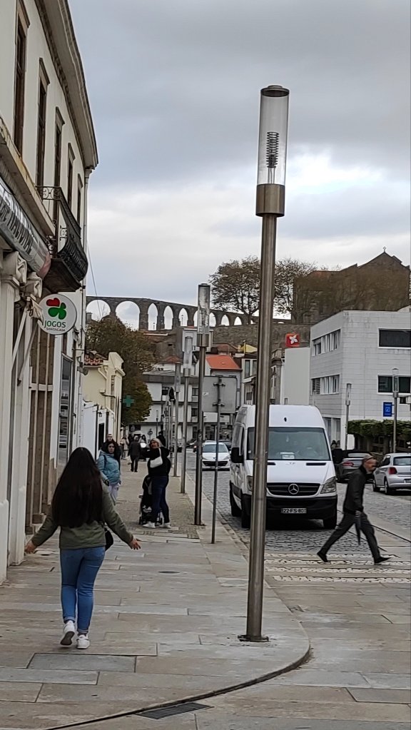 Continuamos callejeando por Vila do Conde, pasamos por la capilla de San Roque, vemos el increíble acueducto que servía el agua al Convento de Santa Clara, pasamos por la Iglesia Matriz de Vila do Conde muy representativa del arte manuelino, en una plaza que rememora la revolución de los claveles, con un pelouriño de fuste retorcido y otros elementos artísticos que recuerdan aquel 25 de abril. Pasamos por una casa en la que vivió Eça de Queiroz y callejeando por Vila do Conde llegamos a Póvoa de Varzin.
