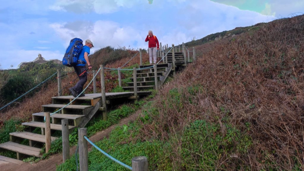 Una etapa preciosa en lo paisajístico, en la que la climatología ha sido nuevamente favorable y hemos podido disfrutar de una hermosa mañana de campo, con el océano siempre a la vista, pero algo distante.
