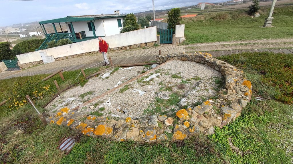 Continuamos nuestro camino pasando por un frondoso bosque de eucaliptos, un crucero y una capillita de la que no tenemos datos un lavadero a un lado del camino, un jardín de un coleccionista de escultura popular con inicio de diogenes van poniendo la nota de color al camino cuando entramos en Caroço, pequeño núcleo urbano con estación de ferrocarril. A la entrada la Capilla de San Paio, modesta pero con gran crucero, más adelante la Iglesia de Santa María de Carreço. Una inscripción la data a finales del S. XVI con torre más tardía, y combinando los estilos manuelino tardío, renacentista y barroco. No puede faltar un estilizado cruceiro en un atrio arbolado y descendente.
