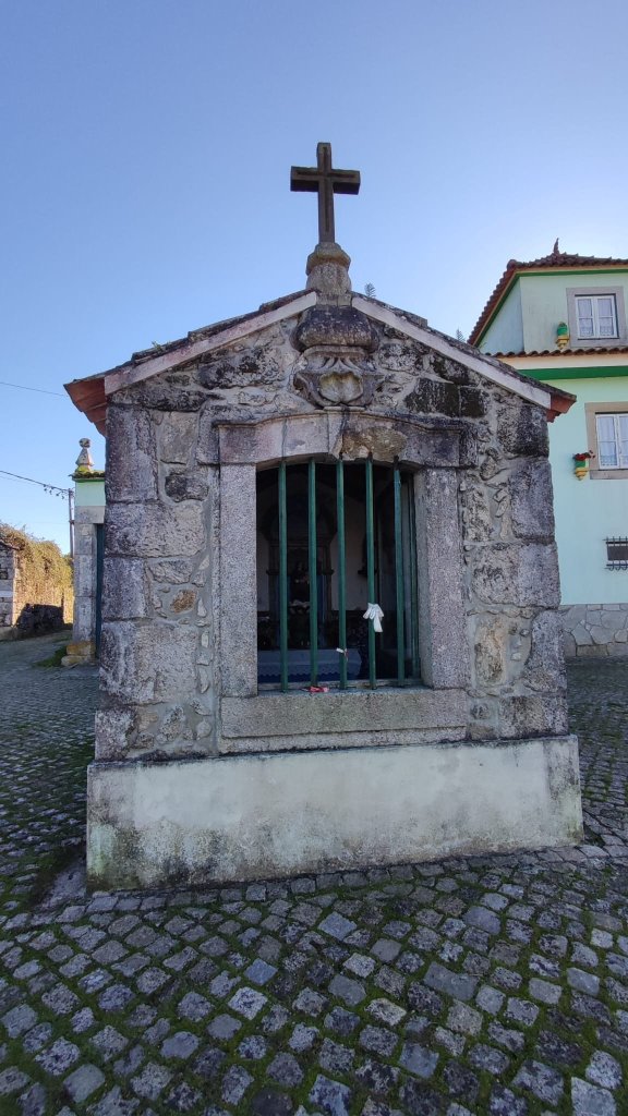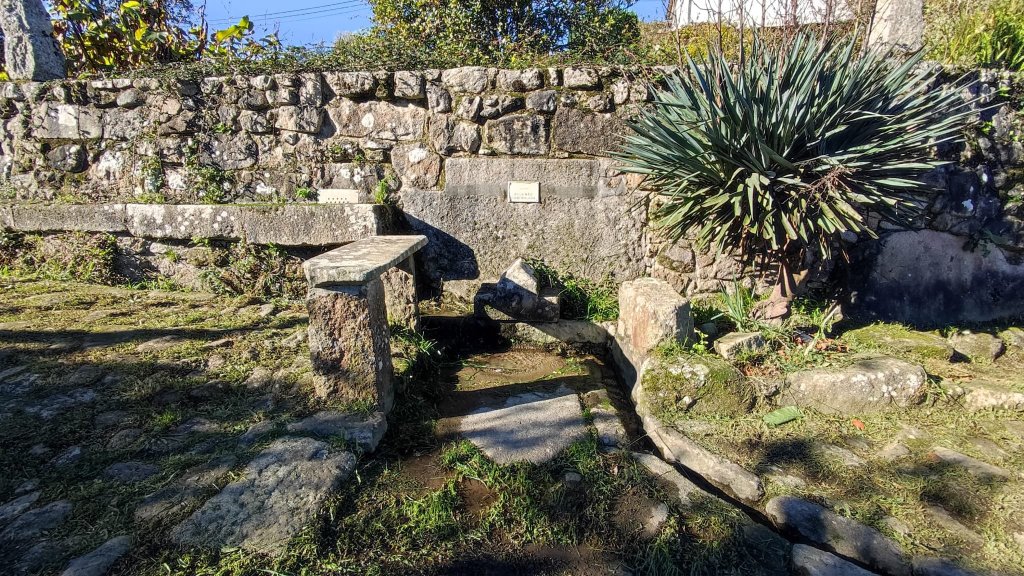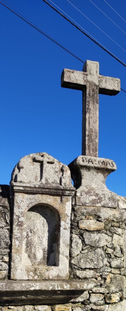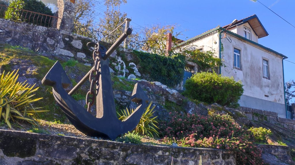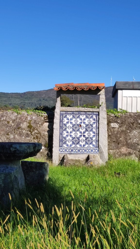 El camino hasta Chaffe transcurre entre huertos, algunos alojamientos rurales y casitas dispersas de distinta índole, algunas de ellas con hórreo y todo. En Chaffe pasamos por la Iglesia de San Sebastián, abierta para el sellado de la credencial, con un estilizado cruceiro a la puerta. Dejamos a Gisela tomando una fruta y afrontamos la segunda subida de la jornada. En esta subida pasamos por el Paço de Anha, ejemplo de arquitectura civil del S. XVI hoy alojamiento de postín, entre algún lavadero con cielo estrellado y una «alminha» que recuerda un hecho luctuoso del siglo XIX.
