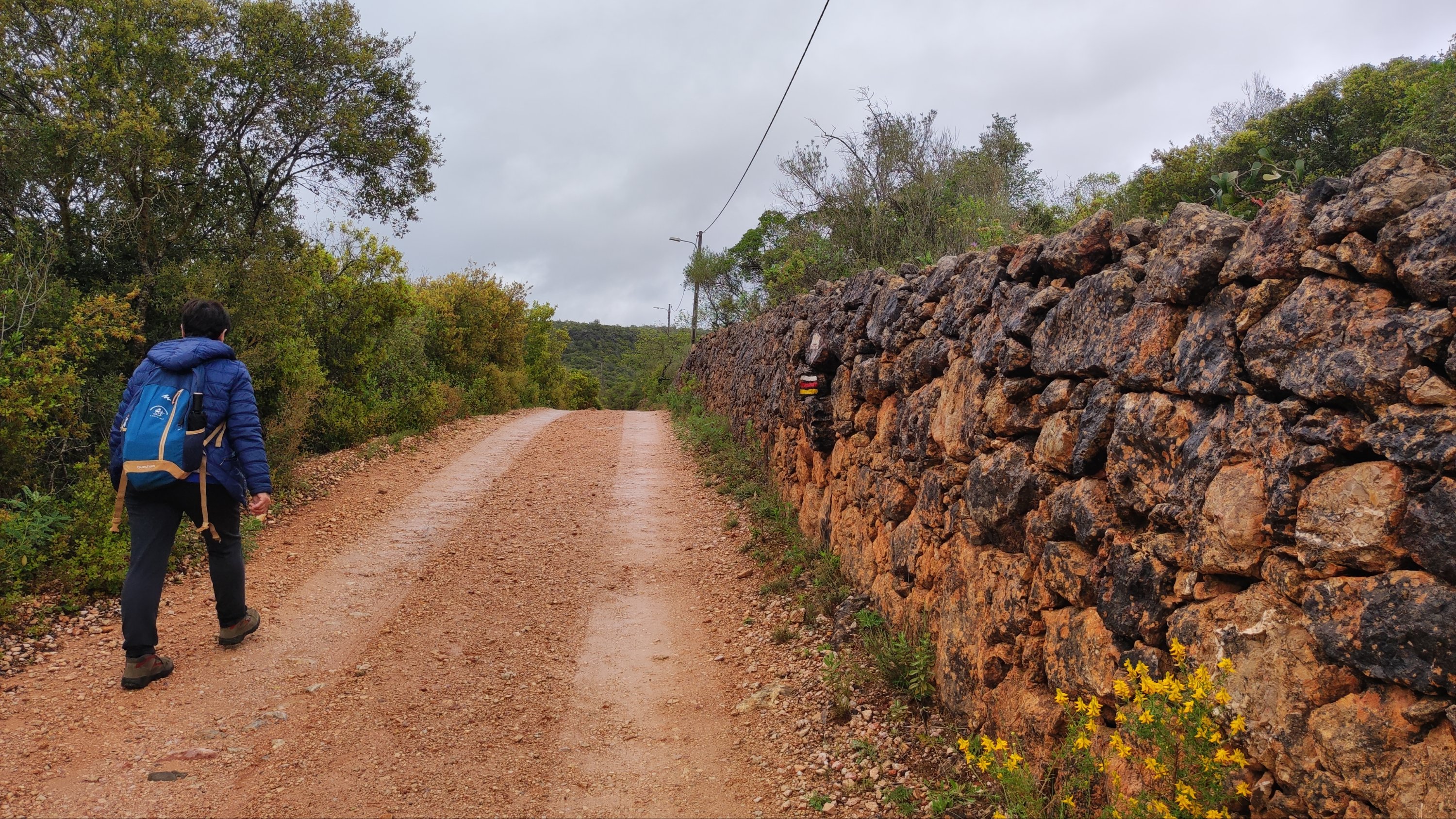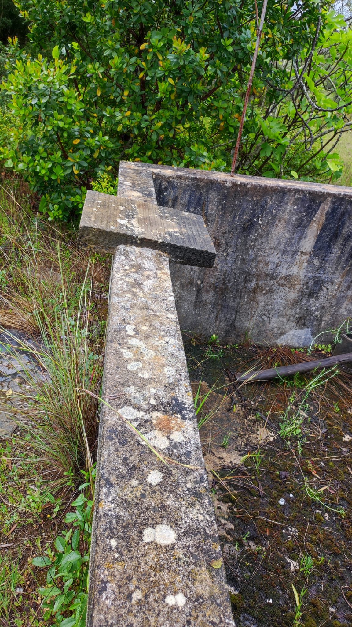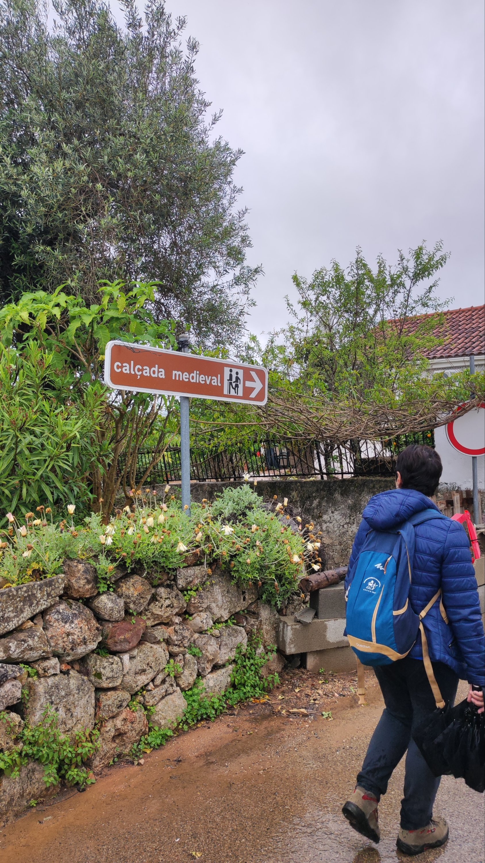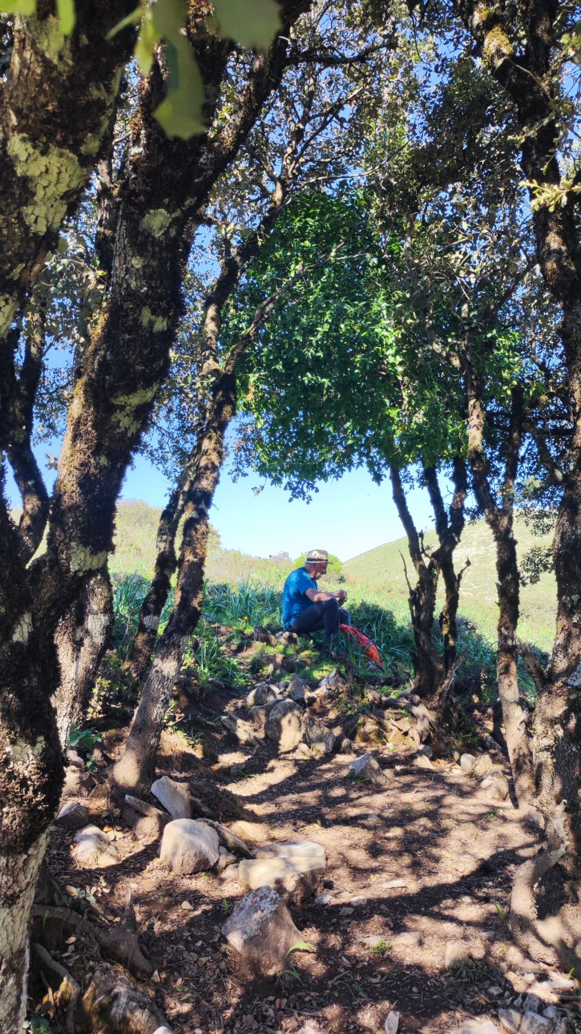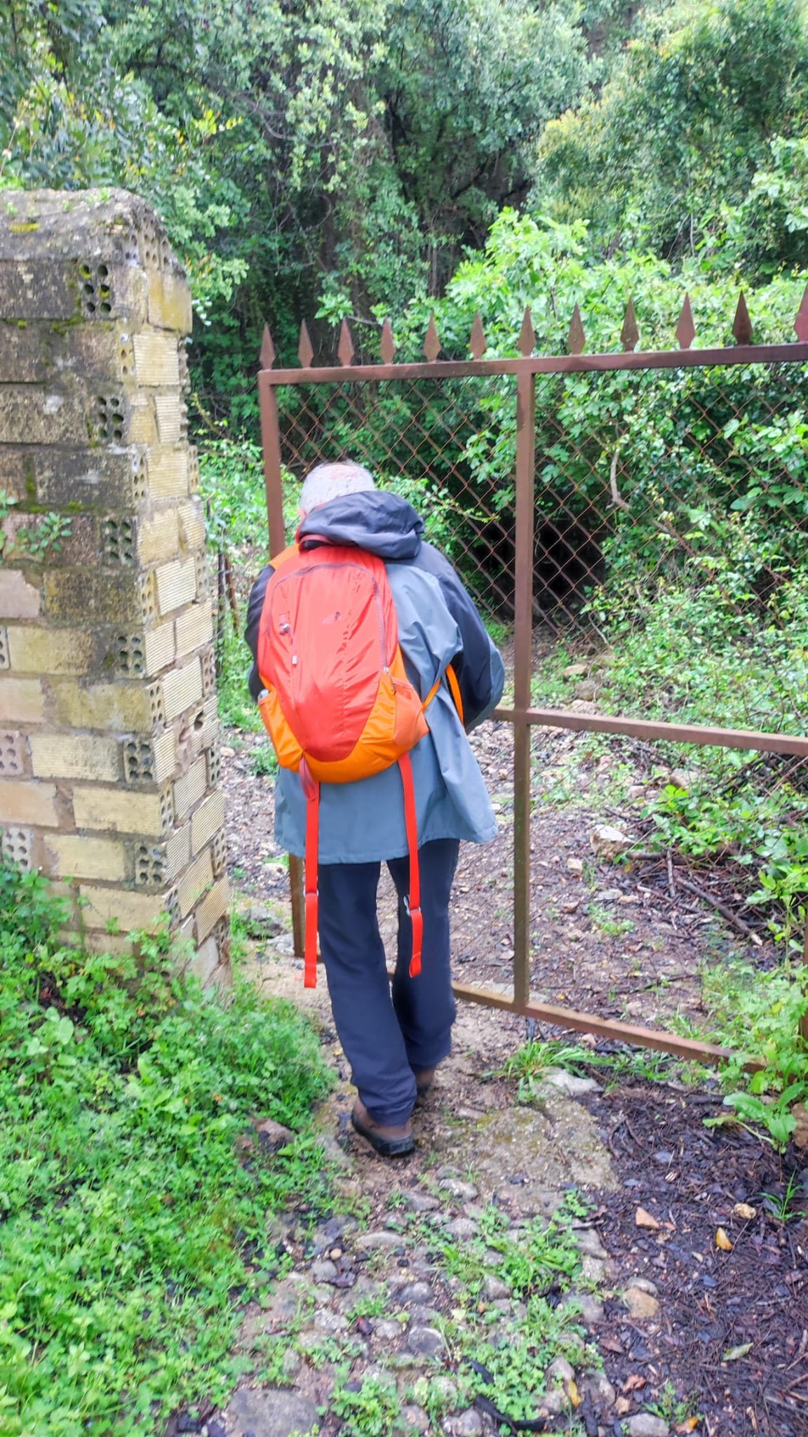 La subida es de apenas un km. Pasamos bajo una puertecilla metálica en la que indican que el seminario está en obras, un grupo de majestuosos eucalitus (uno de ellos caído sobre unas rocas) y llegamos a un pedestal con una cruz de hierro. Aquí las vistas sobre el embalse son magníficas y tras las fotos de rigor, hacemos los 300 m que nos separan del Seminario.