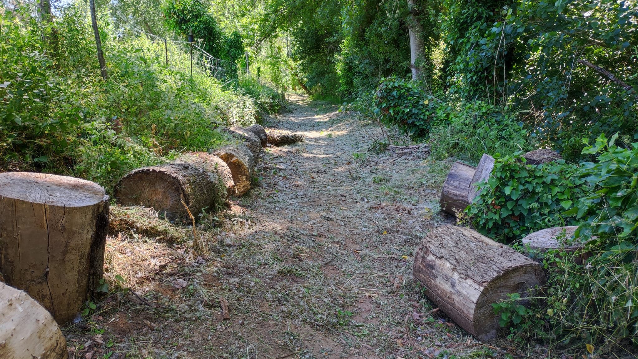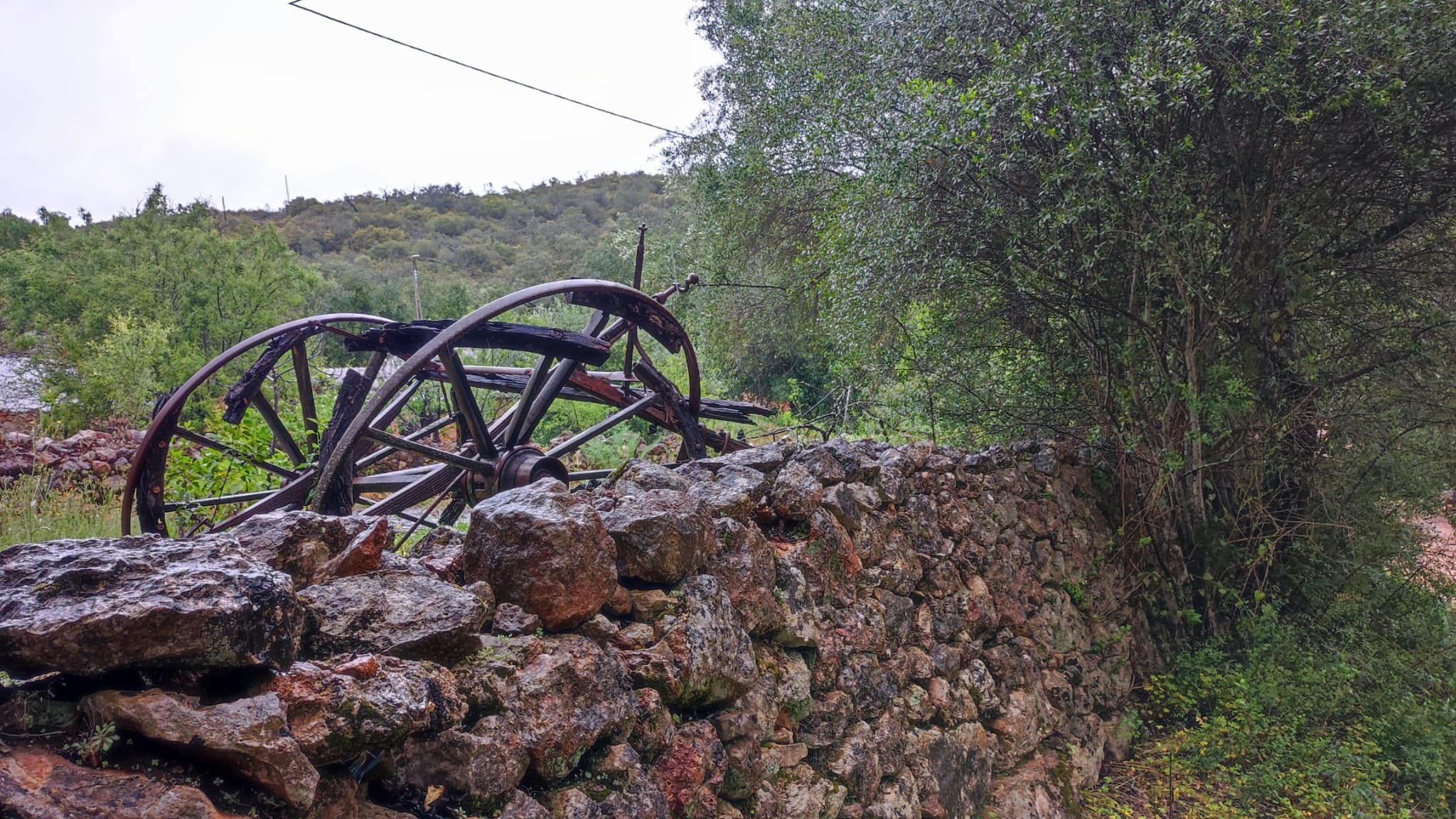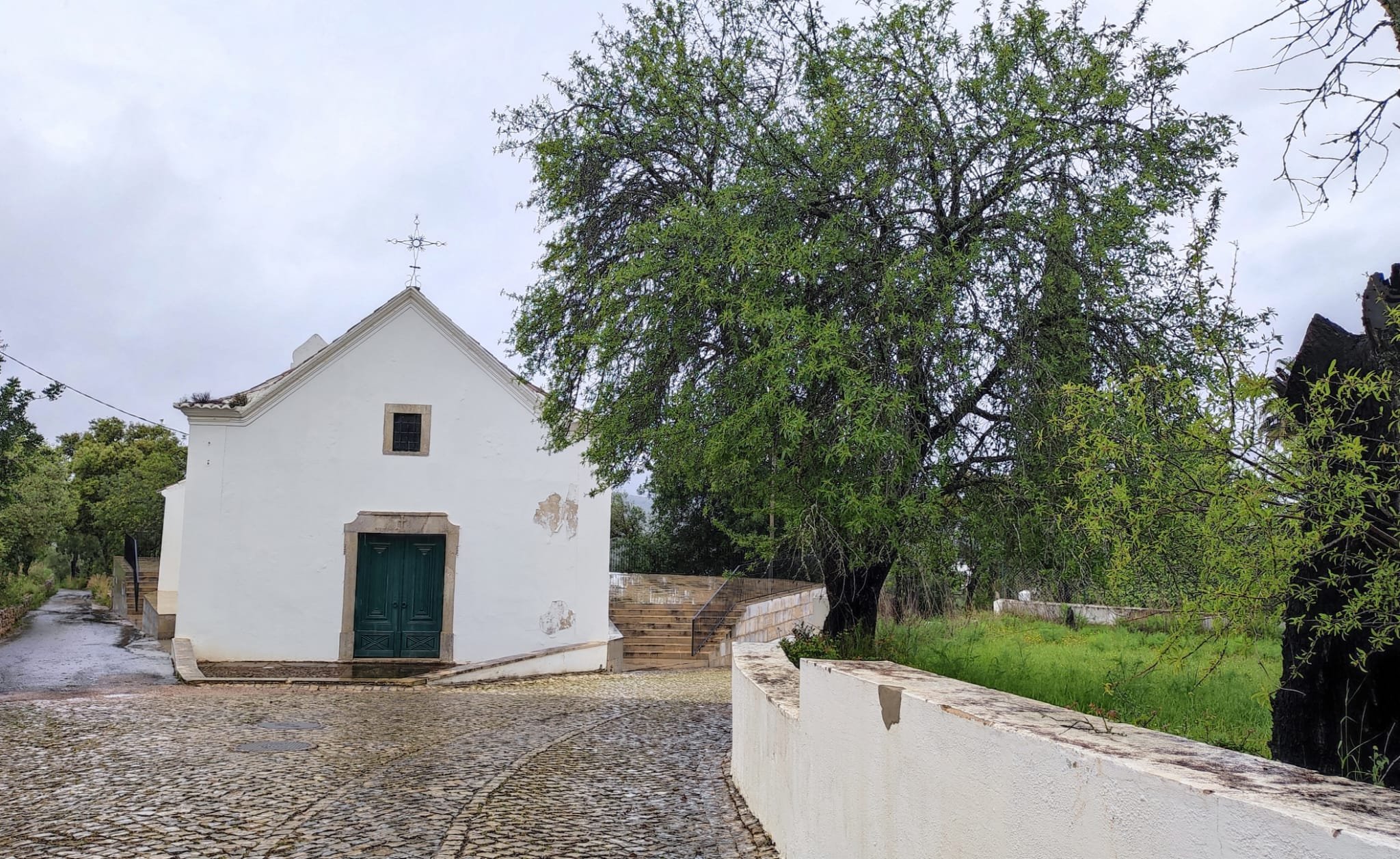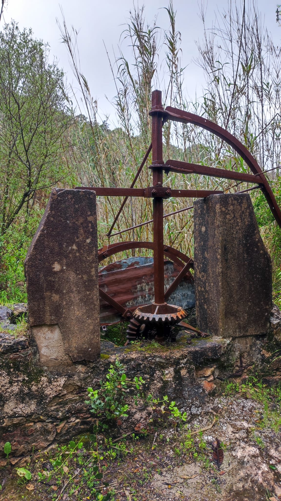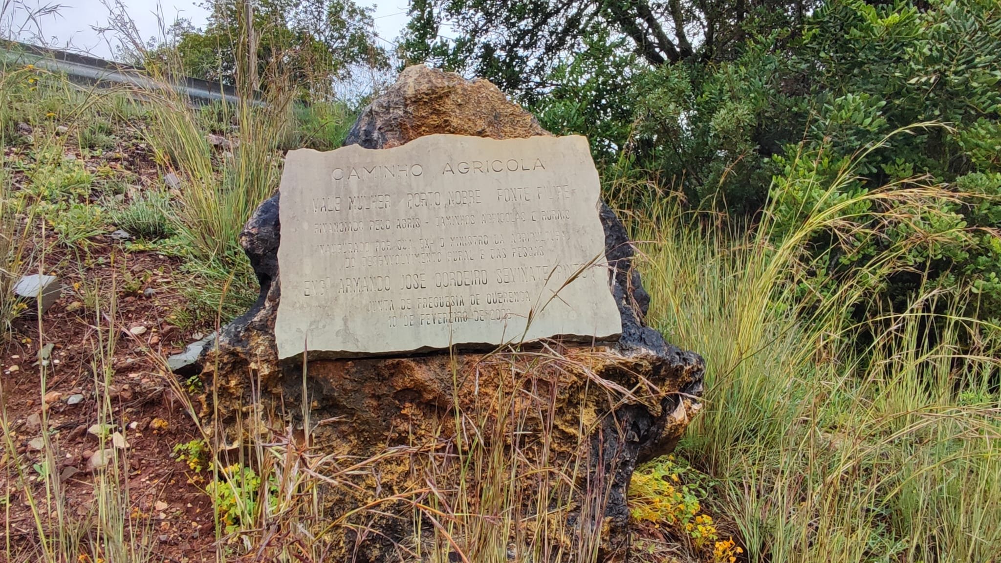 La subida es de apenas un km. Pasamos bajo una puertecilla metálica en la que indican que el seminario está en obras, un grupo de majestuosos eucalitus (uno de ellos caído sobre unas rocas) y llegamos a un pedestal con una cruz de hierro. Aquí las vistas sobre el embalse son magníficas y tras las fotos de rigor, hacemos los 300 m que nos separan del Seminario.