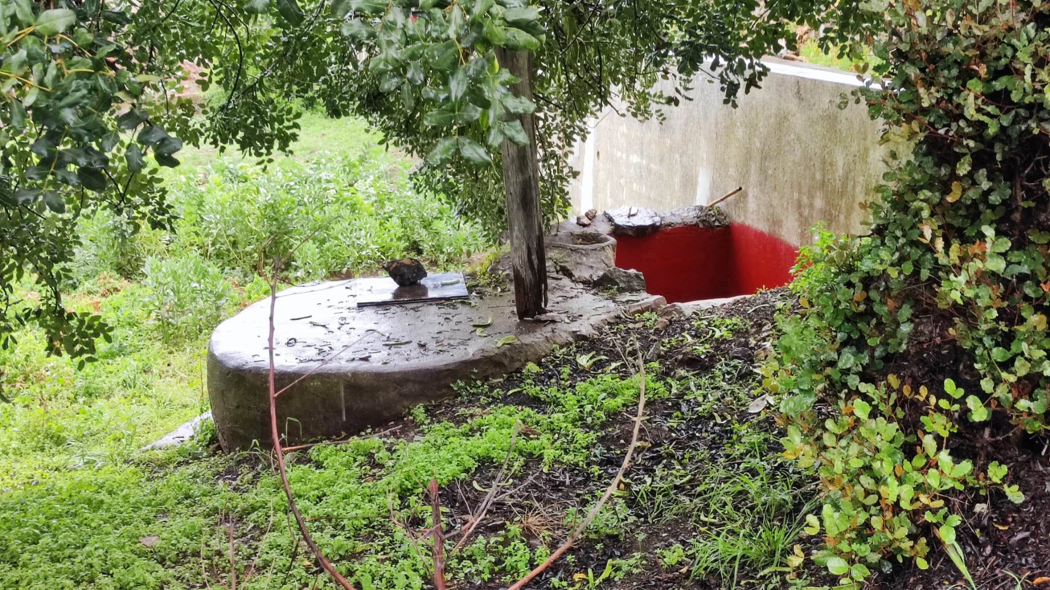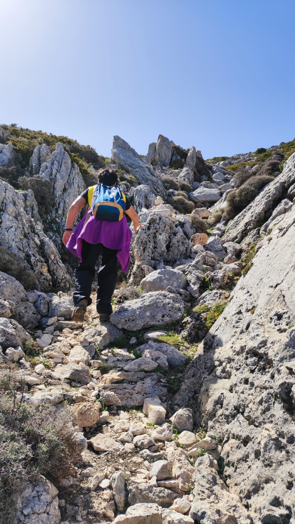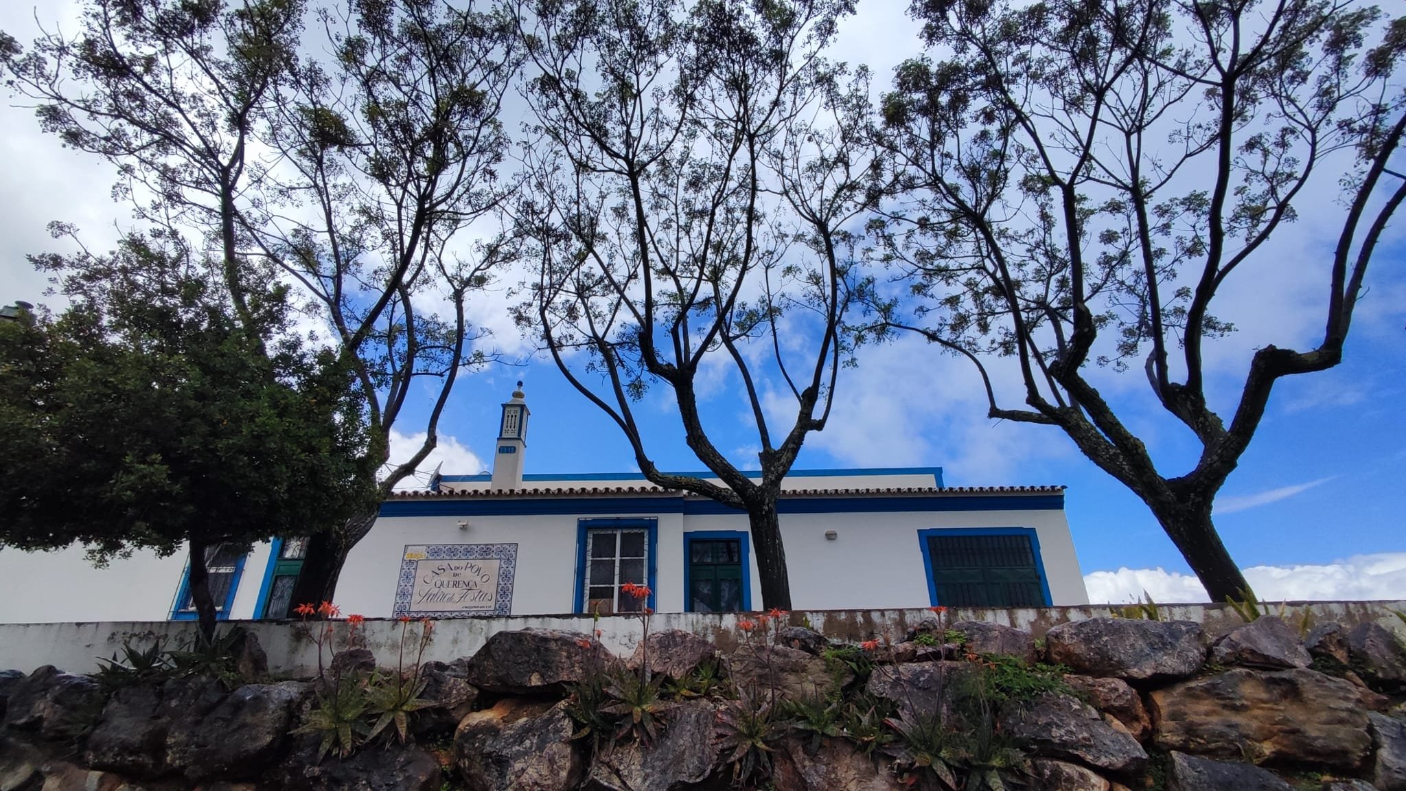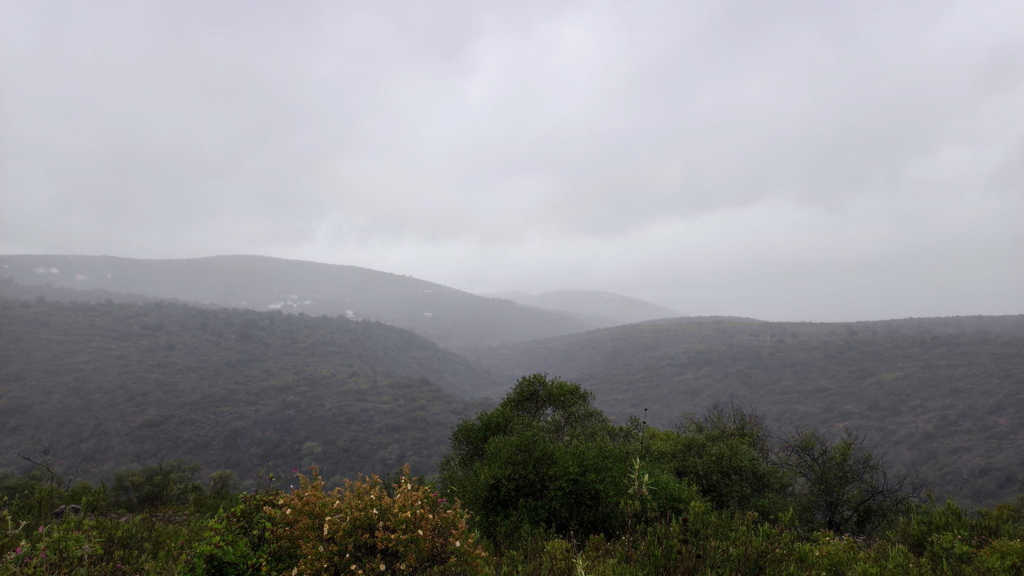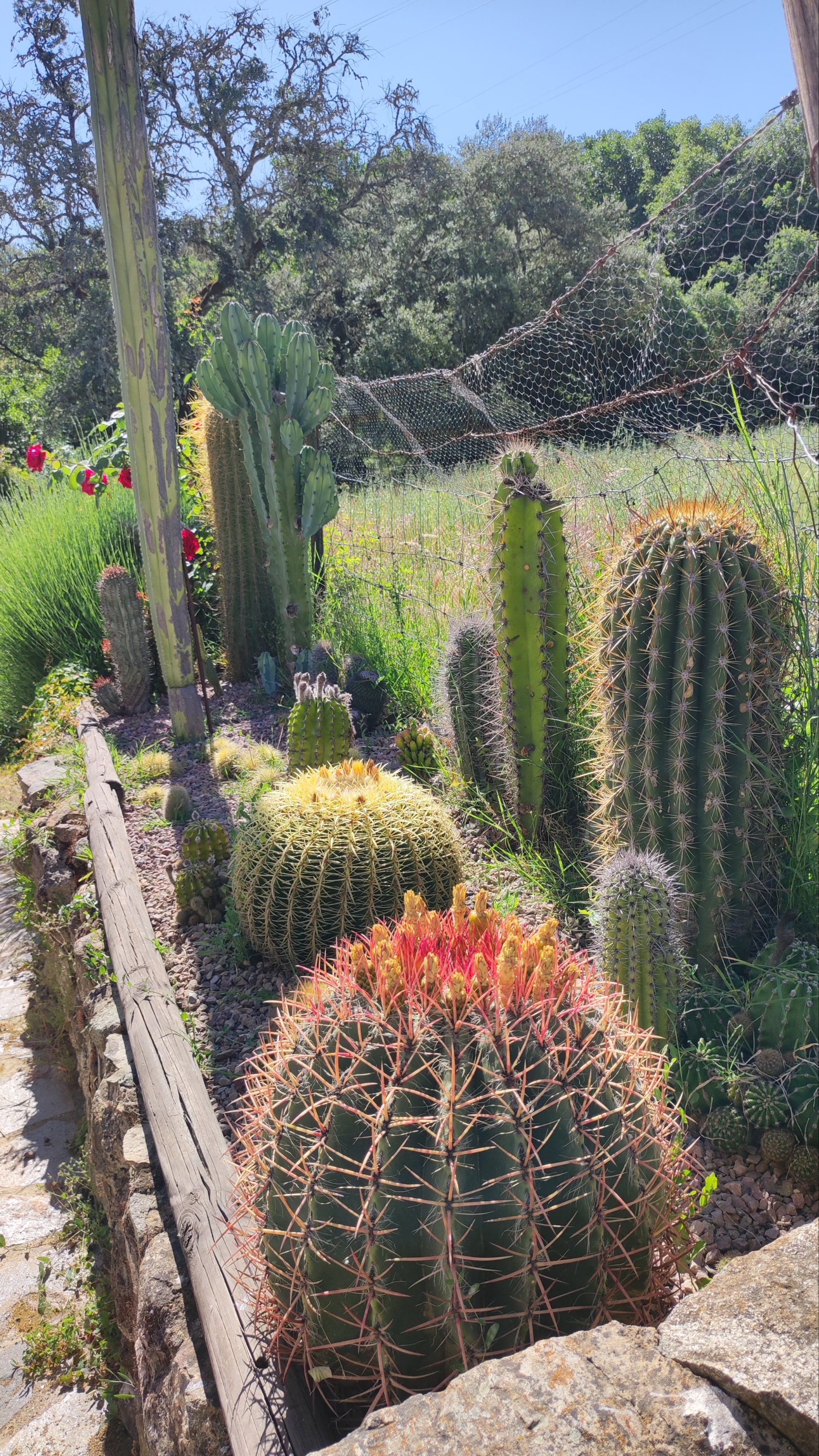 La subida es de apenas un km. Pasamos bajo una puertecilla metálica en la que indican que el seminario está en obras, un grupo de majestuosos eucalitus (uno de ellos caído sobre unas rocas) y llegamos a un pedestal con una cruz de hierro. Aquí las vistas sobre el embalse son magníficas y tras las fotos de rigor, hacemos los 300 m que nos separan del Seminario.