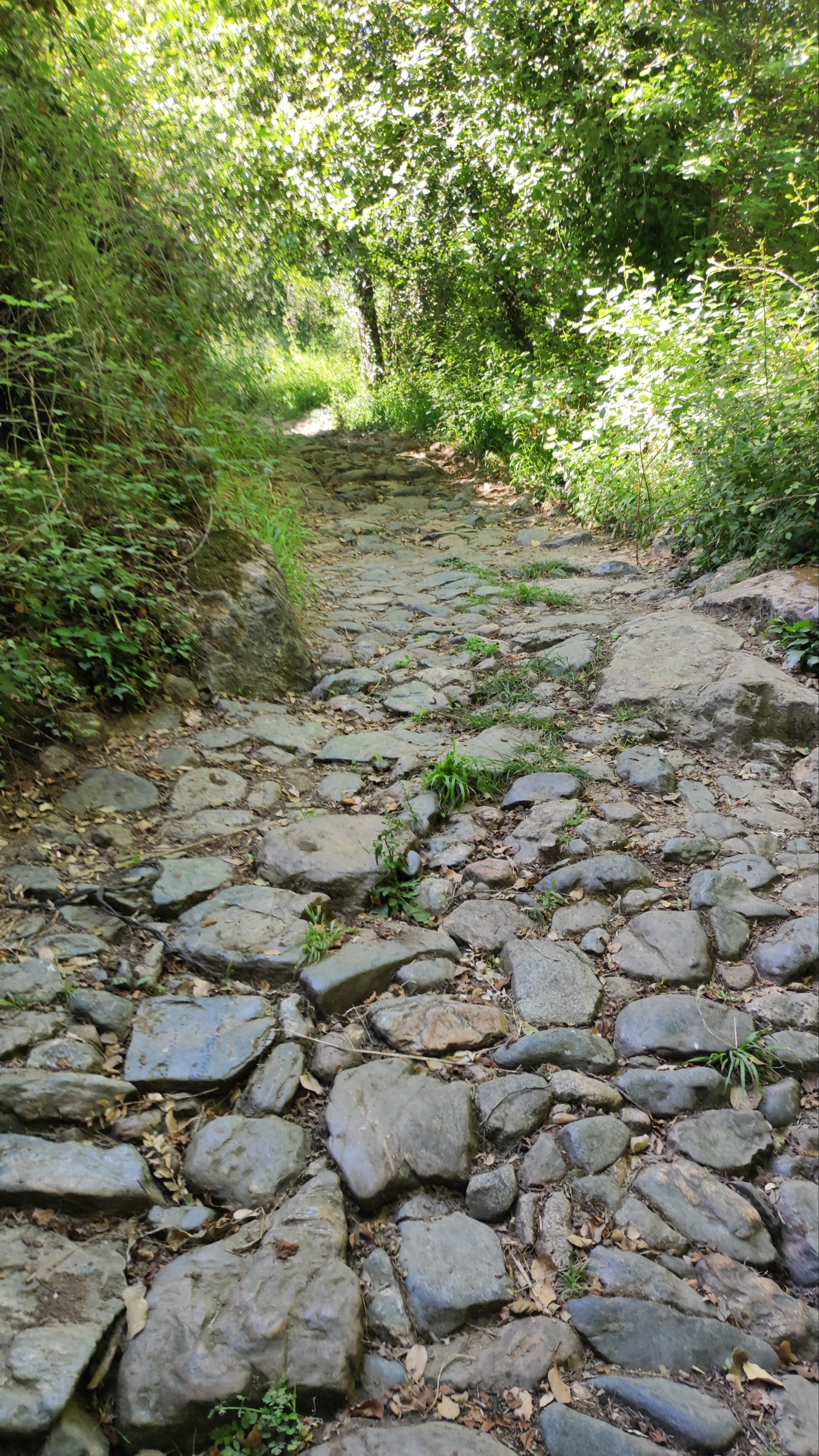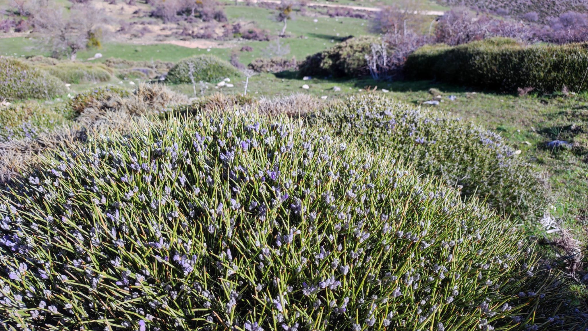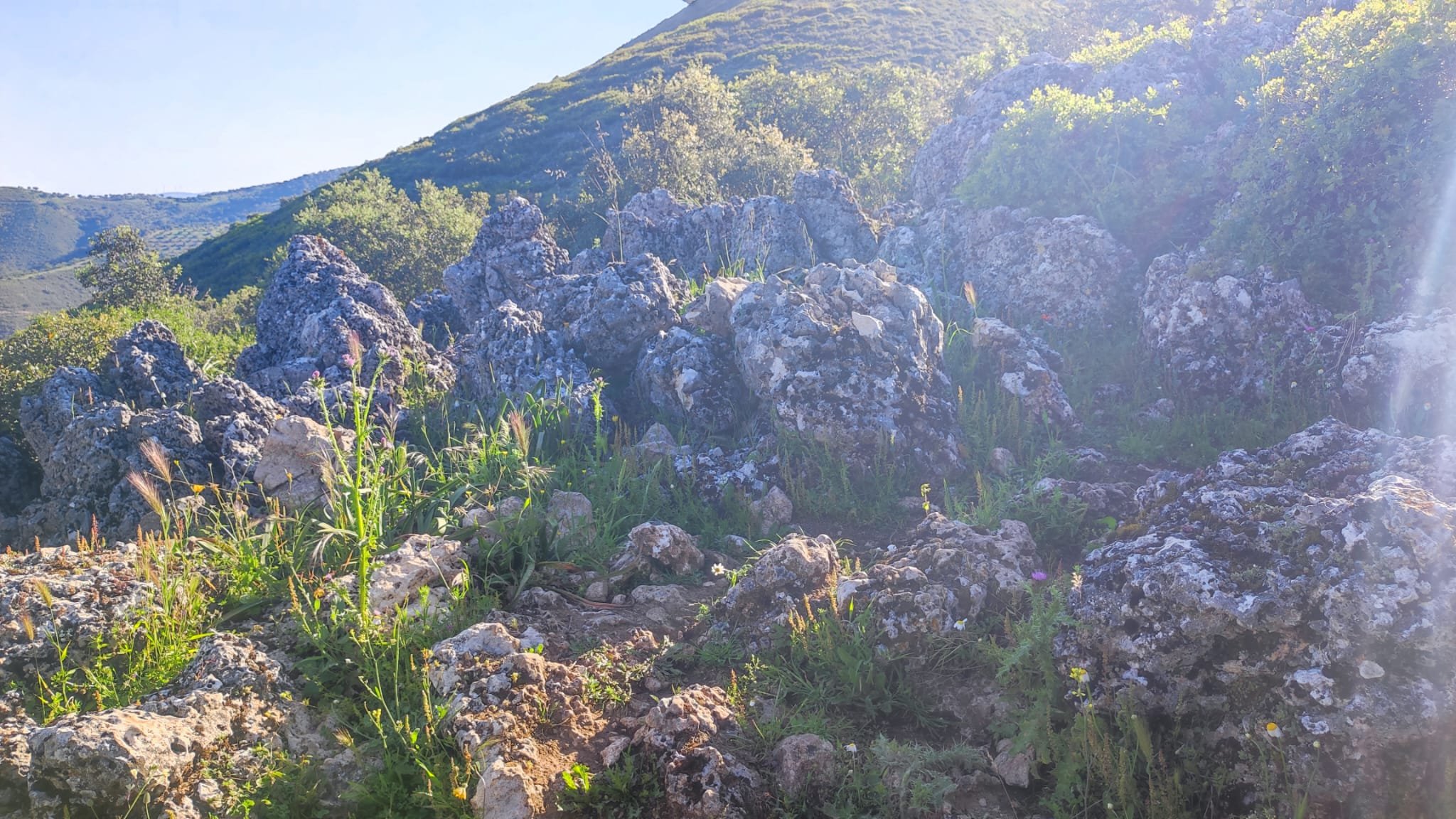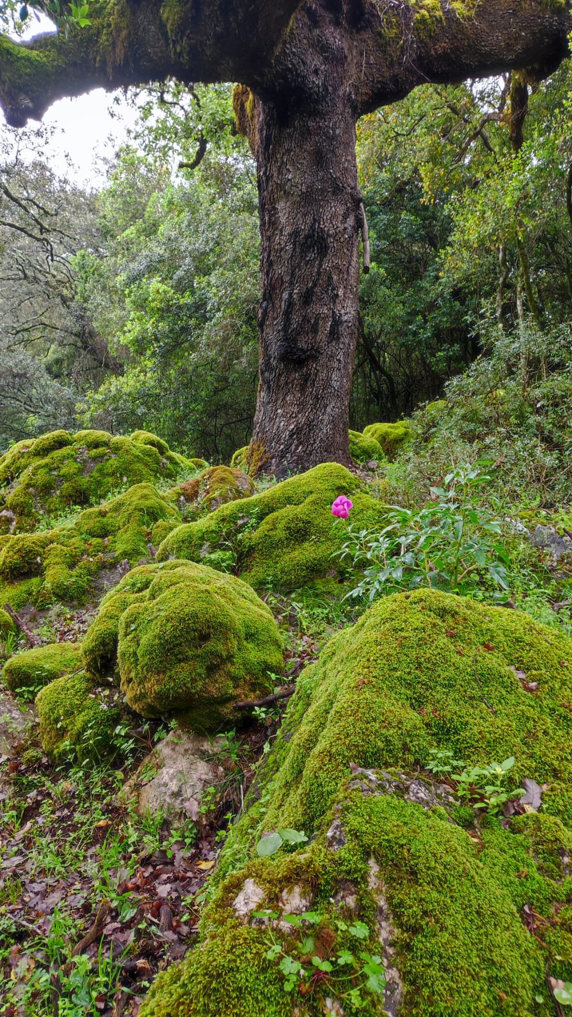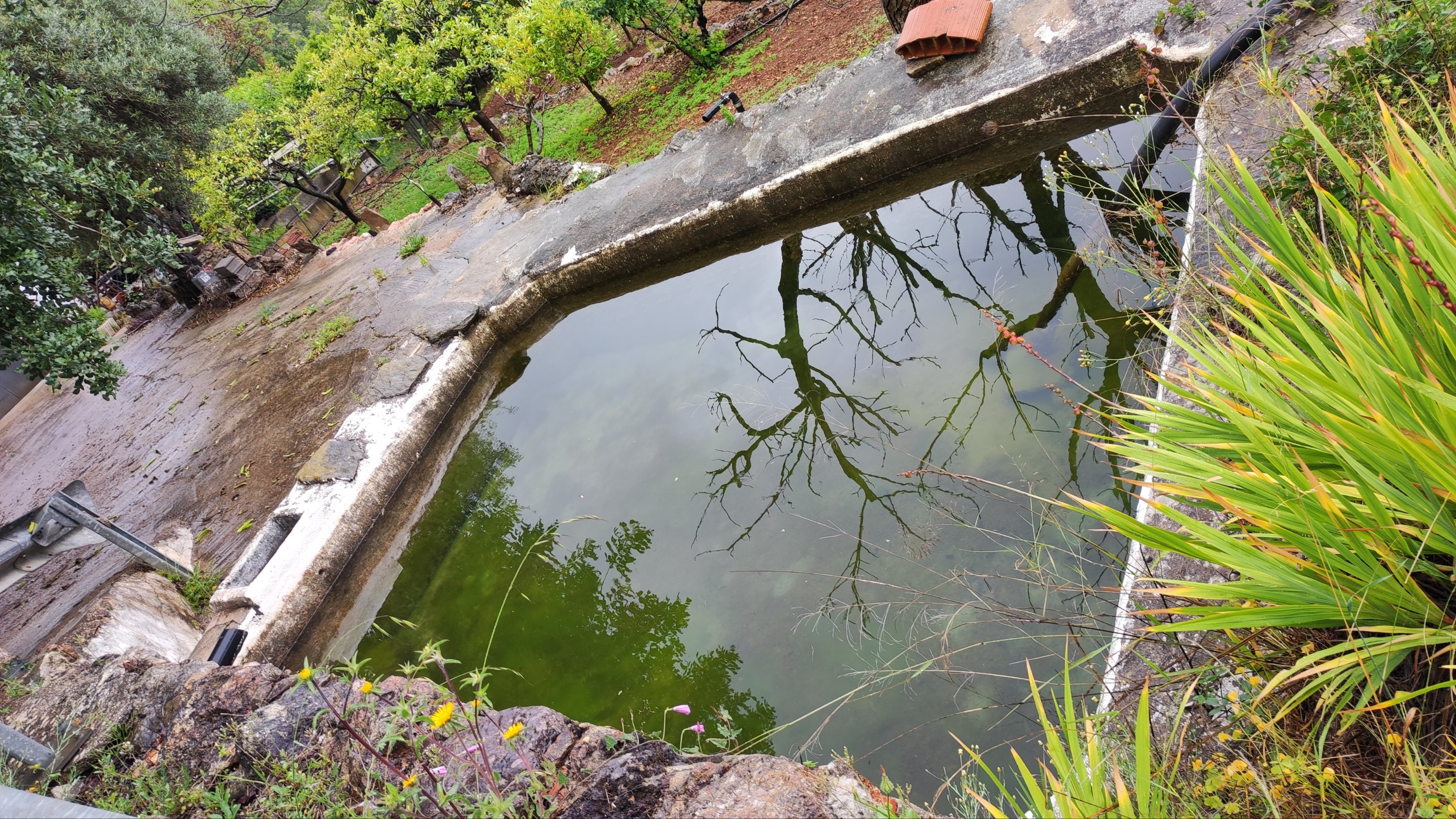 A partir de este punto seguimos un estrecho sendero junto a las aguas del embalse de derivación entre una vegetación propia del bosque mediterráneo mediatizada por presencia de las aguas del embalse. La encina es el árbol más abundante, junto con los acebuches, los jarales y algunos eucaliptus de gran porte. Entre la fauna, vemos algunos buitres leonados, alguna cigüeña negra y el canto de los jilgueros y el arrullo de las palomas. Es tierra de linces, pero lo frecuentado del sendero hace imposible su avistamiento. Hacia el km 5 de nuestro camino llegamos a la fuente de la amistad, el amor y la suerte que marca el comienzo de la pequeña ascensión. Es una fuente con tres caños nombrados de la amistad, del amor y de la suerte. Hoy no era el día del amor ya que de ese caño no manaba agua.