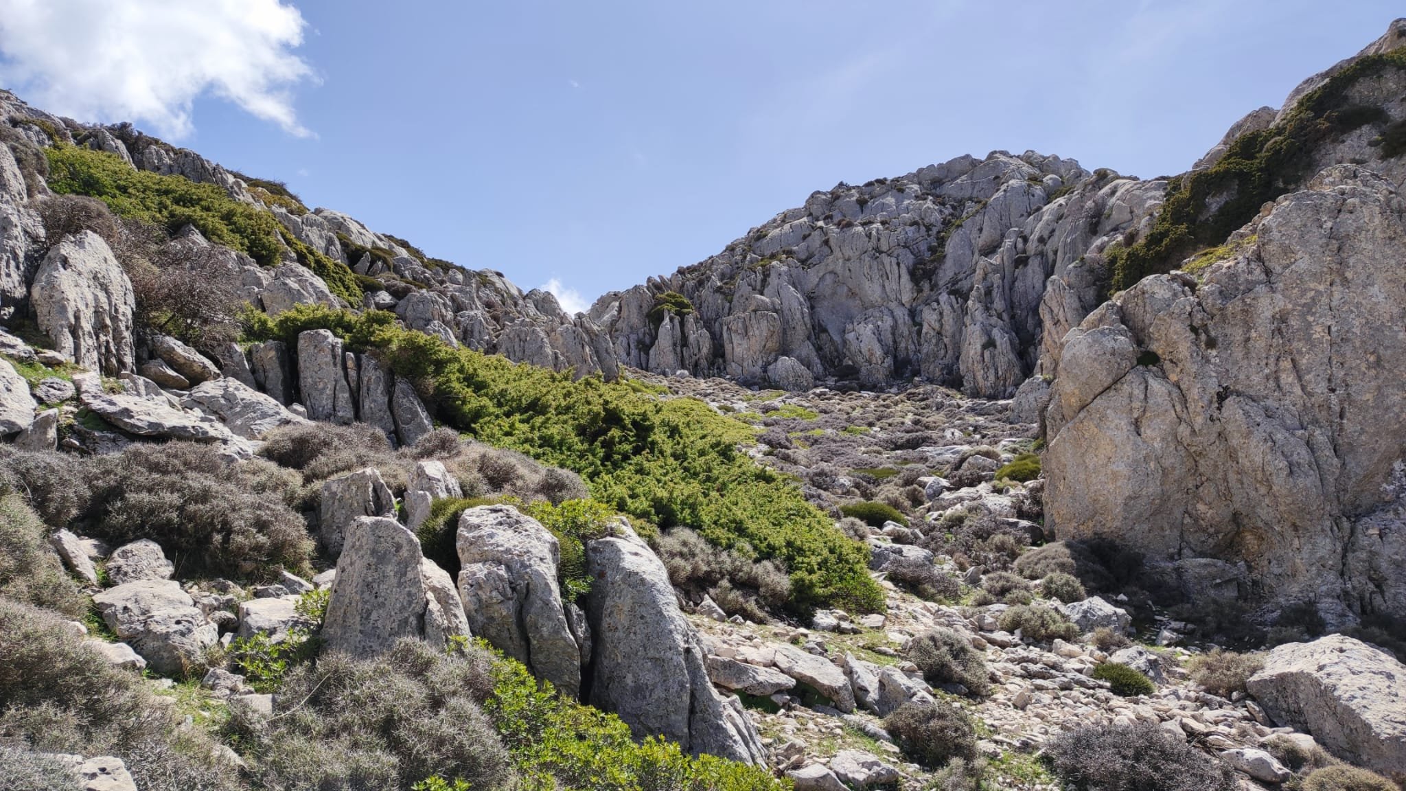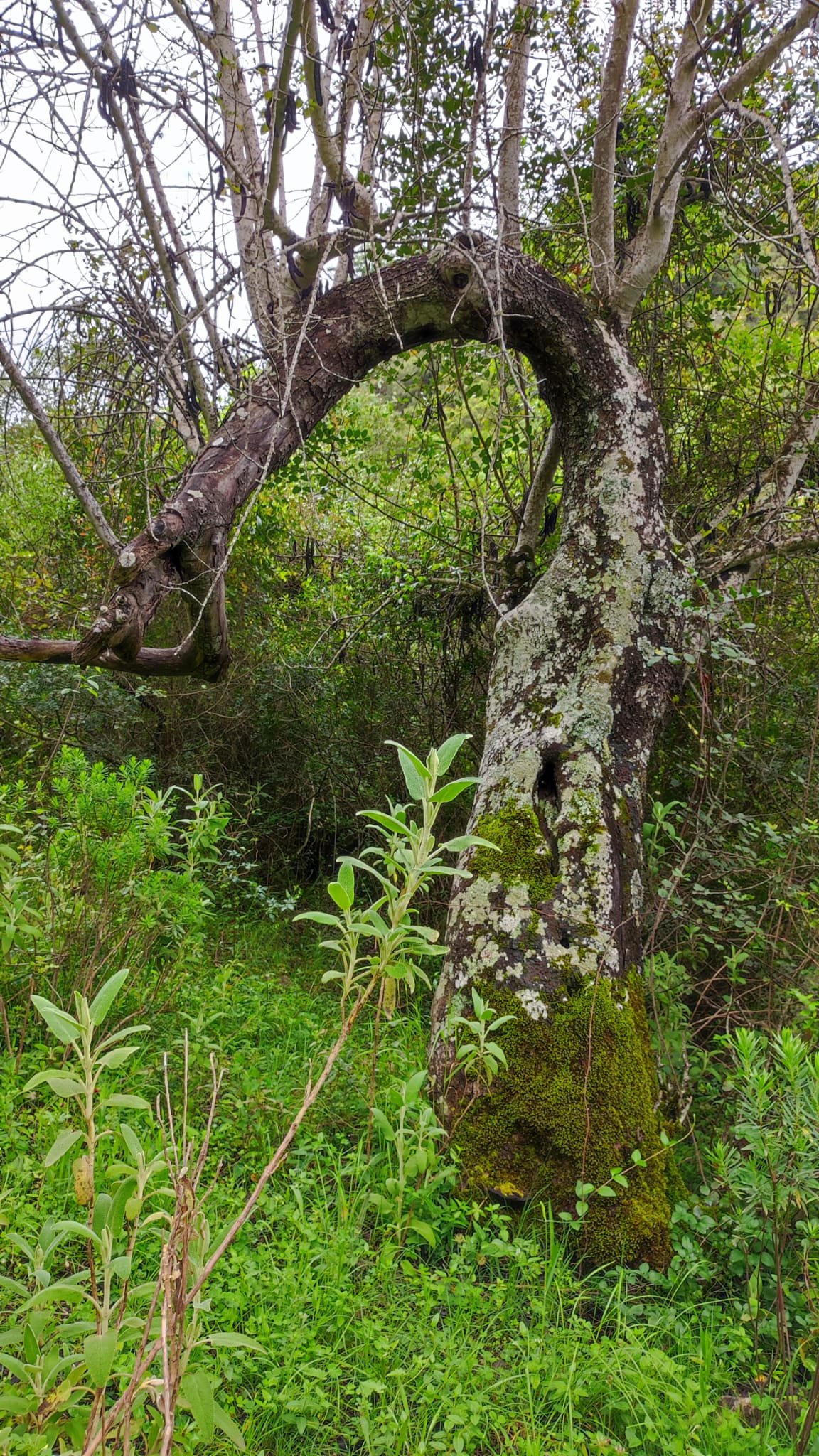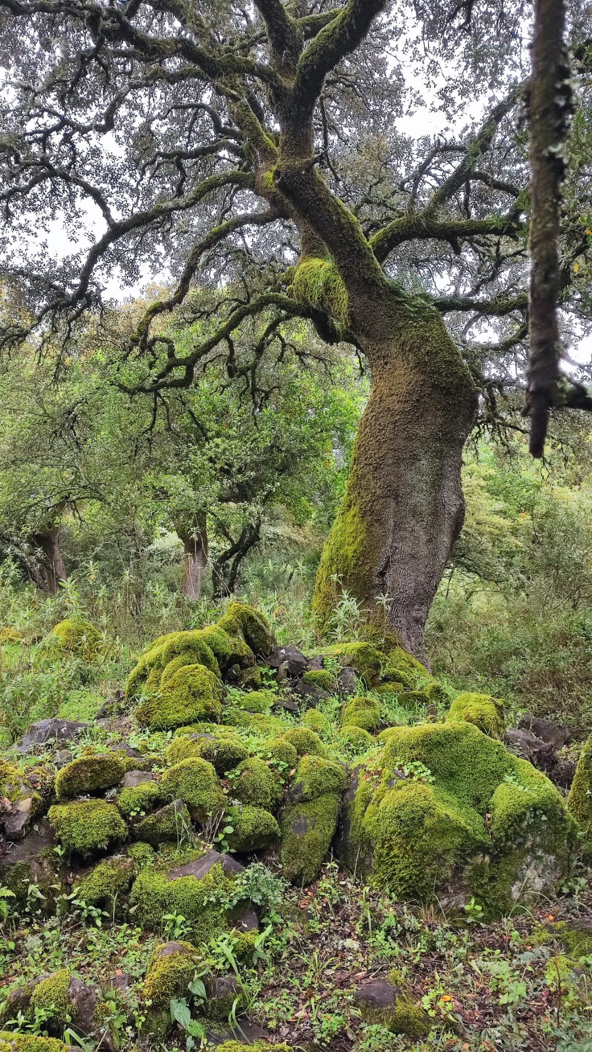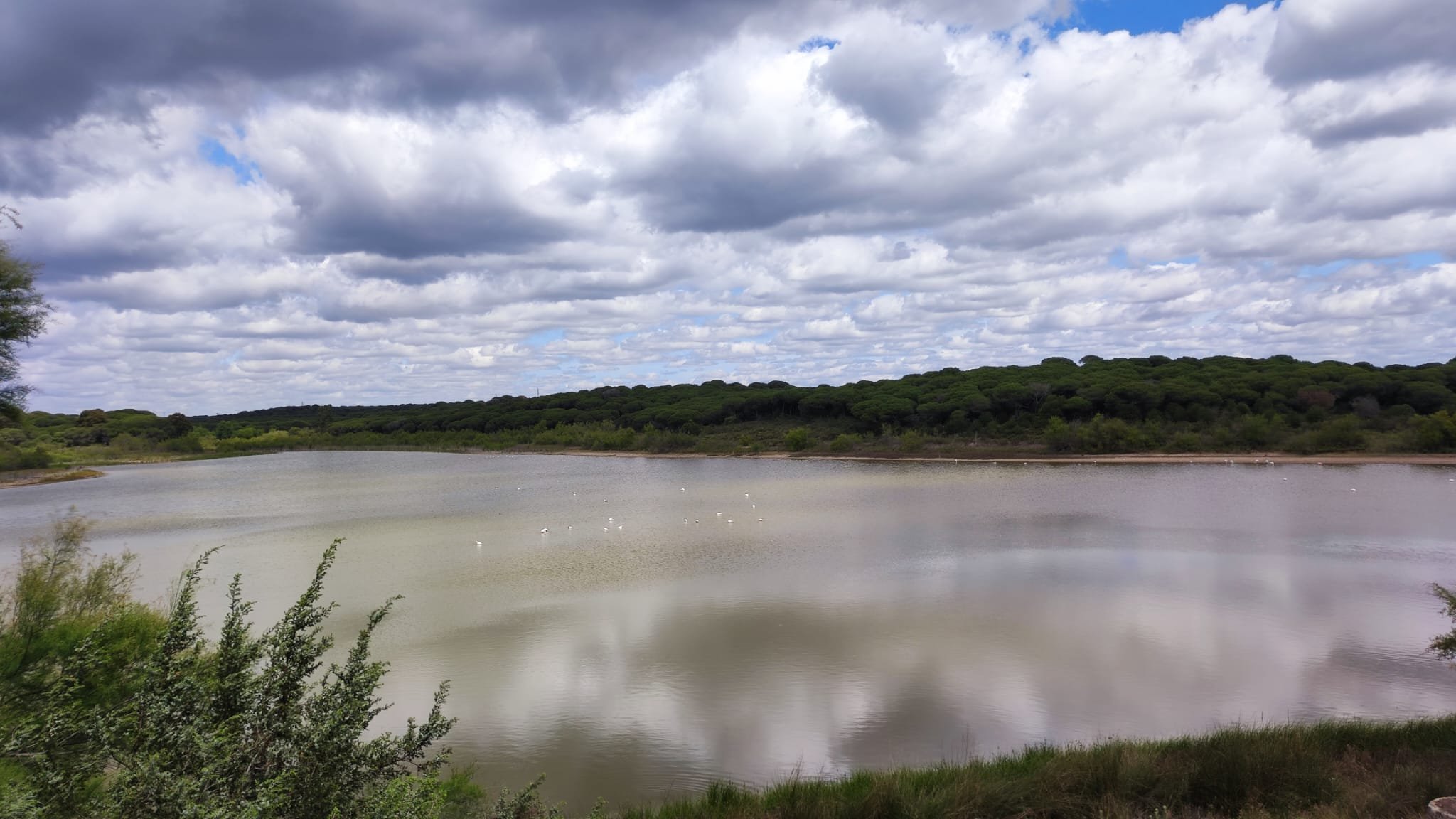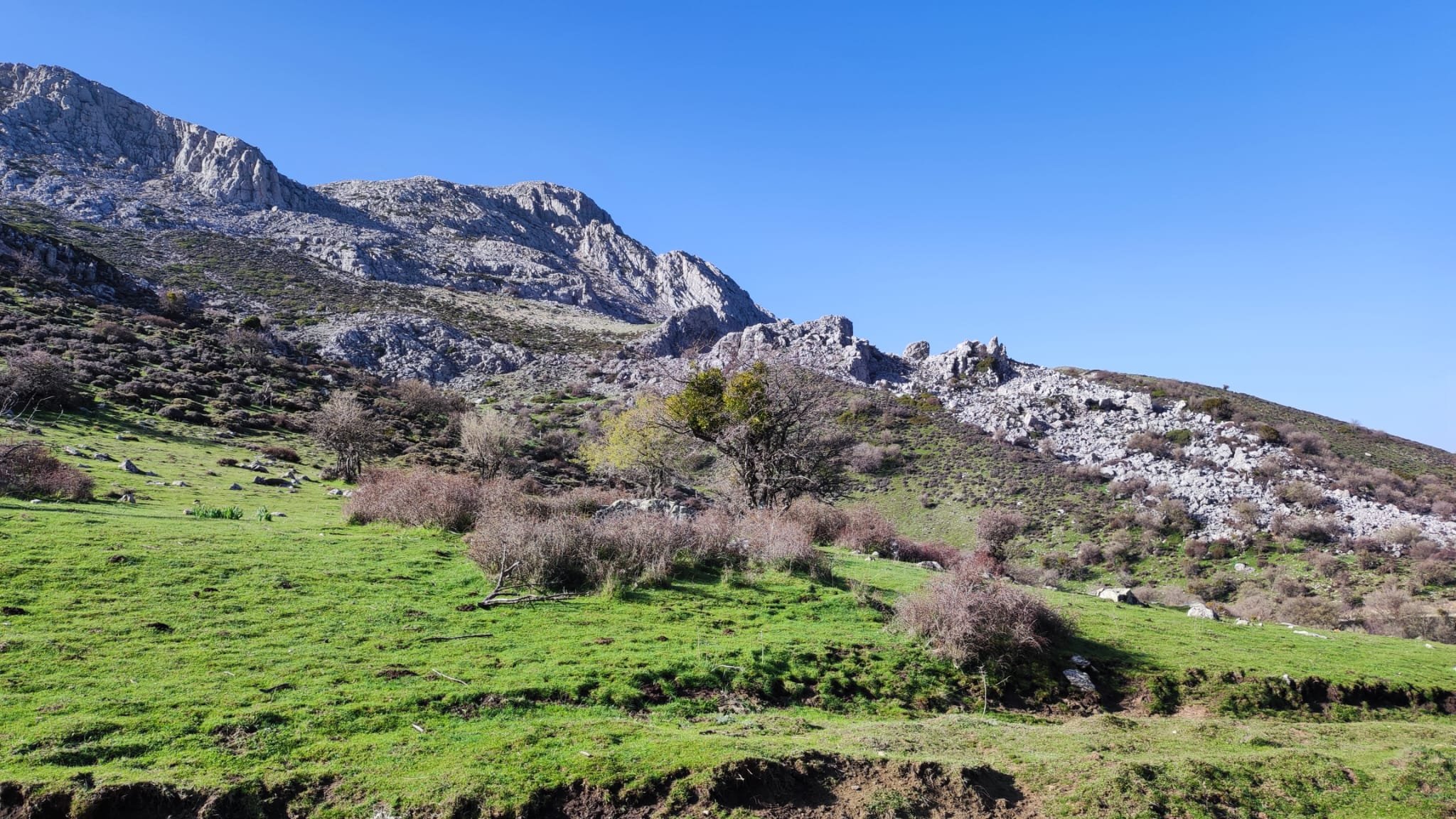 A partir de este punto seguimos un estrecho sendero junto a las aguas del embalse de derivación entre una vegetación propia del bosque mediterráneo mediatizada por presencia de las aguas del embalse. La encina es el árbol más abundante, junto con los acebuches, los jarales y algunos eucaliptus de gran porte. Entre la fauna, vemos algunos buitres leonados, alguna cigüeña negra y el canto de los jilgueros y el arrullo de las palomas. Es tierra de linces, pero lo frecuentado del sendero hace imposible su avistamiento. Hacia el km 5 de nuestro camino llegamos a la fuente de la amistad, el amor y la suerte que marca el comienzo de la pequeña ascensión. Es una fuente con tres caños nombrados de la amistad, del amor y de la suerte. Hoy no era el día del amor ya que de ese caño no manaba agua.