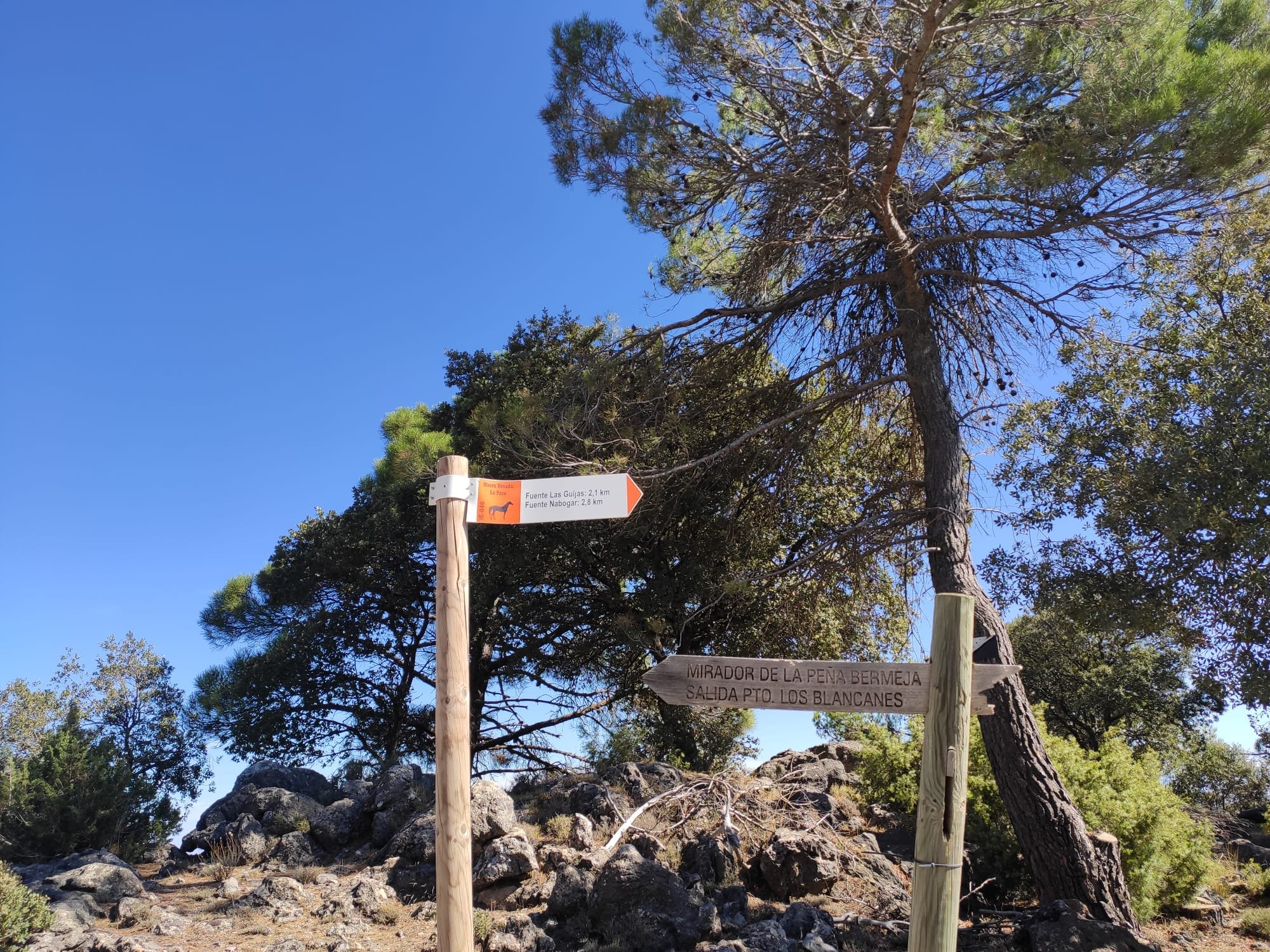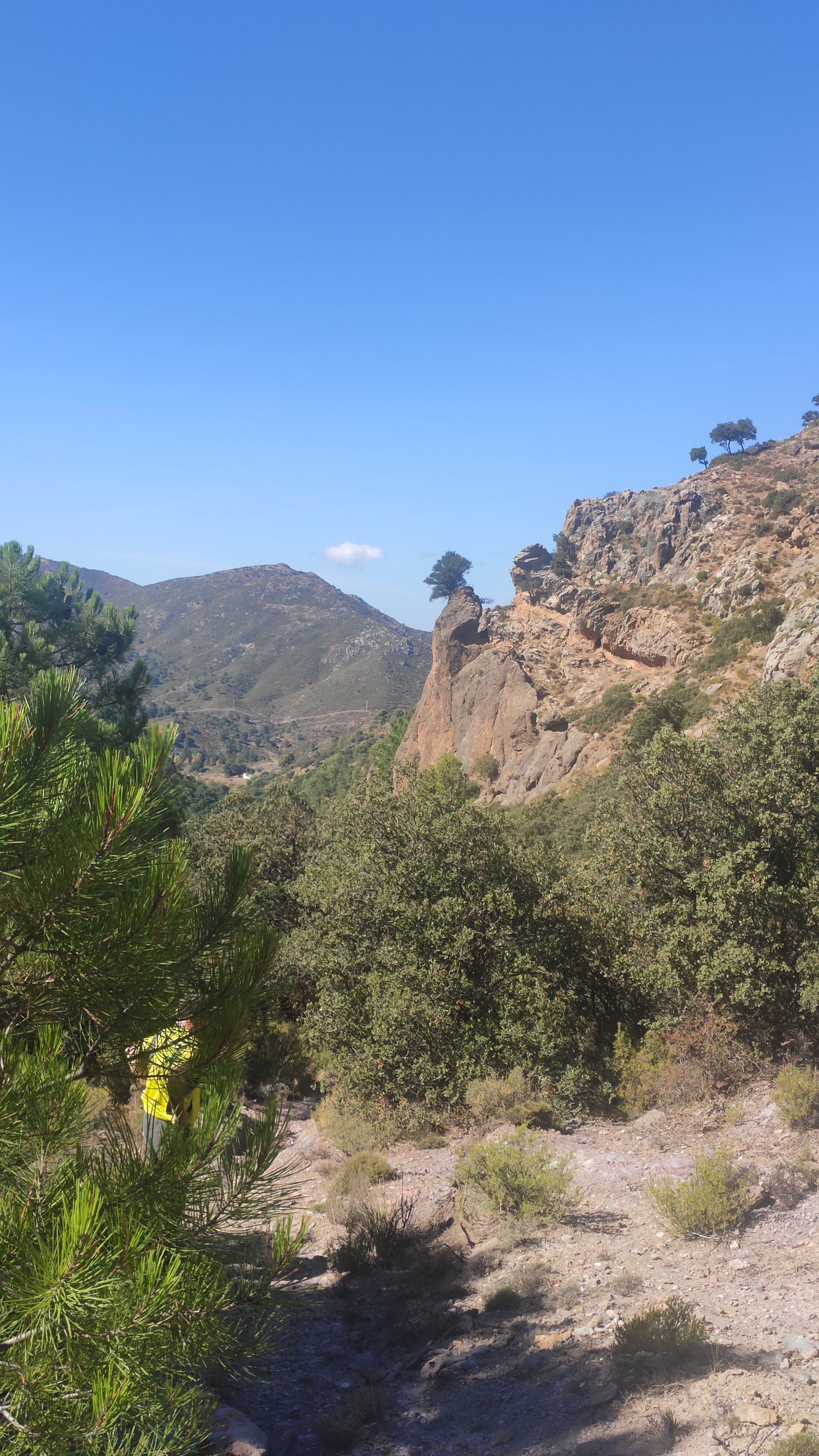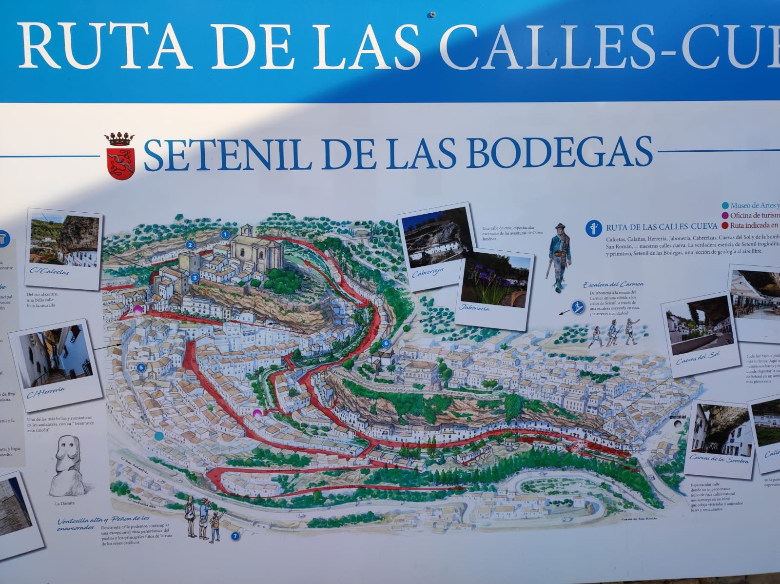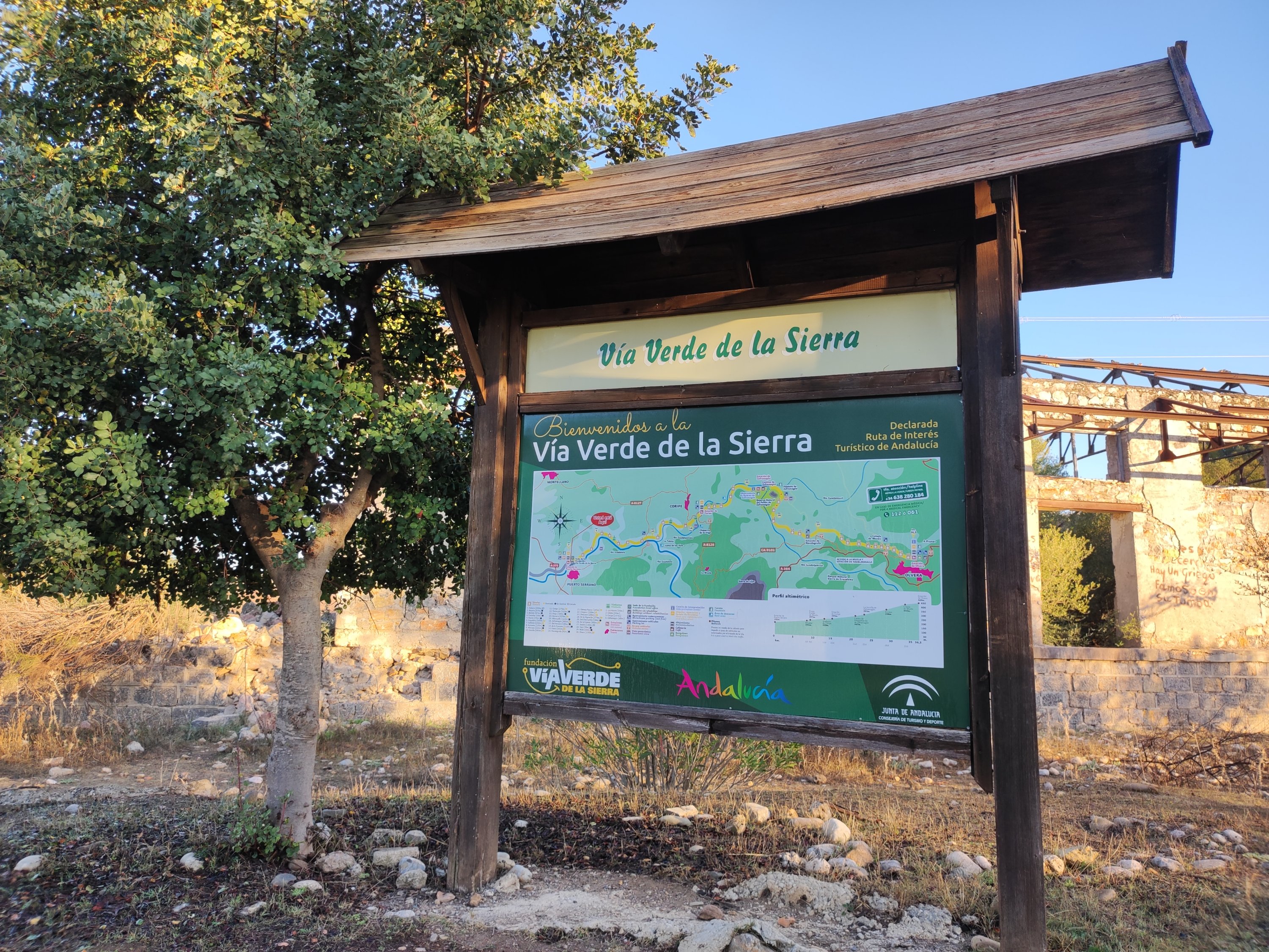 La ruta se inicia junto al consultorio de salud de Setenil. Habitualmente no hablo del viaje de aproximación al inicio de la ruta, pero en este caso voy a hacer una excepción porque el navegador del coche nos lo puso muy complicado empeñado en atravesar el pueblo por dentro. Una odisea nada recomendable ya que las calles son muy estrechas, en muchas de ellas está prohibida la circulación de vehículos y hay siempre muchos visitantes. Lo mejor es dejar el coche en los aparcamientos de la entrada y caminar hasta el punto de origen.