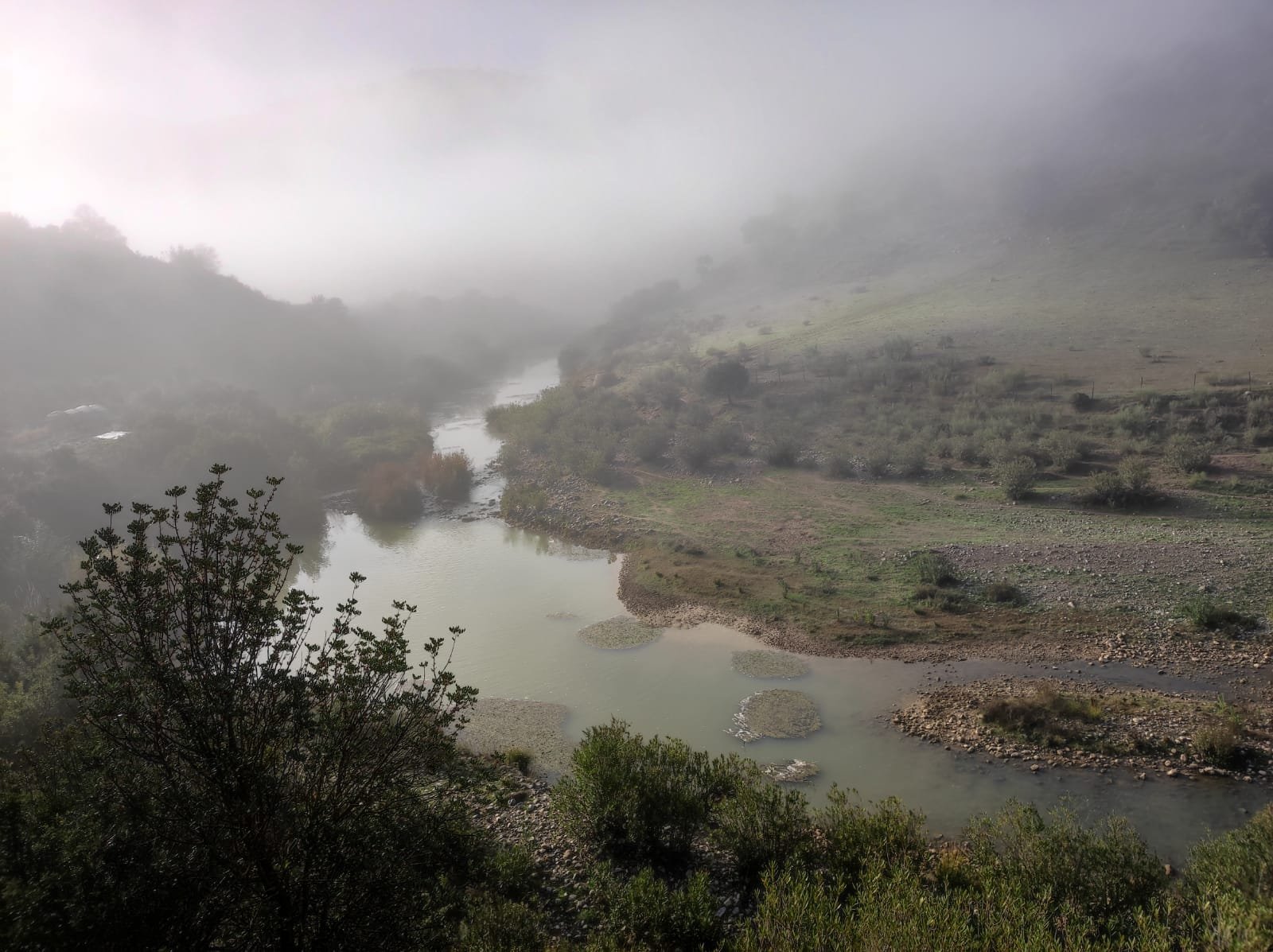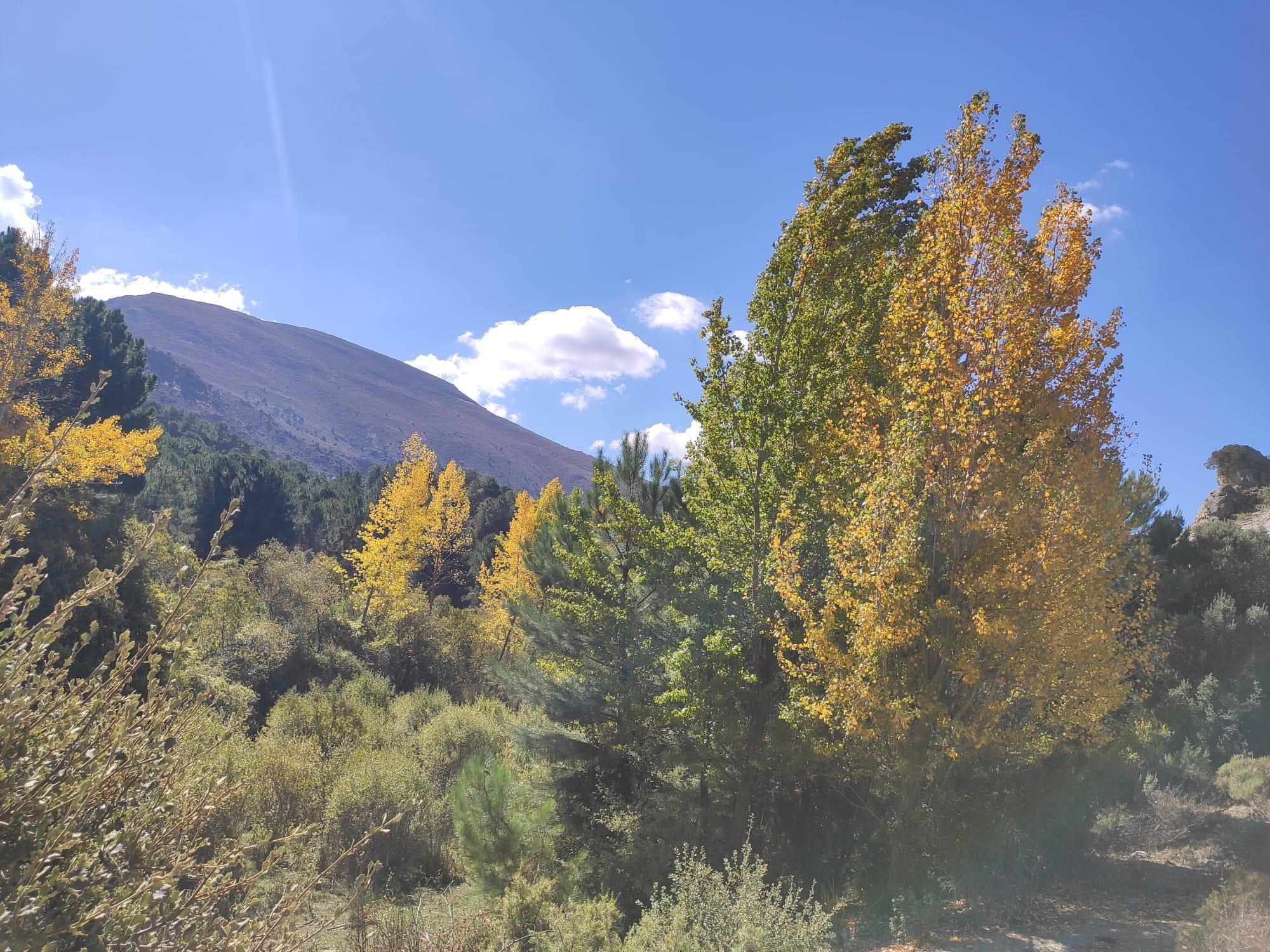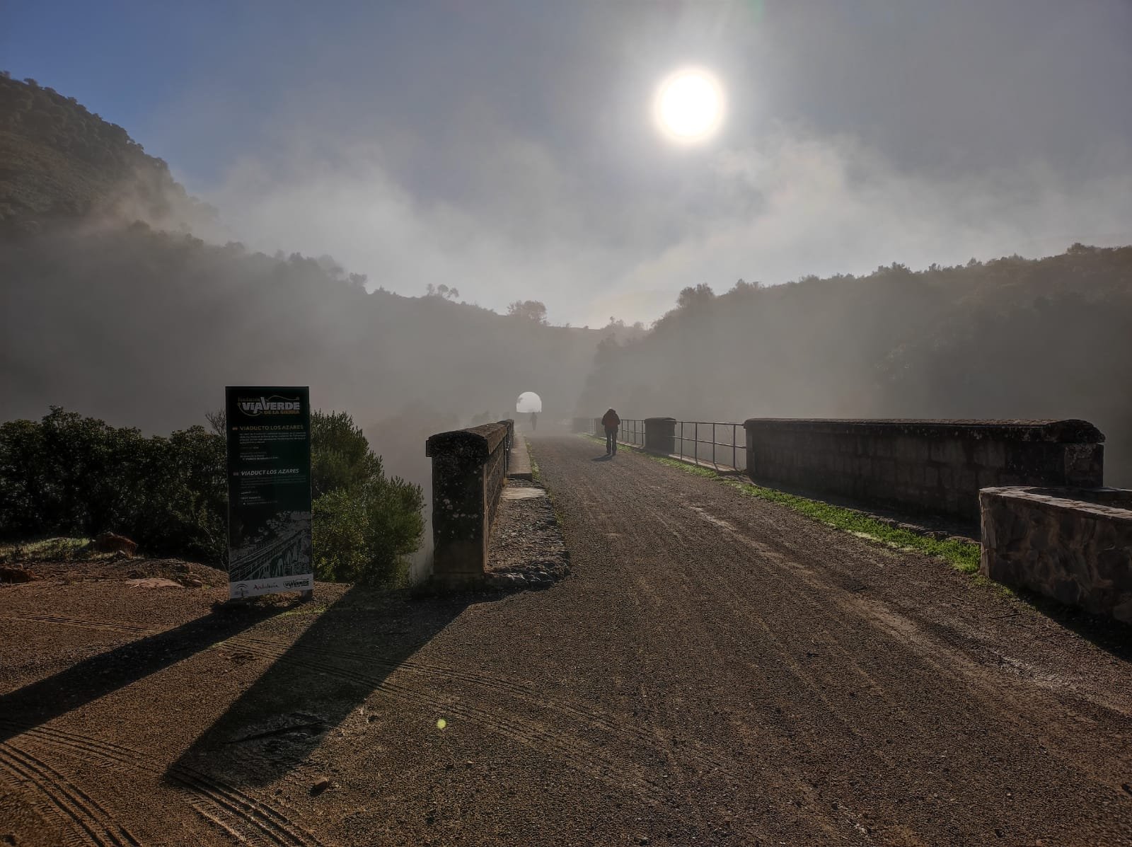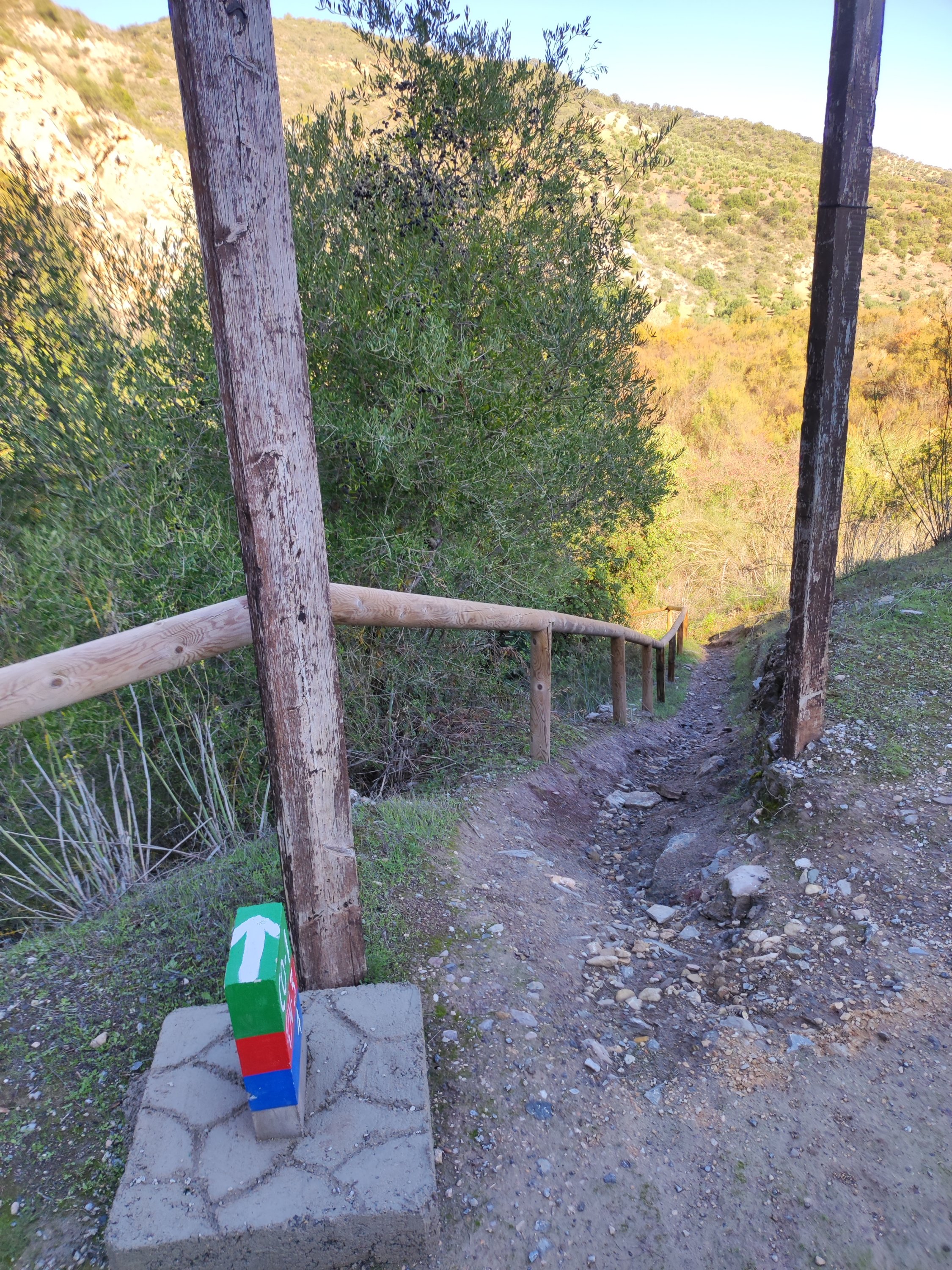 La mañana estaba bastante fría, así que comenzamos haciendo un poco de turismo por Setenil. A esa hora aún no había demasiados visitantes y pasear era un placer. Una vez visitadas las calles del Sol y de la Sombra y la ermita del Carmen. Bajamos hacia la Calle Jabonería y de ésta hacia la calle Cabrerizos por la que saldremos del pueblo. En el cruce antes del puente sobre el Guadalporcún (o Trejo como lo llaman aquí) veremos unas indicaciones hacia la ruta de los molinos.