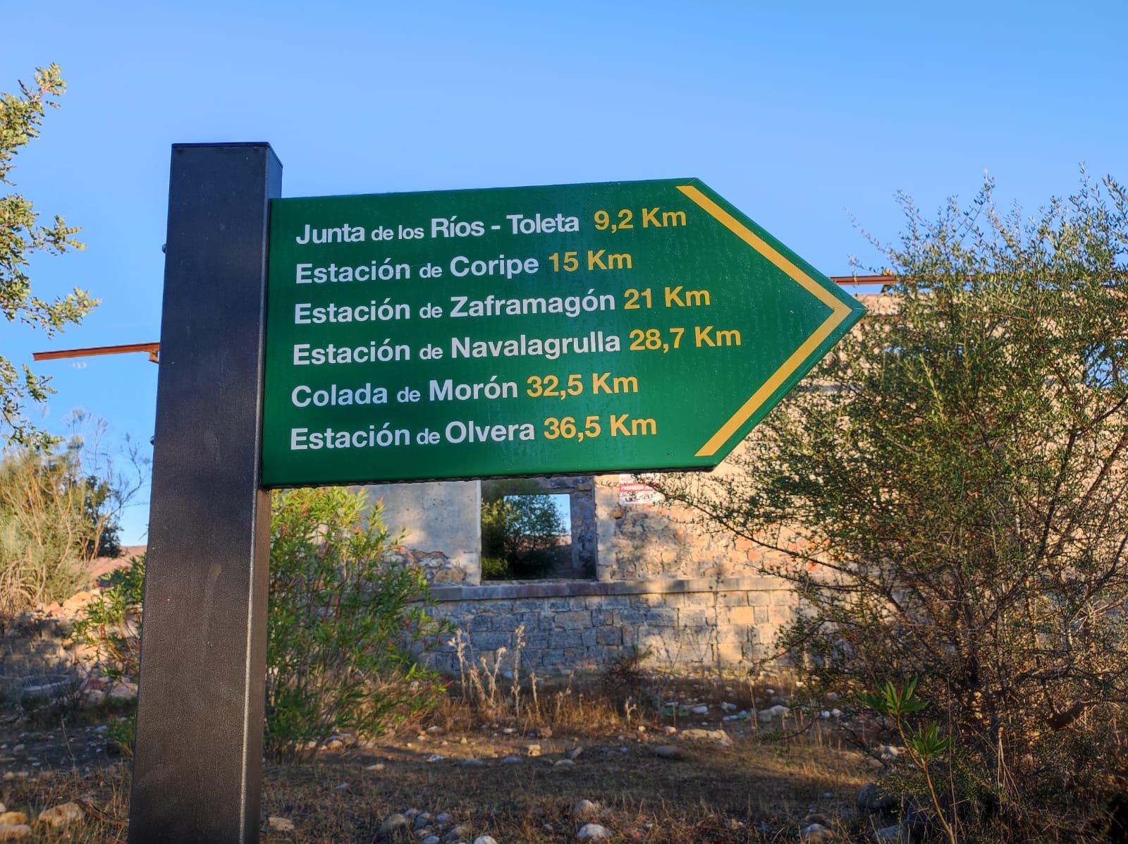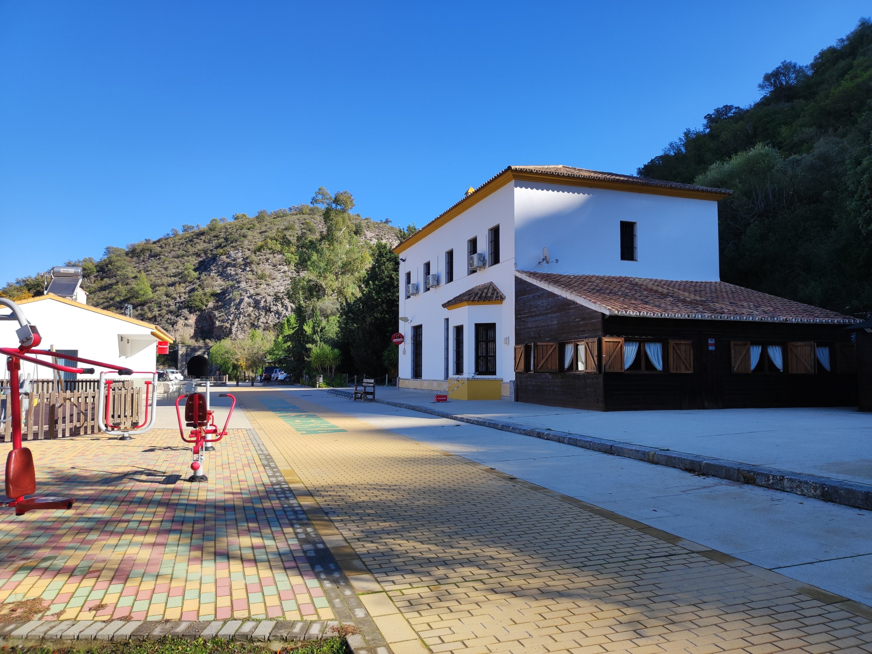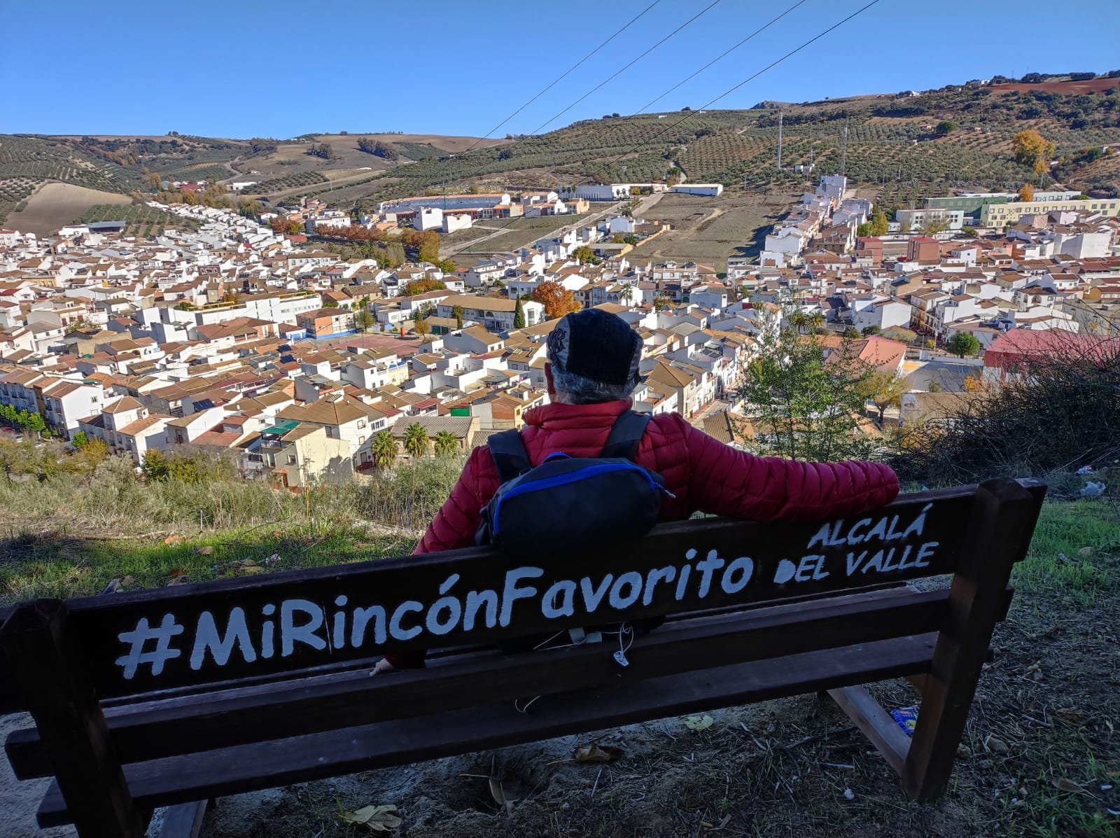 Hacia el km 7,5 llegaremos a un alto con un banco muy coqueto con unas buenas vistas sobre Alcalá del Valle. Alcalá del Valle es el último de los pueblos blancos de Cádiz, muy cerca de la Sierra de Ronda.