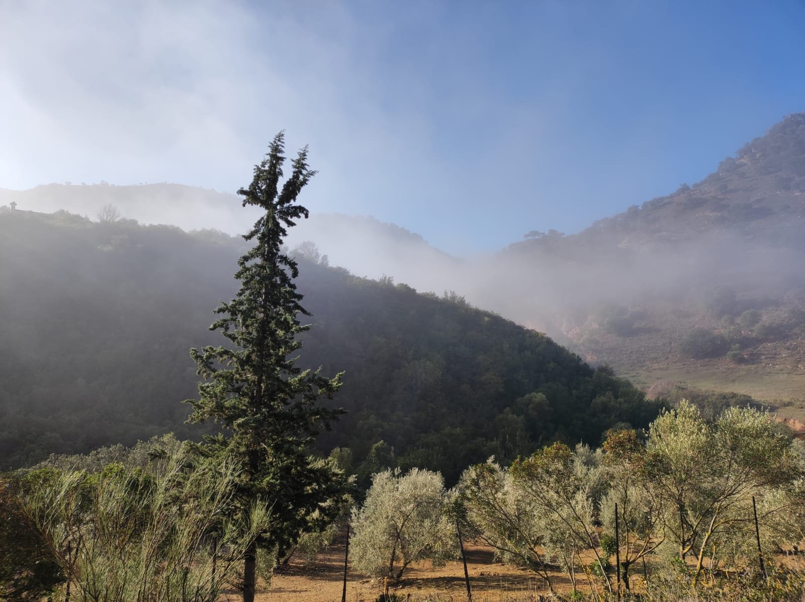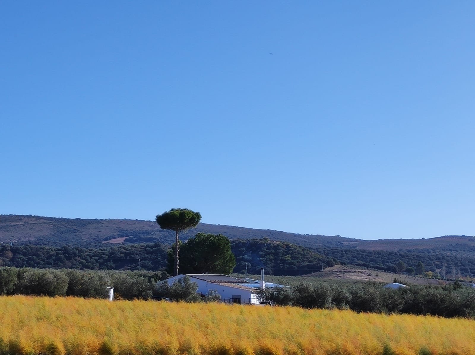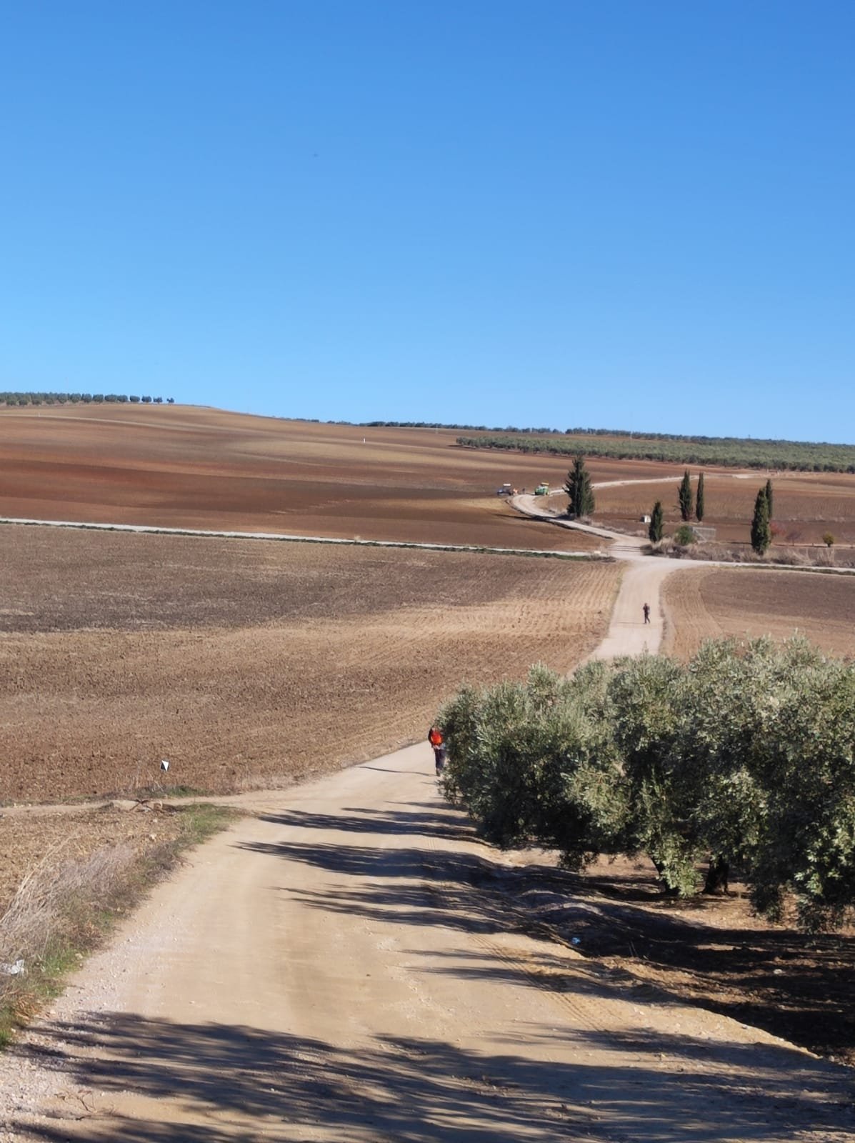 Tras los restos de este primer molino tomaremos una desviación a la izquierda que en suave subida nos llevará a una serie de caminos rurales entre olivos, esparragueras y campos de cultivo preparados para la siembra. A nuestro alrededor podremos ver la sierra de Grazalema, el Reloj y el Simancón y un poco más a la derecha el Torreón.