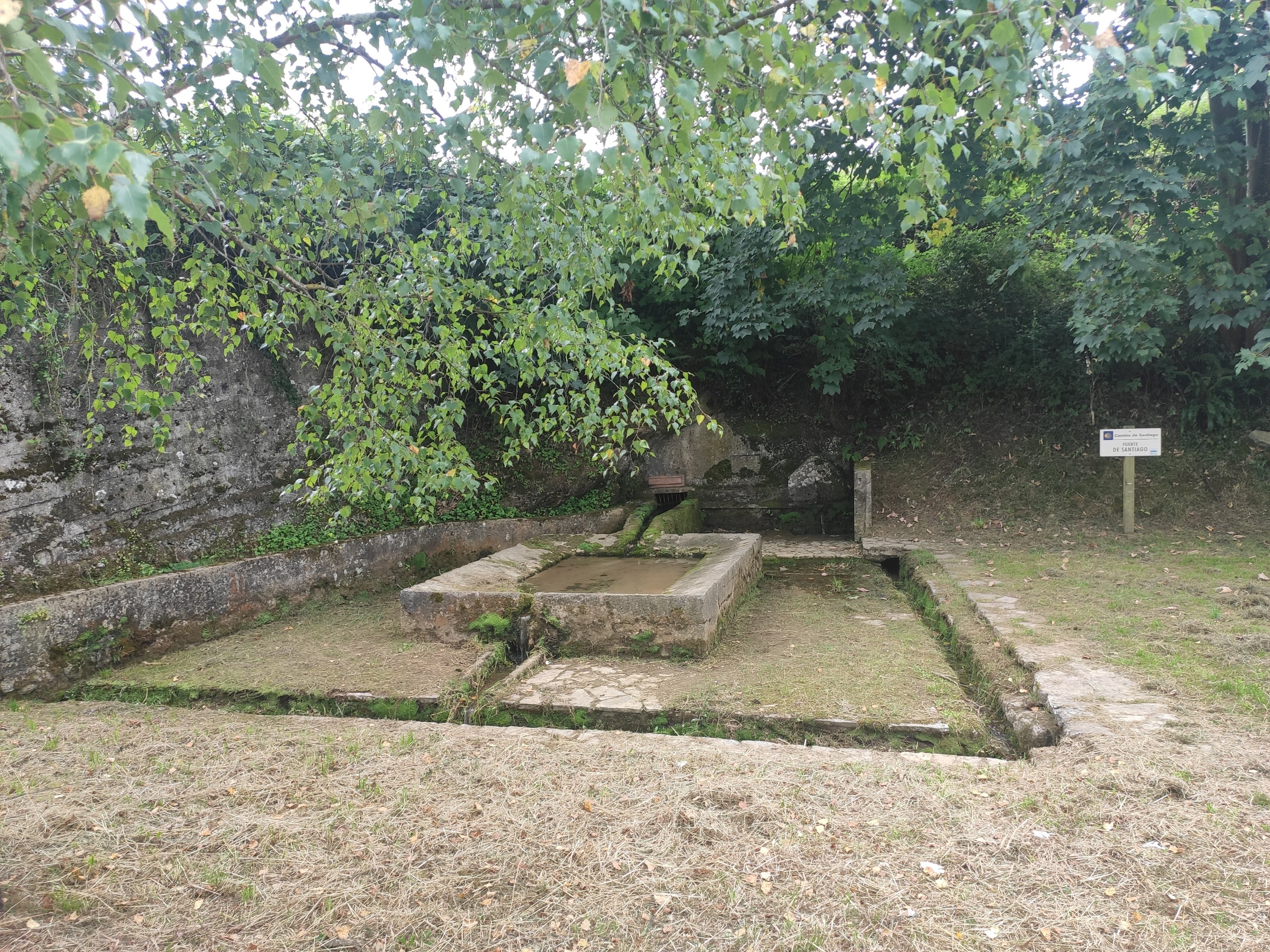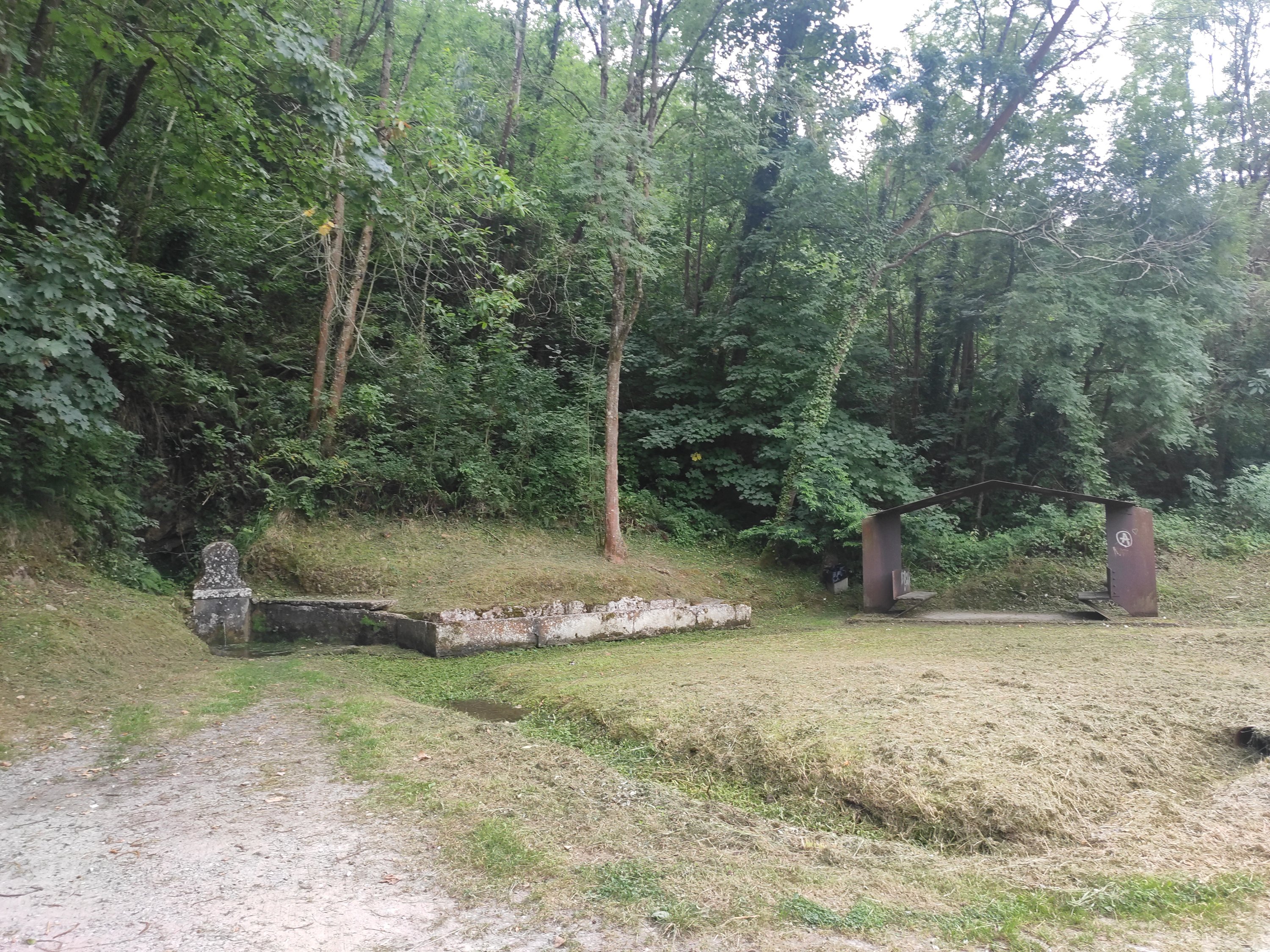 Dejamos el monasterio y el camino se empina para alcanzar Sobrerriba y pasar a la Vega del Villazón. Llaneamos un poco hasta alcanzar la Fuente Caliente y su peculiar banco metálico.