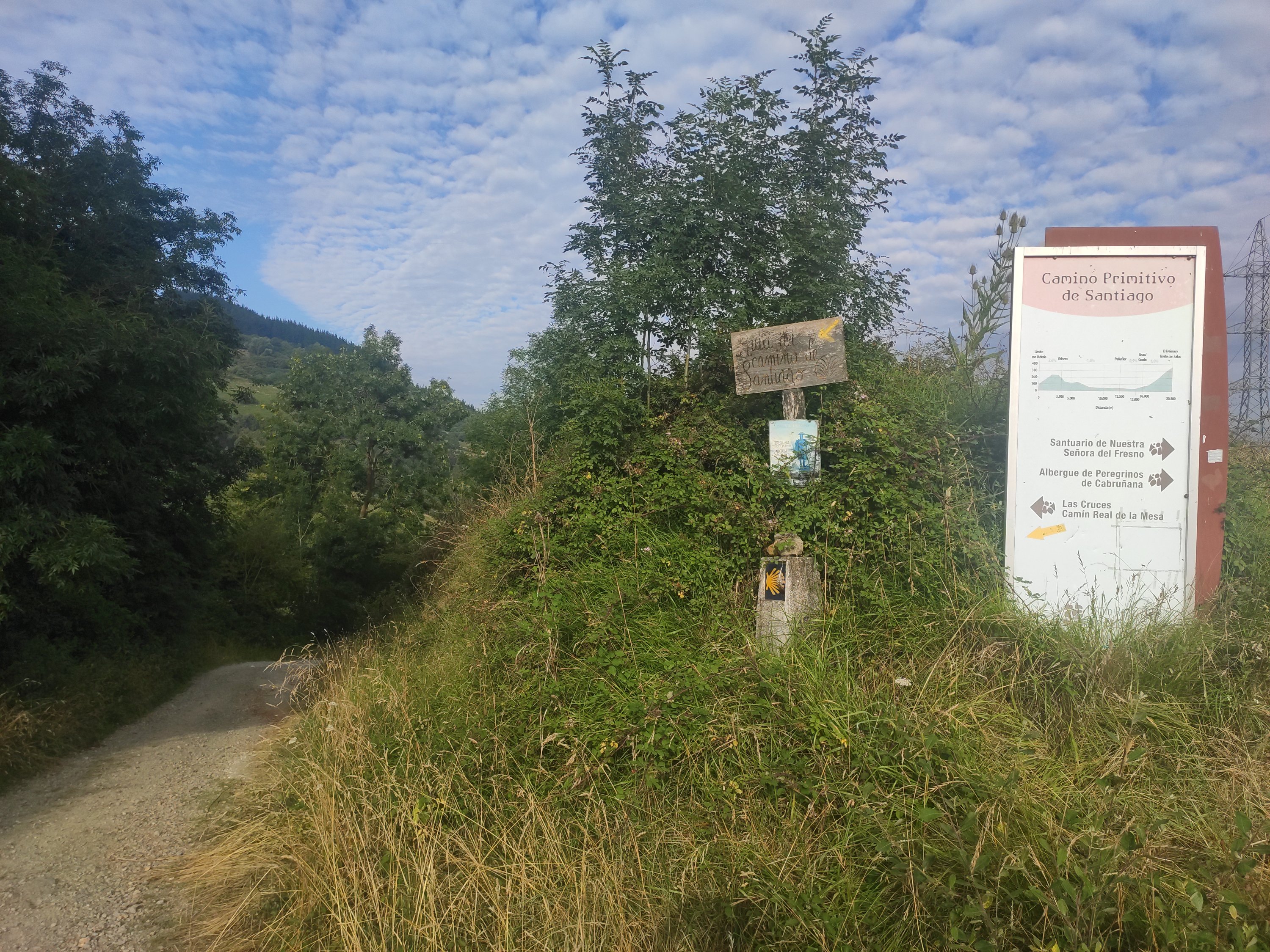 Comenzamos con una fuerte subida hasta el Alto del Fresno. Allí, nos desviamos unos 500 metros para ver el Santuario de la Virgen del Fresno y una hermosa panorámica del camino recorrido hasta el momento.
