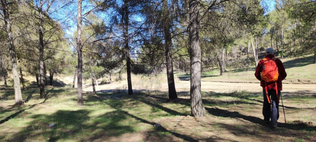 Iniciamos la caminata por el barrio de Triana de Aldeire donde tomamos un camino agrícola que se dirige hacia el Barranco del Arroyo del Gallego. El camino continúa junto al río y separa el bosque de ribera, que queda a nuestra izquierda, de un área de coníferas de repoblación que queda a nuestra derecha. En esta zona encontramos árboles caducifolios, especialmente castaños de gran porte y álamos. El camino se va perdiendo progresivamente hasta que llegamos a la junta del Arroyo del Gallego con el Barranco de Benabre. En este punto cruzamos el Arroyo y tomamos una vereda tradicional que discurre a media ladera cobrando altura progresivamente. Todo este tramo lo hacemos bajo un bosque de repoblación y muy pendientes del GPS ya que la vereda se pierde de vez en cuando. Pasamos junto a las ruinas de varios cortijos y tras un par de fuertes repechos avistamos el Carril del Marquesado.